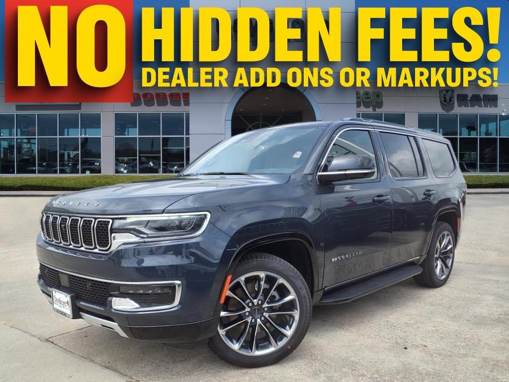 $10,727 off MSRP! This Wagoneer Series II vehicle comes nicely equipped with Convenience Group I (2nd Row Manual Window Shades, Auto High Beam Headlamp Control, Drowsy Driver Detection, Heads-Up Display, Intersection Collision Assist System, P&P Park & Unpark Assist w/Stop System, Side Distance Warning, Surround View Camera System, and Traffic Sign Recognition), Flexible Seating Group (40/20/40 2nd Row Bench Power Tip/Slide, 60/40 Power Recline 3rd Row Seat, 8-Passenger Seating, and Full Length Floor Console), Premium Group I (3 Panel Sunroof, Adjustable Roof Rail Crossbars, Cargo Cover, and Reversible Carpet/Vinyl Cargo Mat), Quick Order Package 25J, 10 Speakers, 118 MPH Maximum Speed Calibration, 3.55 Rear Axle Ratio, 3rd row seats: bench, 4-Wheel Disc Brakes, ABS brakes, Adjustable pedals, Air Conditioning, Alloy wheels, AM/FM radio: SiriusXM with 360L, Anti-whiplash front head restraints, Apple CarPlay/Android Auto, Audio memory, Auto-dimming door mirrors, Auto-dimming Rear-View mirror, Auto-leveling suspension, Automatic temperature control, Brake assist, Bumpers: body-color, Compass, Delay-off headlights, Driver door bin, Driver vanity mirror, Driver's Seat Mounted Armrest, Dual front impact airbags, Dual front side impact airbags, Electronic Stability Control, Emergency communication system: Wagoneer Connect, Exterior Parking Camera Rear, Four wheel independent suspension, Front anti-roll bar, Front Bucket Seats, Front Center Armrest w/Storage, Front dual zone A/C, Front fog lights, Front reading lights, Fully automatic headlights, Garage door transmitter, Genuine wood console insert, Genuine wood dashboard insert, Genuine wood door panel insert, Heated door mirrors, Heated front seats, Heated rear seats, Heated steering wheel, Illuminated entry, Knee airbag, Leather Trimmed Bucket Seats, Low tire pressure warning, Memory seat, Navigation System, Normal Duty Suspension, Occupant sensing airbag, Outside temperature display, Overhead airbag, Overhead console, Panic alarm, Passenger door bin, Passenger seat mounted armrest, Passenger vanity mirror, Pedal memory, Power adjustable front head restraints, Power door mirrors, Power driver seat, Power Liftgate, Power passenger seat, Power steering, Power windows, Radio data system, Radio: Uconnect 5 Nav w/10.1'' Display, Rain sensing wipers, Rear air conditioning, Rear anti-roll bar, Rear dual zone A/C, Rear reading lights, Rear seat center armrest, Rear window defroster, Rear window wiper, Reclining 3rd row seat, Remote keyless entry, Security system, Speed control, Speed-sensing steering, Speed-Sensitive Wipers, Split folding rear seat, Steering wheel memory, Steering wheel mounted audio controls, Tachometer, Telescoping steering wheel, Tilt steering wheel, Traction control, Trip computer, Turn signal indicator mirrors, Variably intermittent wipers, Ventilated front seats, Voltmeter, Wheels: 20'' x 9.0'' Premium 2 Aluminum, and Wheels: 22'' x 9.0'' Premium 3 Aluminum.