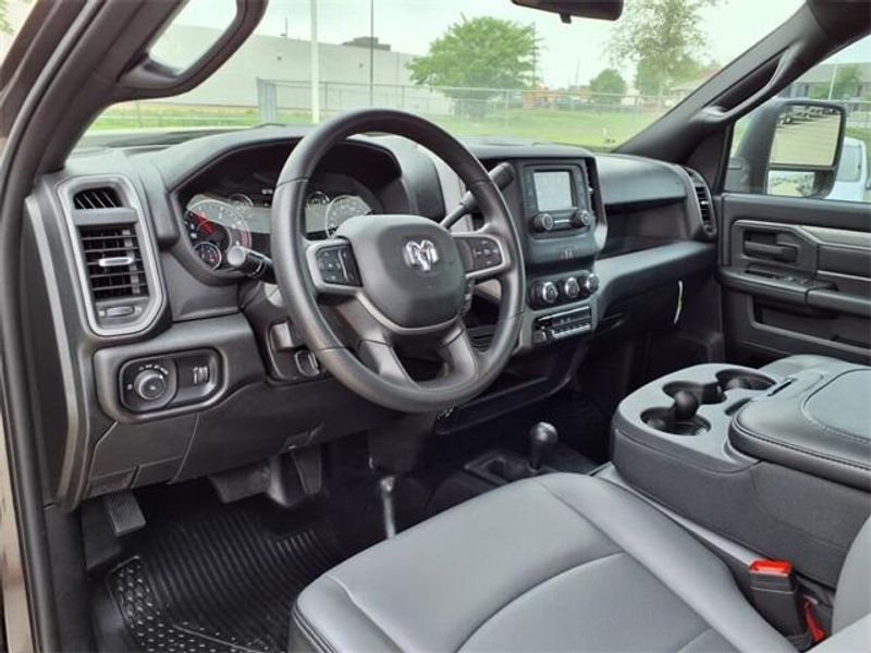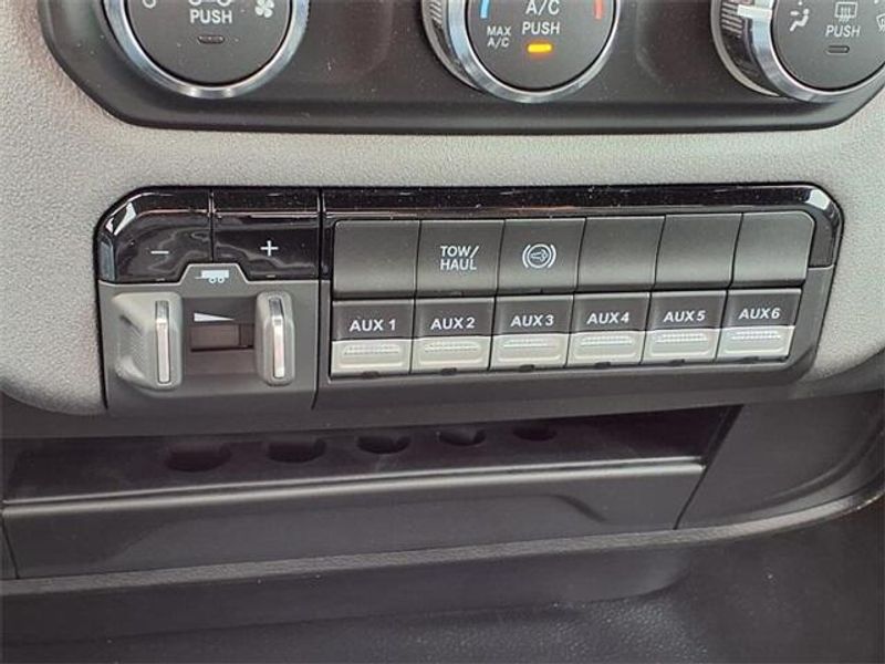 THIS VEHICLE COMES WITH THE FOLLOWING FEATURES AND OPTIONS : Quick Order Package 2HA Tradesman, Tradesman Level 1 Equipment Group (Black Exterior Mirrors, Exterior Mirrors Courtesy Lamps, Exterior Mirrors w/Heating Element, Exterior Mirrors w/Supplemental Signals, Front 1-Touch Down Power Windows, Manual Folding Exterior Mirrors, Manual Telescoping Mirrors, Mirror Running Lights, Overhead Console, Overhead Cupholder Lamp, Power Adjust Mirrors, Power Heat Fold Telescope Mirrors, Power-Adjustable Convex Aux Mirrors, Remote Keyless Entry, Speed Sensitive Power Locks, and Upgraded Door Trim Panel), 2-Way Front Head Restraints, 3.73 Axle Ratio, 4 Speakers, 4-Wheel Disc Brakes, 40/20/40 Split Bench Seat, 5th Wheel/Gooseneck Towing Prep Group, ABS brakes, Air Conditioning, AM/FM radio, Blind Spot & Cross Path Detection, Brake assist, Center Hub, Clearance Lamps, Compass, Dash Pass Thru Wire Circuits, Delay-off headlights, Driver door bin, Dual front impact airbags, Dual front side impact airbags, Electronic Stability Control, Electronically Controlled Throttle, Emergency communication system: SiriusXM Guardian, For Details Visit DriveUconnect.com, Front anti-roll bar, Front Armrest w/Cupholders, Front Bumper Sight Shields, Front Center Armrest w/Storage, Front License Plate Bracket, Front reading lights, Fully automatic headlights, Global Telematics Box Module (TBM), GPS Antenna Input, HD Vinyl 40/20/40 Split Bench Seat, I/P Mounted Auxiliary Switches, Illuminated entry, Integrated Voice Command w/Bluetooth, LED Tail Lamps, Low tire pressure warning, Manual Adjust 4-Way Driver Seat, Manual Adjust 4-Way Front Passenger Seat, Occupant sensing airbag, Outside temperature display, Overhead airbag, ParkView Rear Back-Up Camera, Passenger door bin, Passenger vanity mirror, Power steering, Radio data system, Radio: Uconnect 3 w/5'' Display, Rear Sliding Window, Rear step bumper, Rear Wheelhouse Liners, Remote USB Port - Charge Only, Speed control, Tachometer, Tilt steering wheel, Tip Start, Traction control, Trailer Brake Control, Trailer Light Check, Variably intermittent wipers, Voltmeter, and Wheels: 18'' x 8.0'' SteeL.