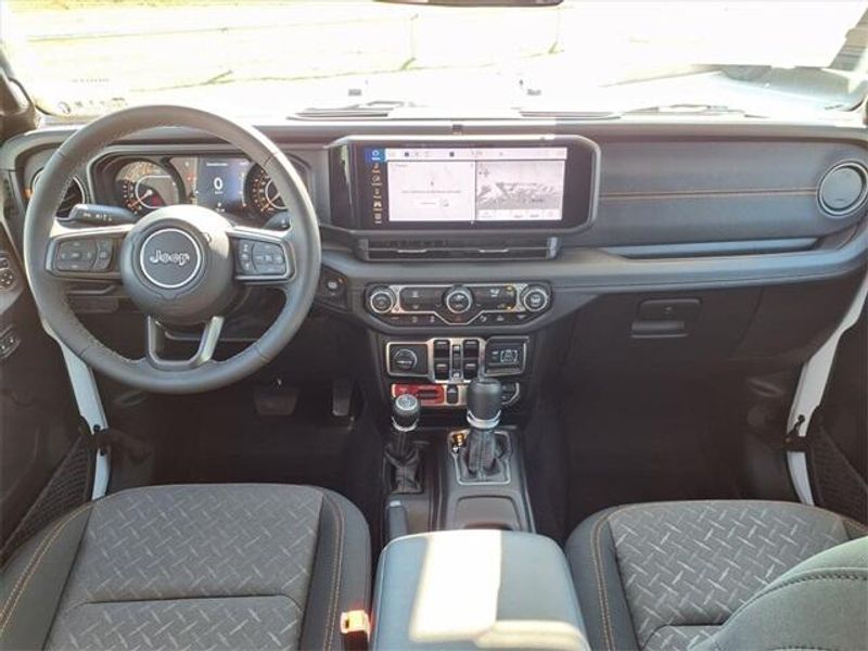 THIS VEHICLE COMES WITH THE FOLLOWING FEATURES AND OPTIONS : Quick Order Package 24D Mojave, Safety Group (Auto High Beam Headlamp Control, Blind Spot & Cross Path Detection, and ParkSense Rear Park Assist System), 12.3'' Touchscreen Display, 4-Wheel Disc Brakes, 4.10 Rear Axle Ratio, 4G LTE Wi-Fi Hot Spot, 8 Speakers, 97 MPH Vehicle Max Speed Calibration, ABS brakes, Air Conditioning, Alexa Built-In, Alloy wheels, AM/FM radio: SiriusXM, Apple CarPlay, Apple CarPlay/Android Auto, Automatic temperature control, Body Color 3-Piece Hard Top, Body Color Rubicon Highline Flare, Brake assist, Compass, Connectivity - US/Canada, Delay-off headlights, Driver door bin, Driver vanity mirror, Dual front impact airbags, Dual front side impact airbags, Electronic Stability Control, Emergency communication system: Jeep Connect, Freedom Panel Storage Bag, Front anti-roll bar, Front Bucket Seats, Front Center Armrest w/Storage, Front dual zone A/C, Front fog lights, Front License Plate Bracket, Front reading lights, Fully automatic headlights, Google Android Auto, Heated door mirrors, Heavy Duty Suspension w/Gas Shocks, Illuminated entry, Integrated roll-over protection, Low tire pressure warning, MOPAR All-Weather Slush Mats, MOPAR Spray In Bedliner, No Soft Top, Occupant sensing airbag, Outside temperature display, Overhead airbag, Panic alarm, Passenger door bin, Passenger vanity mirror, Power door mirrors, Power steering, Power windows, Premium Cloth Seats w/Sport Bolsters, Radio data system, Radio: Uconnect 5 w/12.3'' Display, Rear anti-roll bar, Rear reading lights, Rear Sliding Window, Rear Window Defroster, Remote keyless entry, Security system, Speed control, Split folding rear seat, Steering wheel mounted audio controls, Tachometer, Telescoping steering wheel, Tilt steering wheel, Traction control, Trip computer, USB Host Flip, Variably intermittent wipers, Voltmeter, and Wheels: 17'' x 7.5'' Dark Gray Painted. Price includes: $5500 - 2025 National Bonus Cash . Exp. 11/03/2025