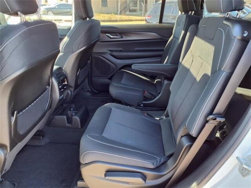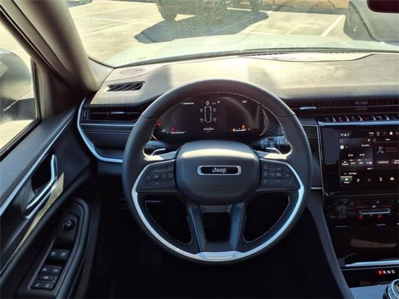 THIS VEHICLE COMES WITH THE FOLLOWING FEATURES AND OPTIONS : Luxury Tech Group I (115V Auxiliary Power Outlet, Remote Start System, and Selectable Tire Fill Alert), Quick Order Package 23D Laredo X, 3.45 Rear Axle Ratio, 3rd row seats: split-bench, 4-Wheel Disc Brakes, 6 Speakers, ABS brakes, Air Conditioning, Alloy wheels, Anti-whiplash front head restraints, Automatic temperature control, Brake assist, Bumpers: body-color, Cloth Seats, Compass, Delay-off headlights, Driver door bin, Driver vanity mirror, Dual front impact airbags, Dual front side impact airbags, Electronic Stability Control, Emergency communication system, Four wheel independent suspension, Front anti-roll bar, Front Bucket Seats, Front Center Armrest w/Storage, Front dual zone A/C, Front License Plate Bracket, Front reading lights, Fully automatic headlights, Heated door mirrors, Illuminated entry, Knee airbag, Low tire pressure warning, Manual Fold Seatbacks, Model Year Tracking, Normal Duty Suspension, Occupant sensing airbag, Outside temperature display, Overhead airbag, Overhead console, Panic alarm, ParkView Rear Back-Up Camera, Passenger door bin, Passenger vanity mirror, Power door mirrors, Power driver seat, Power steering, Power windows, Radio data system, Radio: Uconnect 5 w/8.4'' Display, Rear air conditioning, Rear anti-roll bar, Rear reading lights, Rear window defroster, Rear window wiper, Reclining 3rd row seat, Remote keyless entry, Security system, Speed control, Speed-Sensitive Wipers, Split folding rear seat, Spoiler, Steering wheel mounted audio controls, Tachometer, Telescoping steering wheel, Tilt steering wheel, Traction control, Trip computer, Variably intermittent wipers, Voltmeter, and Wheels: 18'' x 8.0'' Fully Painted Aluminum.