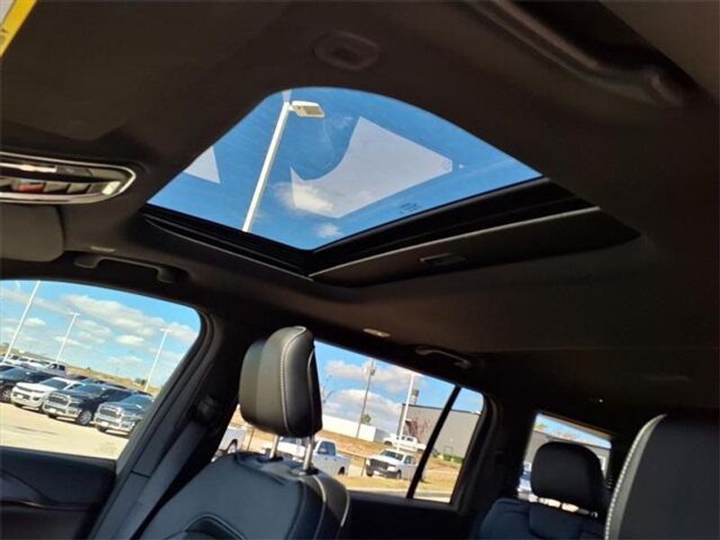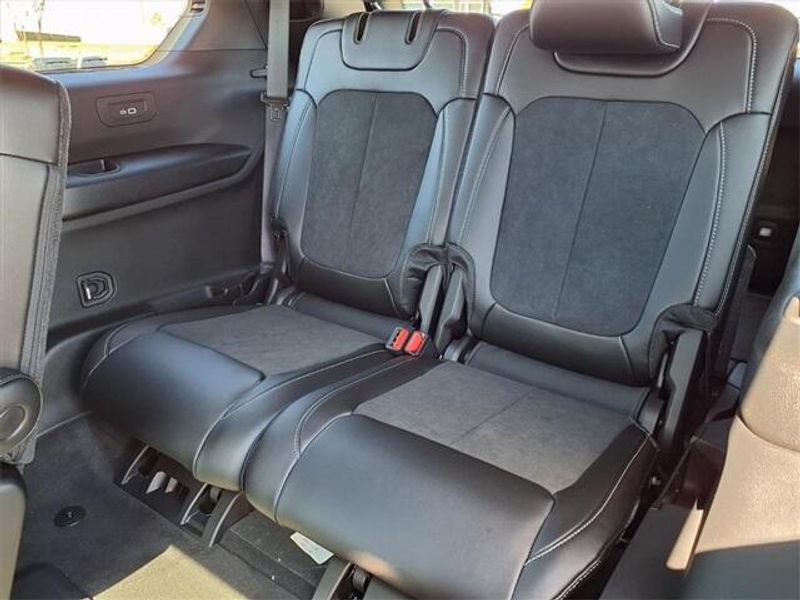 THIS VEHICLE COMES WITH THE FOLLOWING FEATURES AND OPTIONS : Quick Order Package 23M Altitude X (115V Auxiliary Power Outlet, 3rd Row Charge-Only USB Ports, Altitude X, Black Headliner, Capri Leatherette/Suede Seats, Delete Laredo Badge, Gloss Black Exterior Accents, Heated Front Seats, Heated Steering Wheel, Power Liftgate, Power Sunroof, Rain Sensitive Windshield Wipers, Remote Start System, Selectable Tire Fill Alert, Wheels: 18'' x 8.0'' Fully Painted Aluminum 1, and Wireless Charging Pad), 3.45 Rear Axle Ratio, 3rd row seats: split-bench, 4-Wheel Disc Brakes, 6 Speakers, ABS brakes, Air Conditioning, Alloy wheels, AM/FM radio: SiriusXM, Anti-whiplash front head restraints, Automatic temperature control, Brake assist, Bumpers: body-color, Cloth Seats, Compass, Delay-off headlights, Driver door bin, Driver vanity mirror, Dual front impact airbags, Dual front side impact airbags, Electronic Stability Control, Emergency communication system, Four wheel independent suspension, Front anti-roll bar, Front Bucket Seats, Front Center Armrest w/Storage, Front dual zone A/C, Front License Plate Bracket, Front reading lights, Fully automatic headlights, Heated door mirrors, Illuminated entry, Knee airbag, Low tire pressure warning, Manual Fold Seatbacks, Model Year Tracking, Normal Duty Suspension, Occupant sensing airbag, Outside temperature display, Overhead airbag, Overhead console, Panic alarm, ParkView Rear Back-Up Camera, Passenger door bin, Passenger vanity mirror, Power door mirrors, Power driver seat, Power steering, Power windows, Radio data system, Radio: Uconnect 5 w/8.4'' Display, Rear air conditioning, Rear anti-roll bar, Rear reading lights, Rear window defroster, Rear window wiper, Reclining 3rd row seat, Remote keyless entry, Security system, Speed control, Speed-Sensitive Wipers, Split folding rear seat, Spoiler, Steering wheel mounted audio controls, Tachometer, Telescoping steering wheel, Tilt steering wheel, Traction control, Trip computer, Variably intermittent wipers, Voltmeter, and Wheels: 18'' x 8.0'' Fully Painted Aluminum.