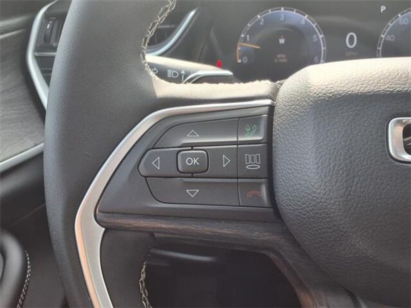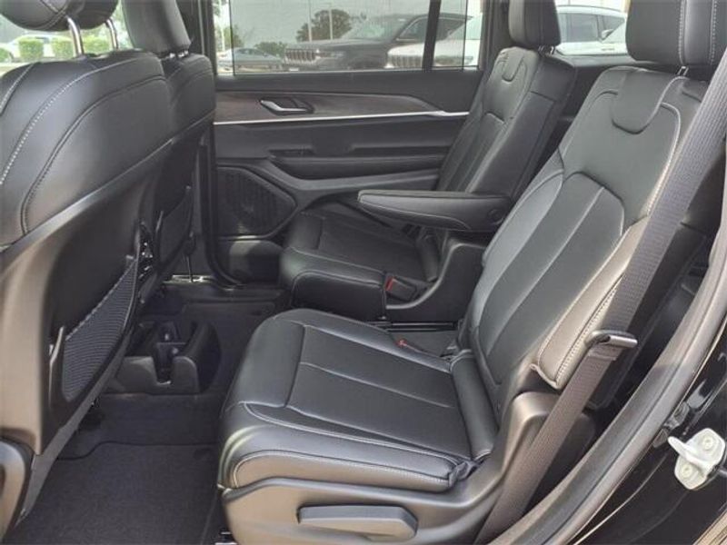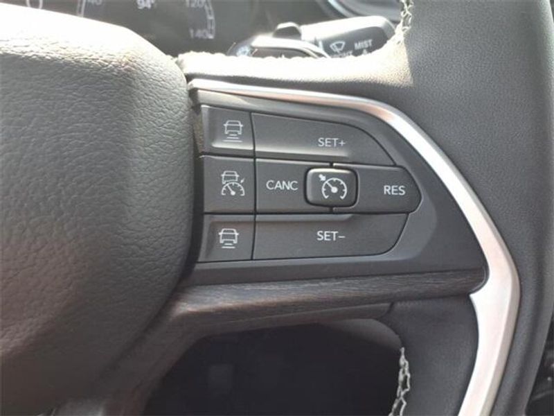 THIS VEHICLE COMES WITH THE FOLLOWING FEATURES AND OPTIONS : Black Appearance Package (Gloss Black Exterior Accents and Wheels: 20'' x 8.5'' Gloss Black Painted Aluminum), Luxury Tech Group II (2nd Row Manual Window Shades, Auto-Dimming Exterior Driver Mirror, Capri Leatherette w/Axis II Seats, Integrated Off-Road Camera, Intersection Collision Assist System, Memory Steering Column, ParkSense Front/Rear Park Assist w/Stop, Passive Entry - Front/Rear Doors, Liftgate, Power Tilt/Telescope Steering Column, Rain Sensitive Windshield Wipers, Rear Back Up Camera Washer, Rearview Autodim Digital Display Mirror, Surround View Camera System, Ventilated Front Seats, and Wireless Charging Pad), Quick Order Package 22E, 3.45 Rear Axle Ratio, 3rd row seats: split-bench, 4-Wheel Disc Brakes, 6 Speakers, ABS brakes, Active Noise Control System, Air Conditioning, Alloy wheels, AM/FM radio: SiriusXM with 360L, Anti-whiplash front head restraints, Audio memory, Auto High-beam Headlights, Automatic temperature control, Brake assist, Bumpers: body-color, Capri Leatherette Seats, Compass, Delay-off headlights, Driver door bin, Driver vanity mirror, Dual front impact airbags, Dual front side impact airbags, Dual-Pane Panoramic Sunroof, Electronic Stability Control, Emergency communication system, Four wheel independent suspension, Front anti-roll bar, Front Bucket Seats, Front Center Armrest w/Storage, Front dual zone A/C, Front fog lights, Front License Plate Bracket, Front reading lights, Fully automatic headlights, Garage door transmitter, Heated door mirrors, Heated front seats, Heated rear seats, Heated steering wheel, Illuminated entry, Interior Rear Facing Camera, Knee airbag, Low tire pressure warning, Manual Fold Seatbacks, Memory seat, Model Year Tracking, Navigation System, Normal Duty Suspension, Occupant sensing airbag, Outside temperature display, Overhead airbag, Overhead console, Panic alarm, ParkView Rear Back-Up Camera, Passenger door bin, Passenger vanity mirror, Power door mirrors, Power driver seat, Power Liftgate, Power passenger seat, Power steering, Power windows, Radio data system, Radio: Uconnect 5 Nav w/10.1'' Display, Rear air conditioning, Rear anti-roll bar, Rear reading lights, Rear window defroster, Rear window wiper, Reclining 3rd row seat, Remote keyless entry, Security system, Speed control, Speed-Sensitive Wipers, Split folding rear seat, Spoiler, Steering wheel mounted audio controls, Tachometer, Telescoping steering wheel, Tilt steering wheel, Traction control, Trip computer, Turn signal indicator mirrors, Variably intermittent wipers, Voltmeter, and Wheels: 18'' x 8.0'' Polished/Painted Aluminum.