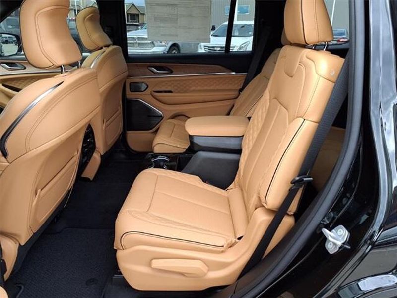 THIS VEHICLE COMES WITH THE FOLLOWING FEATURES AND OPTIONS : Advanced Protech Group IV (Heads-Up Display, Interior Rear Facing Camera, Night Vision/Pedestrian-Animal Detection, Rearview Autodim Digital Display Mirror, and Windshield Wiper De-Icer), High Altitude Package (Gloss Black Exterior Accents, Neutral Gray Exterior Accents, Painted Door Cladding, and Wheels: 21'' x 9'' Black Painted Aluminum), MOPAR Finishing Package (MOPAR Front Splash Guards, MOPAR Paint Protection Film, and MOPAR Rear Splash Guards with Jeep Logo), Quick Order Package 23U Summit Reserve (19 Speakers High Performance Audio, 950 Watt Amplifier, Active Noise Control System, Deluxe Headliner, Front Passenger Interactive Display, Palermo Leather Door Trim, Palermo Leather Seats, Summit, Summit Badge, Ventilated Rear Seats, and Wheels: 21'' x 9.0'' Machined Face/Painted Aluminum), Two Tone Paint Group, 10 Speakers, 3.45 Rear Axle Ratio, 3rd row seats: split-bench, 4-Wheel Disc Brakes, ABS brakes, Adaptive suspension, Air Conditioning, Alloy wheels, AM/FM radio: SiriusXM with 360L, Anti-whiplash front head restraints, Audio memory, Auto High-beam Headlights, Auto-dimming door mirrors, Auto-dimming Rear-View mirror, Auto-leveling suspension, Automatic temperature control, Aux Battery, Brake assist, Bumpers: body-color, Compass, Delay-off headlights, Driver door bin, Driver vanity mirror, Dual front impact airbags, Dual front side impact airbags, Electronic Stability Control, Emergency communication system, Four wheel independent suspension, Front anti-roll bar, Front Bucket Seats, Front Center Armrest w/Storage, Front dual zone A/C, Front fog lights, Front License Plate Bracket, Front reading lights, Fully automatic headlights, Garage door transmitter, Genuine wood dashboard insert, Genuine wood door panel insert, Hands-Free Active Driving Assist System, Heated door mirrors, Heated front seats, Heated rear seats, Heated steering wheel, Illuminated entry, Knee airbag, Leather steering wheel, Low tire pressure warning, Memory seat, Model Year Tracking, Nappa Leather Seats, Navigation System, Normal Duty Suspension, Occupant sensing airbag, Outside temperature display, Overhead airbag, Overhead console, Panic alarm, Passenger door bin, Passenger vanity mirror, Power door mirrors, Power driver seat, Power Fold Seatbacks, Power Liftgate, Power moonroof, Power passenger seat, Power steering, Power windows, Radio data system, Radio: Uconnect 5 Nav with 10.1'' Display, Rain sensing wipers, Rear air conditioning, Rear anti-roll bar, Rear dual zone A/C, Rear reading lights, Rear seat center armrest, Rear window defroster, Rear window wiper, Reclining 3rd row seat, Remote keyless entry, Security system, Speed control, Speed-Sensitive Wipers, Split folding rear seat, Spoiler, Steering wheel memory, Steering wheel mounted audio controls, Tachometer, Telescoping steering wheel, Tilt steering wheel, Traction control, Trip computer, Turn signal indicator mirrors, Variably intermittent wipers, Ventilated front seats, Voltmeter, and Wheels: 20'' x 8.5'' Fully Painted Aluminum Silver. Price includes: $2500 - 2025 National Retail Bonus Cash . Exp. 12/01/2025