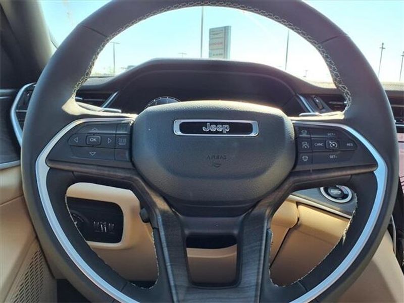 THIS VEHICLE COMES WITH THE FOLLOWING FEATURES AND OPTIONS : Black Appearance Package (Gloss Black Exterior Accents and Wheels: 20'' x 8.5'' Gloss Black Painted Aluminum), Luxury Tech Group II (2nd-Row Manual Window Shades, Auto-Dimming Exterior Driver Mirror, Capri Leatherette w/Axis II Seats, Front/Rear Doors & Liftgate w/Passive Entry, Integrated Off-Road Camera, Intersection Collision Assist System, Memory Steering Column, ParkSense Front/Rear Park Assist w/Stop, Power Tilt/Telescope Steering Column, Rain Sensitive Windshield Wipers, Rear Back-Up Camera Washer, Rearview Autodim Digital Display Mirror, Surround View Camera System, Ventilated Front Seats, and Wireless Charging Pad), Quick Order Package 22E, Trailer Tow Package (220 Amp Alternator, 7 & 4-Pin Wiring Harness, Automatic Headlamp Levelling System, Class IV Receiver Hitch, Heavy-Duty Engine Cooling, Rear Load Levelling Suspension, and Trailer Hitch Zoom), 4-Wheel Disc Brakes, 6 Speakers, ABS brakes, Active Noise Control System, Air Conditioning, Alloy wheels, AM/FM radio: SiriusXM with 360L, Anti-whiplash front head restraints, Audio memory, Auto High-beam Headlights, Automatic temperature control, Brake assist, Bumpers: body-color, Capri Leatherette Seats, Compass, Delay-off headlights, Driver door bin, Driver vanity mirror, Dual front impact airbags, Dual front side impact airbags, Dual-Pane Panoramic Sunroof, Electronic Stability Control, Emergency communication system, Four wheel independent suspension, Front anti-roll bar, Front Bucket Seats, Front Center Armrest w/Storage, Front dual zone A/C, Front fog lights, Front License Plate Bracket, Front reading lights, Fully automatic headlights, Garage door transmitter, Heated door mirrors, Heated front seats, Heated rear seats, Heated steering wheel, Illuminated entry, Knee airbag, Low tire pressure warning, Memory seat, Model Year Tracking, Navigation System, Normal Duty Suspension, Occupant sensing airbag, Outside temperature display, Overhead airbag, Overhead console, Panic alarm, ParkView Rear Back-Up Camera, Passenger door bin, Passenger vanity mirror, Power door mirrors, Power driver seat, Power Liftgate, Power passenger seat, Power steering, Power windows, Radio data system, Radio: Uconnect 5 Nav w/10.1'' Display, Rear anti-roll bar, Rear reading lights, Rear window defroster, Rear window wiper, Remote keyless entry, Security system, Speed control, Speed-Sensitive Wipers, Split folding rear seat, Spoiler, Steering wheel mounted audio controls, Tachometer, Telescoping steering wheel, Tilt steering wheel, Traction control, Trip computer, Turn signal indicator mirrors, Variably intermittent wipers, Voltmeter, and Wheels: 18'' x 8'' Polished/Painted Aluminum.