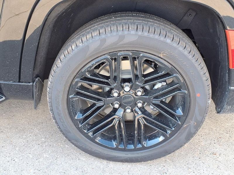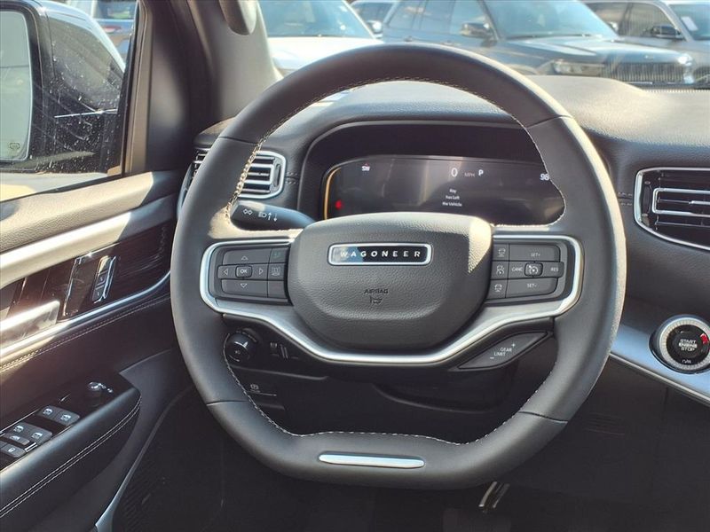 This Wagoneer L Series II vehicle comes nicely equipped with Carbide Appearance Package, Premium Group I (118 MPH Maximum Speed Calibration, 3 Panel Sunroof, Adjustable Roof Rail Crossbars, and Reversible Carpet/Vinyl Cargo Mat), Quick Order Package 25F Carbide (Piano Black Exterior Accents and Wheels: 20'' x 9.0'' Aluminum Painted Gloss Black), 10 Speakers, 3.55 Rear Axle Ratio, 3rd row seats: bench, 4-Wheel Disc Brakes, ABS brakes, Air Conditioning, Alloy wheels, AM/FM radio: SiriusXM with 360L, Anti-whiplash front head restraints, Apple CarPlay/Android Auto, Audio memory, Auto Adjust In Reverse Exterior Mirrors, Auto-dimming door mirrors, Auto-Dimming Exterior Driver Mirror, Auto-dimming Rear-View mirror, Auto-leveling suspension, Automatic temperature control, Brake assist, Bumpers: body-color, Compass, Delay-off headlights, Driver door bin, Driver vanity mirror, Driver's Seat Mounted Armrest, Dual front impact airbags, Dual front side impact airbags, Electronic Stability Control, Emergency communication system: Jeep Connect, Exterior Mirrors Approach Lamps, Exterior Mirrors w/Memory, Exterior Mirrors w/Supplemental Signals, Four wheel independent suspension, Front anti-roll bar, Front Bucket Seats, Front Center Armrest w/Storage, Front dual zone A/C, Front fog lights, Front License Plate Bracket, Front reading lights, Fully automatic headlights, Garage door transmitter, Genuine wood console insert, Genuine wood dashboard insert, Genuine wood door panel insert, Heated door mirrors, Heated Exterior Mirrors, Heated front seats, Heated rear seats, Heated steering wheel, Illuminated entry, Knee airbag, Leather Trimmed Bucket Seats, Low tire pressure warning, Memory seat, Navigation System, Normal Duty Suspension, Occupant sensing airbag, Outside temperature display, Overhead airbag, Overhead console, Panic alarm, ParkView Rear Back-Up Camera, Passenger door bin, Passenger seat mounted armrest, Passenger vanity mirror, Power adjustable front head restraints, Power door mirrors, Power driver seat, Power Liftgate, Power passenger seat, Power steering, Power windows, Radio data system, Radio: Uconnect 5 Nav w/10.1'' Display, Rain sensing wipers, Rear air conditioning, Rear anti-roll bar, Rear reading lights, Rear seat center armrest, Rear window defroster, Rear window wiper, Reclining 3rd row seat, Remote keyless entry, Security system, Speed control, Speed-sensing steering, Speed-Sensitive Wipers, Split folding rear seat, Steering wheel memory, Steering wheel mounted audio controls, Tachometer, Telescoping steering wheel, Tilt steering wheel, Traction control, Trip computer, Turn signal indicator mirrors, Variably intermittent wipers, Ventilated front seats, Voltmeter, Wheels: 20'' x 9.0'' Premium 2 Aluminum, and Wheels: 22'' x 9.0'' Painted Gloss Black.