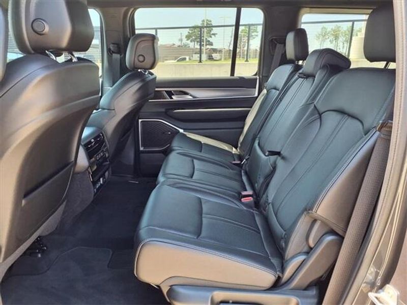 THIS VEHICLE COMES WITH THE FOLLOWING FEATURES AND OPTIONS : Quick Order Package 25E, 10 Speakers, 3.55 Rear Axle Ratio, 3rd row seats: bench, 4-Wheel Disc Brakes, ABS brakes, Air Conditioning, Alloy wheels, AM/FM radio: SiriusXM with 360L, Anti-whiplash front head restraints, Apple CarPlay/Android Auto, Audio memory, Auto Adjust In Reverse Exterior Mirrors, Auto-dimming door mirrors, Auto-Dimming Exterior Driver Mirror, Auto-dimming Rear-View mirror, Auto-leveling suspension, Automatic temperature control, Brake assist, Bumpers: body-color, Compass, Delay-off headlights, Driver door bin, Driver vanity mirror, Driver's Seat Mounted Armrest, Dual front impact airbags, Dual front side impact airbags, Electronic Stability Control, Emergency communication system: Jeep Connect, Exterior Mirrors Approach Lamps, Exterior Mirrors w/Memory, Exterior Mirrors w/Supplemental Signals, Four wheel independent suspension, Front anti-roll bar, Front Bucket Seats, Front Center Armrest w/Storage, Front dual zone A/C, Front fog lights, Front License Plate Bracket, Front reading lights, Fully automatic headlights, Garage door transmitter, Heated door mirrors, Heated Exterior Mirrors, Heated front seats, Heated steering wheel, Illuminated entry, Knee airbag, Leather Trimmed Bucket Seats, Low tire pressure warning, Memory seat, Navigation System, Normal Duty Suspension, Occupant sensing airbag, Outside temperature display, Overhead airbag, Overhead console, Panic alarm, ParkView Rear Back-Up Camera, Passenger door bin, Passenger seat mounted armrest, Passenger vanity mirror, Power adjustable front head restraints, Power door mirrors, Power driver seat, Power Liftgate, Power passenger seat, Power steering, Power windows, Radio data system, Radio: Uconnect 5 Nav w/10.1'' Display, Rear air conditioning, Rear anti-roll bar, Rear dual zone A/C, Rear reading lights, Rear seat center armrest, Rear window defroster, Rear window wiper, Reclining 3rd row seat, Remote keyless entry, Security system, Speed control, Speed-sensing steering, Speed-Sensitive Wipers, Split folding rear seat, Steering wheel memory, Steering wheel mounted audio controls, Tachometer, Telescoping steering wheel, Tilt steering wheel, Traction control, Trip computer, Turn signal indicator mirrors, Variably intermittent wipers, Ventilated front seats, Voltmeter, and Wheels: 20'' x 9.0'' Premium 2 Aluminum. Price includes: $2000 - 2025 National Overaged Select Inventory Bonus Cash. Exp. 11/03/2025