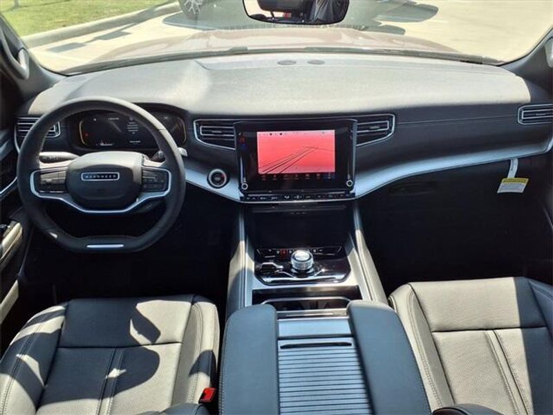 THIS VEHICLE COMES WITH THE FOLLOWING FEATURES AND OPTIONS : Carbide Appearance Package, Premium Group I (3 Panel Sunroof, Adjustable Roof Rail Crossbars, Cargo Cover, and Reversible Carpet/Vinyl Cargo Mat), Quick Order Package 25F Carbide (Black Exterior Accents and Wheels: 20'' x 9'' Gloss Black Painted Aluminum), 10 Speakers, 118 MPH Maximum Speed Calibration, 3.55 Rear Axle Ratio, 3rd row seats: bench, 4-Wheel Disc Brakes, ABS brakes, Air Conditioning, Alloy wheels, AM/FM radio: SiriusXM with 360L, Anti-whiplash front head restraints, Apple CarPlay/Android Auto, Audio memory, Auto Adjust In Reverse Exterior Mirrors, Auto-dimming door mirrors, Auto-Dimming Exterior Driver Mirror, Auto-dimming Rear-View mirror, Auto-leveling suspension, Automatic temperature control, Brake assist, Bumpers: body-color, Compass, Delay-off headlights, Driver door bin, Driver vanity mirror, Driver's Seat Mounted Armrest, Dual front impact airbags, Dual front side impact airbags, Electronic Stability Control, Emergency communication system: Jeep Connect, Exterior Mirrors Approach Lamps, Exterior Mirrors w/Memory, Exterior Mirrors w/Supplemental Signals, Four wheel independent suspension, Front anti-roll bar, Front Bucket Seats, Front Center Armrest w/Storage, Front dual zone A/C, Front fog lights, Front License Plate Bracket, Front reading lights, Fully automatic headlights, Garage door transmitter, Genuine wood console insert, Genuine wood dashboard insert, Genuine wood door panel insert, Heated door mirrors, Heated Exterior Mirrors, Heated front seats, Heated rear seats, Heated steering wheel, Illuminated entry, Knee airbag, Leather Trimmed Bucket Seats, Low tire pressure warning, Memory seat, Navigation System, Normal Duty Suspension, Occupant sensing airbag, Outside temperature display, Overhead airbag, Overhead console, Panic alarm, ParkView Rear Back-Up Camera, Passenger door bin, Passenger seat mounted armrest, Passenger vanity mirror, Power adjustable front head restraints, Power door mirrors, Power driver seat, Power Liftgate, Power passenger seat, Power steering, Power windows, Radio data system, Radio: Uconnect 5 Nav w/10.1'' Display, Rain sensing wipers, Rear air conditioning, Rear anti-roll bar, Rear dual zone A/C, Rear reading lights, Rear seat center armrest, Rear window defroster, Rear window wiper, Reclining 3rd row seat, Remote keyless entry, Security system, Speed control, Speed-sensing steering, Speed-Sensitive Wipers, Split folding rear seat, Steering wheel memory, Steering wheel mounted audio controls, Tachometer, Telescoping steering wheel, Tilt steering wheel, Traction control, Trip computer, Turn signal indicator mirrors, Variably intermittent wipers, Ventilated front seats, Voltmeter, Wheels: 20'' x 9.0'' Premium 2 Aluminum, and Wheels: 22'' x 9.0'' Painted Gloss Black.