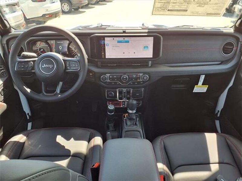 THIS VEHICLE COMES WITH THE FOLLOWING FEATURES AND OPTIONS : Convenience Group (Heated Front Seats, Heated Steering Wheel, and Universal Garage Door Opener), Quick Order Package 24Y Rubicon X (Acoustic Front Seat Area Carpet, Acoustic Laminated Front Door Glass, Alpine Premium Audio System, Body Color 3-Piece Hard Top, Body Color Rubicon Highline Flare, Freedom Panel Storage Bag, Leather Wrapped Park Brake Handle, Leather Wrapped Shift Knob, MOPAR Hardtop Headliner, MOPAR Hinge-Gate Reinforcement, Nappa Leather Seats, Power 4-Way Driver Lumbar Adjust, Power 4-Way Passenger Lumbar Adjust, Power Adjust 8-Way Driver Seat, Power Adjust 8-Way Front Passenger Seat, Premium Door Trim Panel, Rear Window Defroster, Rear Window Wiper/Washer, Steel Front Bumper, and Steel Rear Bumper), Safety Group (Auto High Beam Headlamp Control, Blind Spot & Cross Path Detection, and ParkSense Rear Park Assist System), Technology Group (12.3'' Touchscreen Display, 4G LTE Wi-Fi Hot Spot, Apple CarPlay, Auto-Dimming Rear-View Mirror, Connected Travel & Traffic Services, Connectivity - US/Canada, Google Android Auto, GPS Navigation, HD Radio, Integrated Off-Road Camera, Integrated Voice Command w/Bluetooth, Radio: Uconnect 5 Nav w/12.3'' Display, SiriusXM Radio Service, and SiriusXM w/360L), Trailer Tow & Aux Switch Group (Auxiliary Switches and Class II Receiver Hitch), Trailer Tow Prep Package, Xtreme 35'' Tire Package (35'' Tire Suspension, 97 MPH Vehicle Max Speed Calibration, Anti-Lock 4-Wheel Disc Perf Brakes, and Wheels: 17'' x 8'' Machined w/Black Pockets), 4-Wheel Disc Brakes, 8 Speakers, ABS brakes, Air Conditioning, Alloy wheels, AM/FM radio: SiriusXM, Apple CarPlay/Android Auto, Automatic temperature control, Aux Battery, Brake assist, Cloth Low-Back Bucket Seats, Compass, Delay-off headlights, Driver door bin, Driver vanity mirror, Dual front impact airbags, Dual front side impact airbags, Electronic Stability Control, Emergency communication system: Jeep Connect, Front anti-roll bar, Front Bucket Seats, Front Center Armrest w/Storage, Front dual zone A/C, Front fog lights, Front License Plate Bracket (DISC), Front reading lights, Fully automatic headlights, Heated door mirrors, Illuminated entry, Integrated roll-over protection, Low tire pressure warning, MOPAR All-Weather Floor Mats, Non-Lock Fuel Cap w/o Discriminator, Occupant sensing airbag, Outside temperature display, Overhead airbag, Panic alarm, ParkView Rear Back-Up Camera, Passenger door bin, Passenger vanity mirror, Performance Suspension, Power door mirrors, Power steering, Power windows, Radio data system, Radio: Uconnect 5 w/12.3'' Display, Rear anti-roll bar, Rear reading lights, Remote keyless entry, Security system, Speed control, Split folding rear seat, Steering wheel mounted audio controls, Stop-Start Dual Battery System, Tachometer, Telescoping steering wheel, Tilt steering wheel, Traction control, Trip computer, Variably intermittent wipers, Voltmeter, Wheel Flare Extensions, and Wheels: 17'' x 7.5'' Machined/Painted Black.