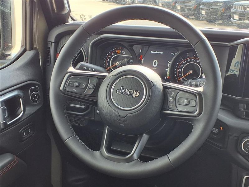 $5,598 off MSRP! This Wrangler Rubicon X vehicle comes nicely equipped with Convenience Group (Heated Front Seats, Heated Steering Wheel, and Universal Garage Door Opener), Quick Order Package 24Y Rubicon X (Acoustic Front Seat Area Carpet, Acoustic Laminated Front Door Glass, Alpine Premium Audio System, Body Color 3-Piece Hard Top, Body Color Rubicon Highline Flare, Freedom Panel Storage Bag, Leather Wrapped Park Brake Handle, Leather Wrapped Shift Knob, MOPAR Hardtop Headliner, MOPAR Hinge-Gate Reinforcement, Nappa Leather Seats, Power 4-Way Driver Lumbar Adjust, Power 4-Way Passenger Lumbar Adjust, Power Adjust 8-Way Driver Seat, Power Adjust 8-Way Front Passenger Seat, Premium Door Trim Panel, Rear Window Defroster, Rear Window Wiper/Washer, Steel Front Bumper, and Steel Rear Bumper), Safety Group (Auto High Beam Headlamp Control, Blind Spot & Cross Path Detection, and ParkSense Rear Park Assist System), Technology Group (12.3'' Touchscreen Display, 4G LTE Wi-Fi Hot Spot, Apple CarPlay, Auto-Dimming Rear-View Mirror, Connected Travel & Traffic Services, Connectivity - US/Canada, Google Android Auto, GPS Navigation, HD Radio, Integrated Off-Road Camera, Integrated Voice Command w/Bluetooth, Radio: Uconnect 5 Nav w/12.3'' Display, SiriusXM Radio Service, and SiriusXM w/360L), Trailer Tow & Aux Switch Group (Auxiliary Switches and Class II Receiver Hitch), Trailer Tow Prep Package, Xtreme 35'' Tire Package (35'' Tire Suspension, 97 MPH Vehicle Max Speed Calibration, Anti-Lock 4-Wheel Disc Perf Brakes, and Wheels: 17'' x 8'' Machined w/Black Pockets), 4-Wheel Disc Brakes, 8 Speakers, ABS brakes, Air Conditioning, Alloy wheels, AM/FM radio: SiriusXM, Apple CarPlay/Android Auto, Automatic temperature control, Aux Battery, Brake assist, Cloth Low-Back Bucket Seats, Compass, Delay-off headlights, Driver door bin, Driver vanity mirror, Dual front impact airbags, Dual front side impact airbags, Electronic Stability Control, Emergency communication system: Jeep Connect, Front anti-roll bar, Front Bucket Seats, Front Center Armrest w/Storage, Front dual zone A/C, Front fog lights, Front License Plate Bracket (DISC), Front reading lights, Fully automatic headlights, Heated door mirrors, Illuminated entry, Integrated roll-over protection, Jeep Trail Rated Kit, Low tire pressure warning, MOPAR All-Weather Floor Mats, Non-Lock Fuel Cap w/o Discriminator, Occupant sensing airbag, Outside temperature display, Overhead airbag, Panic alarm, ParkView Rear Back-Up Camera, Passenger door bin, Passenger vanity mirror, Performance Suspension, Power door mirrors, Power steering, Power windows, Radio data system, Radio: Uconnect 5 w/12.3'' Display, Rear anti-roll bar, Rear reading lights, Remote keyless entry, Security system, Speed control, Split folding rear seat, Steering wheel mounted audio controls, Stop-Start Dual Battery System, Tachometer, Telescoping steering wheel, Tilt steering wheel, Traction control, Trip computer, Variably intermittent wipers, Voltmeter, Wheel Flare Extensions, and Wheels: 17'' x 7.5'' Machined/Painted Black.