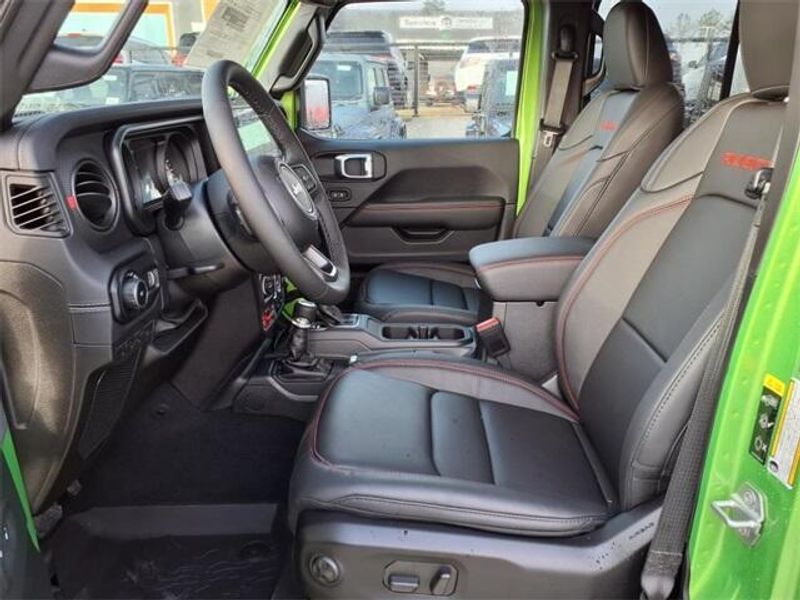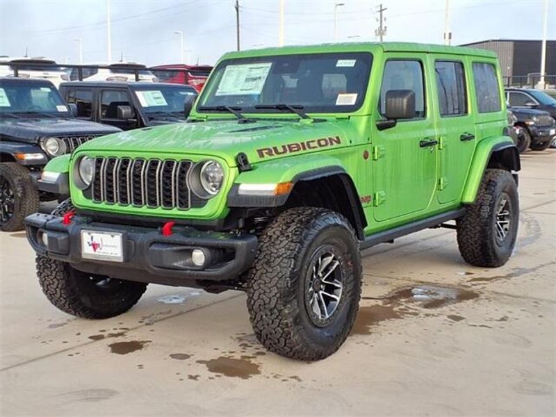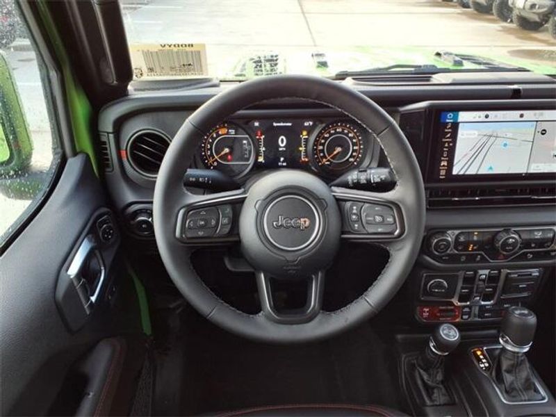 THIS VEHICLE COMES WITH THE FOLLOWING FEATURES AND OPTIONS : Convenience Group (Heated Front Seats, Heated Steering Wheel, and Universal Garage Door Opener), Quick Order Package 24Y Rubicon X (Acoustic Front Seat Area Carpet, Acoustic Laminated Front Door Glass, Alpine Premium Audio System, Body Color 3-Piece Hard Top, Body Color Rubicon Highline Flare, Freedom Panel Storage Bag, Leather Wrapped Park Brake Handle, Leather Wrapped Shift Knob, MOPAR Hardtop Headliner, MOPAR Hinge-Gate Reinforcement, Nappa Leather Seats, Power 4-Way Driver Lumbar Adjust, Power 4-Way Passenger Lumbar Adjust, Power Adjust 8-Way Driver Seat, Power Adjust 8-Way Front Passenger Seat, Premium Door Trim Panel, Rear Window Defroster, Rear Window Wiper/Washer, Steel Front Bumper, and Steel Rear Bumper), Safety Group (Auto High Beam Headlamp Control, Blind Spot & Cross Path Detection, and ParkSense Rear Park Assist System), Technology Group (12.3'' Touchscreen Display, 4G LTE Wi-Fi Hot Spot, Apple CarPlay, Auto-Dimming Rear-View Mirror, Connected Travel & Traffic Services, Connectivity - US/Canada, Google Android Auto, GPS Navigation, HD Radio, Integrated Off-Road Camera, Integrated Voice Command w/Bluetooth, Radio: Uconnect 5 Nav w/12.3'' Display, SiriusXM Radio Service, and SiriusXM w/360L), Trailer Tow & Aux Switch Group (Auxiliary Switches and Class II Receiver Hitch), Trailer Tow Prep Package, Xtreme 35'' Tire Package (35'' Tire Suspension, 97 MPH Vehicle Max Speed Calibration, Anti-Lock 4-Wheel Disc Perf Brakes, and Wheels: 17'' x 8'' Machined w/Black Pockets), 4-Wheel Disc Brakes, 8 Speakers, ABS brakes, Air Conditioning, Alloy wheels, AM/FM radio: SiriusXM, Apple CarPlay/Android Auto, Automatic temperature control, Aux Battery, Brake assist, Cloth Low-Back Bucket Seats, Compass, Delay-off headlights, Driver door bin, Driver vanity mirror, Dual front impact airbags, Dual front side impact airbags, Electronic Stability Control, Emergency communication system: Jeep Connect, Front anti-roll bar, Front Bucket Seats, Front Center Armrest w/Storage, Front dual zone A/C, Front fog lights, Front License Plate Bracket (DISC), Front reading lights, Fully automatic headlights, Heated door mirrors, Illuminated entry, Integrated roll-over protection, Low tire pressure warning, MOPAR All-Weather Floor Mats, Non-Lock Fuel Cap w/o Discriminator, Occupant sensing airbag, Outside temperature display, Overhead airbag, Panic alarm, ParkView Rear Back-Up Camera, Passenger door bin, Passenger vanity mirror, Performance Suspension, Power door mirrors, Power steering, Power windows, Radio data system, Radio: Uconnect 5 w/12.3'' Display, Rear anti-roll bar, Rear reading lights, Remote keyless entry, Security system, Speed control, Split folding rear seat, Steering wheel mounted audio controls, Stop-Start Dual Battery System, Tachometer, Telescoping steering wheel, Tilt steering wheel, Traction control, Trip computer, Variably intermittent wipers, Voltmeter, Wheel Flare Extensions, and Wheels: 17'' x 7.5'' Machined/Painted Black. Price includes: $2500 - 2025 National Retail Bonus Cash . Exp. 11/03/2025
