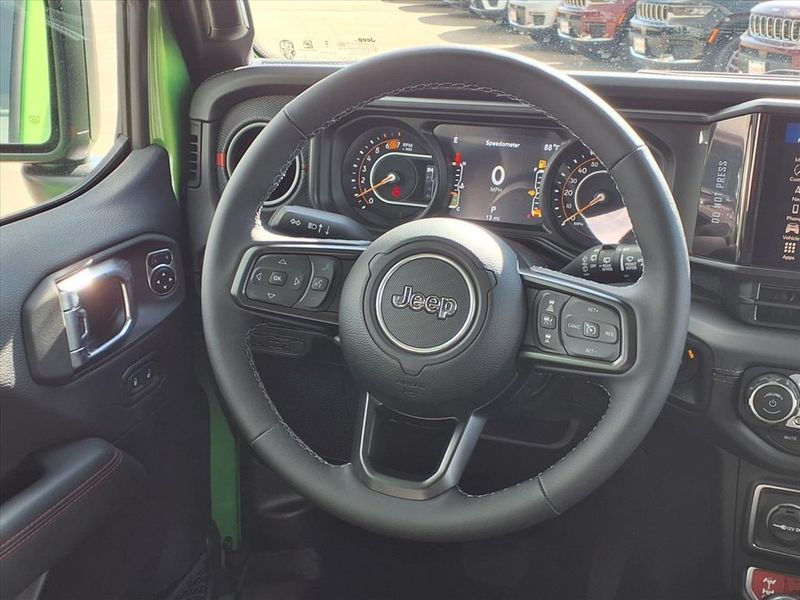 $5,598 off MSRP! This Wrangler Rubicon X vehicle comes nicely equipped with Convenience Group (Heated Front Seats, Heated Steering Wheel, and Universal Garage Door Opener), Quick Order Package 24Y Rubicon X (Acoustic Front Seat Area Carpet, Acoustic Laminated Front Door Glass, Alpine Premium Audio System, Body Color 3-Piece Hard Top, Body Color Rubicon Highline Flare, Freedom Panel Storage Bag, Leather Wrapped Park Brake Handle, Leather Wrapped Shift Knob, MOPAR Hardtop Headliner, MOPAR Hinge-Gate Reinforcement, Nappa Leather Seats, Power 4-Way Driver Lumbar Adjust, Power 4-Way Passenger Lumbar Adjust, Power Adjust 8-Way Driver Seat, Power Adjust 8-Way Front Passenger Seat, Premium Door Trim Panel, Rear Window Defroster, Rear Window Wiper/Washer, Steel Front Bumper, and Steel Rear Bumper), Safety Group (Auto High Beam Headlamp Control, Blind Spot & Cross Path Detection, and ParkSense Rear Park Assist System), Technology Group (12.3'' Touchscreen Display, 4G LTE Wi-Fi Hot Spot, Apple CarPlay, Auto-Dimming Rear-View Mirror, Connected Travel & Traffic Services, Connectivity - US/Canada, Google Android Auto, GPS Navigation, HD Radio, Integrated Off-Road Camera, Integrated Voice Command w/Bluetooth, Radio: Uconnect 5 Nav w/12.3'' Display, SiriusXM Radio Service, and SiriusXM w/360L), Trailer Tow & Aux Switch Group (Auxiliary Switches and Class II Receiver Hitch), Trailer Tow Prep Package, Xtreme 35'' Tire Package (35'' Tire Suspension, 97 MPH Vehicle Max Speed Calibration, Anti-Lock 4-Wheel Disc Perf Brakes, and Wheels: 17'' x 8'' Machined w/Black Pockets), 4-Wheel Disc Brakes, 8 Speakers, ABS brakes, Air Conditioning, Alloy wheels, AM/FM radio: SiriusXM, Apple CarPlay/Android Auto, Automatic temperature control, Aux Battery, Brake assist, Cloth Low-Back Bucket Seats, Compass, Delay-off headlights, Driver door bin, Driver vanity mirror, Dual front impact airbags, Dual front side impact airbags, Electronic Stability Control, Emergency communication system: Jeep Connect, Front anti-roll bar, Front Bucket Seats, Front Center Armrest w/Storage, Front dual zone A/C, Front fog lights, Front License Plate Bracket (DISC), Front reading lights, Fully automatic headlights, Heated door mirrors, Illuminated entry, Integrated roll-over protection, Jeep Trail Rated Kit, Low tire pressure warning, MOPAR All-Weather Floor Mats, Non-Lock Fuel Cap w/o Discriminator, Occupant sensing airbag, Outside temperature display, Overhead airbag, Panic alarm, ParkView Rear Back-Up Camera, Passenger door bin, Passenger vanity mirror, Performance Suspension, Power door mirrors, Power steering, Power windows, Radio data system, Radio: Uconnect 5 w/12.3'' Display, Rear anti-roll bar, Rear reading lights, Remote keyless entry, Security system, Speed control, Split folding rear seat, Steering wheel mounted audio controls, Stop-Start Dual Battery System, Tachometer, Telescoping steering wheel, Tilt steering wheel, Traction control, Trip computer, Variably intermittent wipers, Voltmeter, Wheel Flare Extensions, and Wheels: 17'' x 7.5'' Machined/Painted Black.