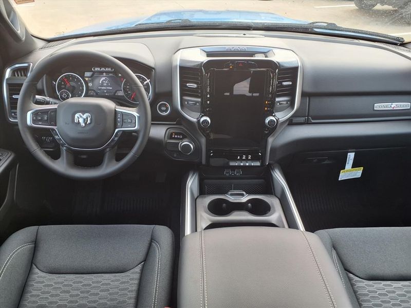 $12,923 off MSRP! This 1500 Big Horn/Lone Star vehicle comes nicely equipped with Big Horn Level 2 Equipment Group (115V Auxiliary Power Outlet, 115V Auxiliary Rear Power Outlet, 12'' Touchscreen Display, 2nd Row In Floor Storage Bins, 400W Inverter, 4G LTE Wi-Fi Hot Spot, 9 Amplified Speakers w/Subwoofer, Air Conditioning ATC w/Dual Zone Control, Apple CarPlay, Auto Power-Folding Mirrors, Auto-Dimming Exterior Driver Mirror, Auto-Dimming Rear-View Mirror, Black Exterior Mirrors, Black Premium Power Mirrors, Cluster 7.0'' TFT Color Display, Configurable Drive Mode, Connected Travel & Traffic Services, Connectivity - US/Canada, Convex Wide-Angle Exterior Mirror Insert, Exterior Mirrors Courtesy Lamps, Exterior Mirrors w/Heating Element, Exterior Mirrors w/Supplemental Signals, Glove Box Lamp, Google Android Auto, GPS Antenna Input, GPS Navigation, HD Radio, Heated Front Seats, Heated Steering Wheel, Integrated Voice Command w/Bluetooth, Leather Wrapped Steering Wheel, LED Dome Lamp w/On/Off Switch, LED Footwell Lighting, Media Hub w/2 Charge Only USBs, Overhead LED Lamps, Power 2-Way Driver Lumbar Adjust, Power Adjust 8-Way Driver Seat, Power Adjustable Pedals, Premium Overhead Console, Radio: Uconnect 5 Nav w/12.0'' Display, Rear Power Sliding Window, Rear Window Defroster, Remote Tailgate Release, Security Alarm, SiriusXM w/360L, Steering Wheel Mounted Audio Controls, Sun Visors w/Illuminated Vanity Mirrors, Universal Garage Door Opener, and USB Host Flip), Night Edition (3 Rear Seat Head Restraints, 4 Way Front Headrests, Accent Color Door Handles, Accent Color Premium Power Mirrors, Accent Color Tailgate Handle, Anti-Spin Differential Rear Axle, Black Exterior Truck Badging, Black Headlamp Bezels, Black Interior Accents, Black Painted Exterior Mirrors Caps, Black Tail Lamp Bezels, Body Color Front Bumper, Body Color Rear Bumper w/Step Pads, Bucket Seats, Deluxe Cloth Bucket Seats, Front Seat Back Map Pockets, Full Length Floor Console, Grille Black Surround Black Mesh, Manual Adjust 4-Way Front Passenger Seat, RAM Grille Badge - Black, Rear 60/40 Folding Seat, Rear Center Armrest, Rear Wheelhouse Liners, and Wheels: 20'' x 9.0'' Aluminum Painted Clad), Quick Order Package 23R Lone Star (Regional) (Lone Star Badge), 4-Wheel Disc Brakes, 6 Speakers, ABS brakes, Air Conditioning, Alloy wheels, AM/FM radio, Apple CarPlay/Android Auto, Auto High-beam Headlights, Brake assist, Bumpers: chrome, Cloth Bench Seat, Compass, Delay-off headlights, Driver door bin, Dual front impact airbags, Dual front side impact airbags, Electronic Stability Control, Exterior Parking Camera Rear, Front anti-roll bar, Front Center Armrest w/Storage, Front fog lights, Front License Plate Bracket, Front reading lights, Front wheel independent suspension, Fully automatic headlights, Heated door mirrors, Illuminated entry, Low tire pressure warning, Manual Folding Exterior Mirrors, MOPAR Front & Rear Rubber Floor Mats, Occupant sensing airbag, Outside temperature display, Overhead airbag, Overhead console, Panic alarm, Passenger door bin, Passenger vanity mirror, Power door mirrors, Power steering, Power windows, Radio data system, Radio: Uconnect 5 W w/8.4'' Display, RAM Grille Badge - Chrome, Rear anti-roll bar, Rear seat center armrest, Rear step bumper, Remote keyless entry, Speed control, Split folding rear seat, Supplier Part Tracking (J-1), Tachometer, Telescoping steering wheel, Tilt steering wheel, Traction control, Trip computer, Variably intermittent wipers, Voltmeter, and Wheels: 18'' x 8'' Cast-Aluminum Painted.