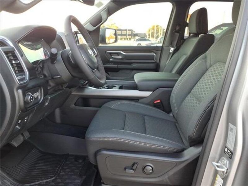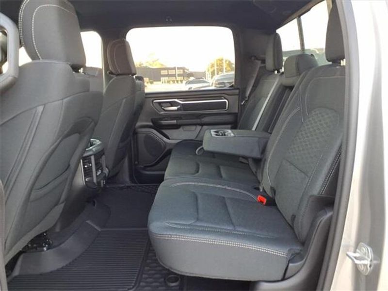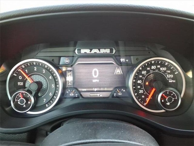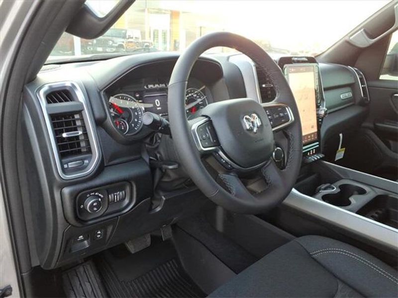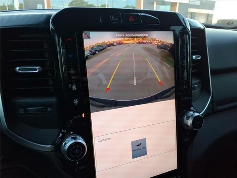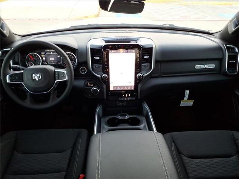 THIS VEHICLE COMES WITH THE FOLLOWING FEATURES AND OPTIONS : Big Horn Level 2 Equipment Group (115V Auxiliary Power Outlet, 115V Auxiliary Rear Power Outlet, 12'' Touchscreen Display, 2nd Row In Floor Storage Bins, 400W Inverter, 4G LTE Wi-Fi Hot Spot, 9 Amplified Speakers w/Subwoofer, Air Conditioning ATC w/Dual Zone Control, Apple CarPlay, Auto Power-Folding Mirrors, Auto-Dimming Exterior Driver Mirror, Auto-Dimming Rear-View Mirror, Black Exterior Mirrors, Black Premium Power Mirrors, Cluster 7.0'' TFT Color Display, Configurable Drive Mode, Connected Travel & Traffic Services, Connectivity - US/Canada, Convex Wide-Angle Exterior Mirror Insert, Exterior Mirrors Courtesy Lamps, Exterior Mirrors w/Heating Element, Exterior Mirrors w/Supplemental Signals, Glove Box Lamp, Google Android Auto, GPS Antenna Input, GPS Navigation, HD Radio, Heated Front Seats, Heated Steering Wheel, Integrated Voice Command w/Bluetooth, Leather Wrapped Steering Wheel, LED Dome Lamp w/On/Off Switch, LED Footwell Lighting, Media Hub w/2 Charge Only USBs, Overhead LED Lamps, Power 2-Way Driver Lumbar Adjust, Power Adjust 8-Way Driver Seat, Power Adjustable Pedals, Premium Overhead Console, Radio: Uconnect 5 Nav w/12.0'' Display, Rear Power Sliding Window, Rear Window Defroster, Remote Tailgate Release, Security Alarm, SiriusXM w/360L, Steering Wheel Mounted Audio Controls, Sun Visors w/Illuminated Vanity Mirrors, Universal Garage Door Opener, and USB Host Flip), Night Edition (3 Rear Seat Head Restraints, 4 Way Front Headrests, Accent Color Door Handles, Accent Color Premium Power Mirrors, Accent Color Tailgate Handle, Anti-Spin Differential Rear Axle, Black Exterior Truck Badging, Black Headlamp Bezels, Black Interior Accents, Black Painted Exterior Mirrors Caps, Black Tail Lamp Bezels, Body Color Front Bumper, Body Color Rear Bumper w/Step Pads, Bucket Seats, Deluxe Cloth Bucket Seats, Front Seat Back Map Pockets, Full Length Floor Console, Grille Black Surround Black Mesh, Manual Adjust 4-Way Front Passenger Seat, RAM Grille Badge - Black, Rear 60/40 Folding Seat, Rear Center Armrest, Rear Wheelhouse Liners, and Wheels: 20'' x 9.0'' Aluminum Painted Clad), Quick Order Package 23R Lone Star (Regional) (Lone Star Badge), 4-Wheel Disc Brakes, 6 Speakers, ABS brakes, Air Conditioning, Alloy wheels, AM/FM radio, Apple CarPlay/Android Auto, Auto High-beam Headlights, Brake assist, Bumpers: chrome, Cloth Bench Seat, Compass, Delay-off headlights, Driver door bin, Dual front impact airbags, Dual front side impact airbags, Electronic Stability Control, Exterior Parking Camera Rear, Front anti-roll bar, Front Center Armrest w/Storage, Front fog lights, Front License Plate Bracket, Front reading lights, Front wheel independent suspension, Fully automatic headlights, Heated door mirrors, Illuminated entry, Low tire pressure warning, Manual Folding Exterior Mirrors, Manufacturer's Statement of Origin, MOPAR Front & Rear Rubber Floor Mats, Occupant sensing airbag, Outside temperature display, Overhead airbag, Overhead console, Panic alarm, Passenger door bin, Passenger vanity mirror, Power door mirrors, Power steering, Power windows, Radio data system, Radio: Uconnect 5 W w/8.4'' Display, RAM Grille Badge - Chrome, Rear anti-roll bar, Rear seat center armrest, Rear step bumper, Remote keyless entry, Speed control, Split folding rear seat, Supplier Part Tracking (J-1), Tachometer, Telescoping steering wheel, Tilt steering wheel, Traction control, Trip computer, Variably intermittent wipers, Voltmeter, and Wheels: 18'' x 8'' Cast-Aluminum Painted.