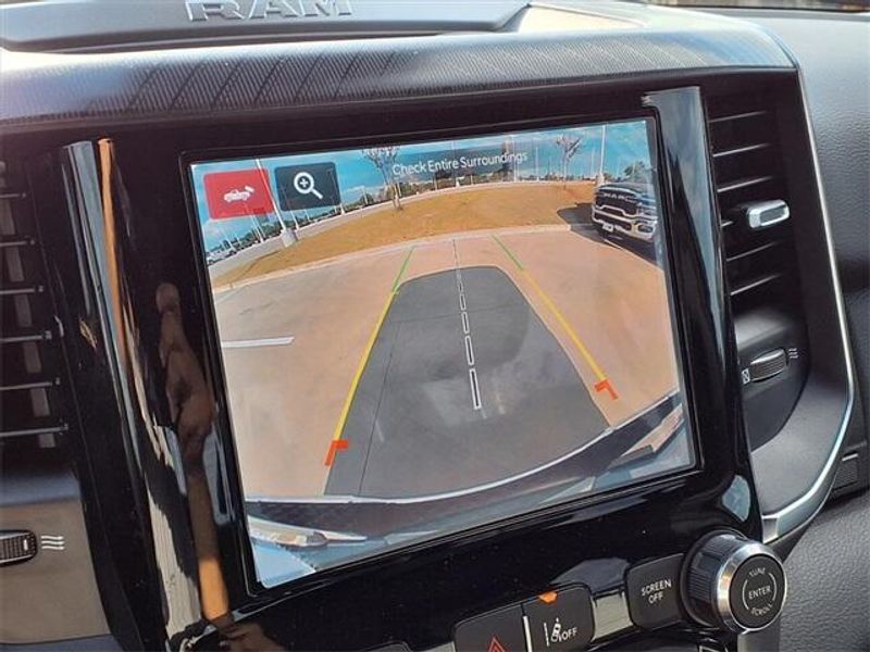THIS VEHICLE COMES WITH THE FOLLOWING FEATURES AND OPTIONS : Big Horn Level 1 Equipment Group (115V Auxiliary Power Outlet, 2nd Row In Floor Storage Bins, 400W Inverter, Auto Power-Folding Mirrors, Auto-Dimming Exterior Driver Mirror, Auto-Dimming Rear-View Mirror, Black Exterior Mirrors, Black Premium Power Mirrors, Convex Wide-Angle Exterior Mirror Insert, Exterior Mirrors Courtesy Lamps, Exterior Mirrors w/Heating Element, Exterior Mirrors w/Supplemental Signals, Glove Box Lamp, Heated Front Seats, Heated Steering Wheel, Leather Wrapped Steering Wheel, Power 2-Way Driver Lumbar Adjust, Power Adjust 8-Way Driver Seat, Power Adjustable Pedals, Rear Power Sliding Window, Rear Window Defroster, Steering Wheel Mounted Audio Controls, Sun Visors w/Illuminated Vanity Mirrors, and Universal Garage Door Opener), Quick Order Package 23R Lone Star (Regional) (Lone Star Badge), 3 Rear Seat Head Restraints, 3.21 Rear Axle Ratio, 4 Way Front Headrests, 4-Wheel Disc Brakes, 4G LTE Wi-Fi Hot Spot, 6 Speakers, ABS brakes, Air Conditioning, Alloy wheels, AM/FM radio, Anti-Spin Differential Rear Axle, Apple CarPlay, Apple CarPlay/Android Auto, Auto High-beam Headlights, Brake assist, Bumpers: chrome, Cloth Bench Seat, Compass, Connectivity - US/Canada, Delay-off headlights, Driver door bin, Dual front impact airbags, Dual front side impact airbags, Electronic Stability Control, Exterior Parking Camera Rear, Front anti-roll bar, Front Center Armrest w/Storage, Front fog lights, Front License Plate Bracket, Front reading lights, Front Seat Back Map Pockets, Front wheel independent suspension, Fully automatic headlights, Google Android Auto, GPS Antenna Input, Heated door mirrors, Illuminated entry, Low tire pressure warning, Manual Adjust 4-Way Front Passenger Seat, Manual Folding Exterior Mirrors, Manufacturer's Statement of Origin, MOPAR Front & Rear Rubber Floor Mats, Occupant sensing airbag, Outside temperature display, Overhead airbag, Overhead console, Panic alarm, Passenger door bin, Passenger vanity mirror, Power door mirrors, Power steering, Power windows, Radio data system, Radio: Uconnect 5 W w/8.4'' Display, RAM Grille Badge - Chrome, Rear 60/40 Folding Seat, Rear anti-roll bar, Rear Center Armrest, Rear seat center armrest, Rear step bumper, Remote keyless entry, Speed control, Split folding rear seat, Supplier Part Tracking (J-1), Tachometer, Telescoping steering wheel, Tilt steering wheel, Traction control, Trip computer, USB Host Flip, Variably intermittent wipers, Voltmeter, and Wheels: 18'' x 8'' Cast-Aluminum Painted.