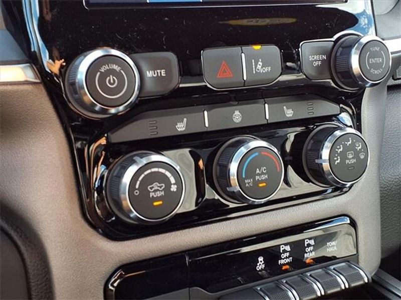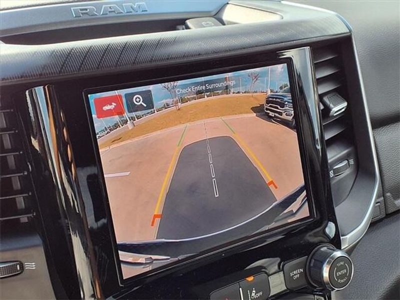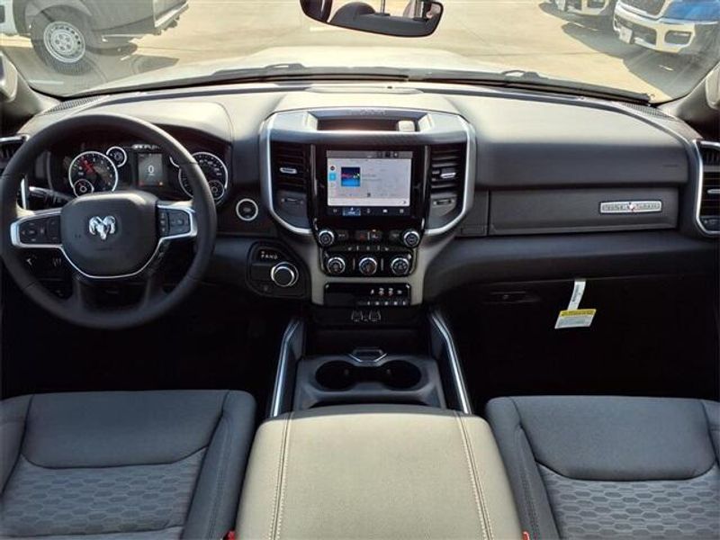 THIS VEHICLE COMES WITH THE FOLLOWING FEATURES AND OPTIONS : Big Horn Level 1 Equipment Group (115V Auxiliary Power Outlet, 2nd Row In Floor Storage Bins, 400W Inverter, Auto Power-Folding Mirrors, Auto-Dimming Exterior Driver Mirror, Auto-Dimming Rear-View Mirror, Black Exterior Mirrors, Black Premium Power Mirrors, Convex Wide-Angle Exterior Mirror Insert, Exterior Mirrors Courtesy Lamps, Exterior Mirrors w/Heating Element, Exterior Mirrors w/Supplemental Signals, Glove Box Lamp, Heated Front Seats, Heated Steering Wheel, Leather Wrapped Steering Wheel, Power 2-Way Driver Lumbar Adjust, Power Adjust 8-Way Driver Seat, Power Adjustable Pedals, Rear Power Sliding Window, Rear Window Defroster, Steering Wheel Mounted Audio Controls, Sun Visors w/Illuminated Vanity Mirrors, and Universal Garage Door Opener), Quick Order Package 23R Lone Star (Regional) (Lone Star Badge), 3 Rear Seat Head Restraints, 3.21 Rear Axle Ratio, 4 Way Front Headrests, 4-Wheel Disc Brakes, 4G LTE Wi-Fi Hot Spot, 6 Speakers, ABS brakes, Air Conditioning, Alloy wheels, AM/FM radio, Apple CarPlay, Apple CarPlay/Android Auto, Auto High-beam Headlights, Brake assist, Bumpers: chrome, Cloth Bench Seat, Compass, Connectivity - US/Canada, Delay-off headlights, Driver door bin, Dual front impact airbags, Dual front side impact airbags, Electronic Stability Control, Exterior Parking Camera Rear, Front anti-roll bar, Front Center Armrest w/Storage, Front fog lights, Front License Plate Bracket, Front reading lights, Front Seat Back Map Pockets, Front wheel independent suspension, Fully automatic headlights, Google Android Auto, GPS Antenna Input, Heated door mirrors, Illuminated entry, Low tire pressure warning, Manual Adjust 4-Way Front Passenger Seat, Manual Folding Exterior Mirrors, Manufacturer's Statement of Origin, MOPAR Front & Rear Rubber Floor Mats, Occupant sensing airbag, Outside temperature display, Overhead airbag, Overhead console, Panic alarm, Passenger door bin, Passenger vanity mirror, Power door mirrors, Power steering, Power windows, Radio data system, Radio: Uconnect 5 W w/8.4'' Display, RAM Grille Badge - Chrome, Rear 60/40 Folding Seat, Rear anti-roll bar, Rear Center Armrest, Rear seat center armrest, Rear step bumper, Remote keyless entry, Speed control, Split folding rear seat, Supplier Part Tracking (J-1), Tachometer, Telescoping steering wheel, Tilt steering wheel, Traction control, Trip computer, USB Host Flip, Variably intermittent wipers, Voltmeter, and Wheels: 18'' x 8'' Cast-Aluminum Painted.