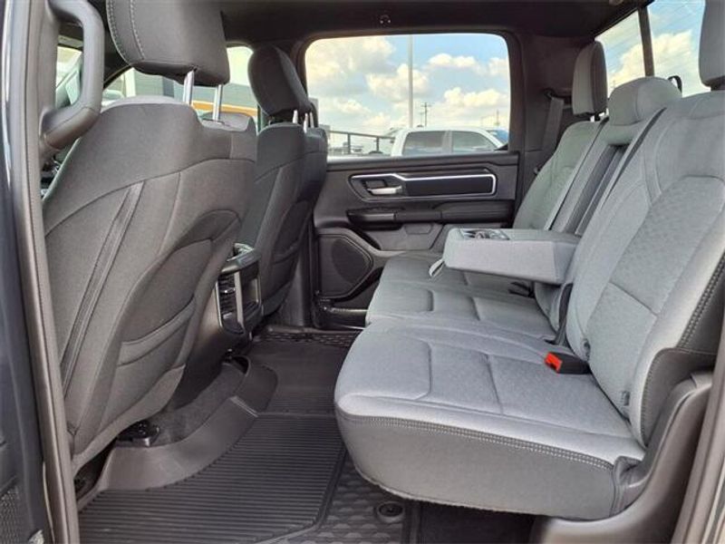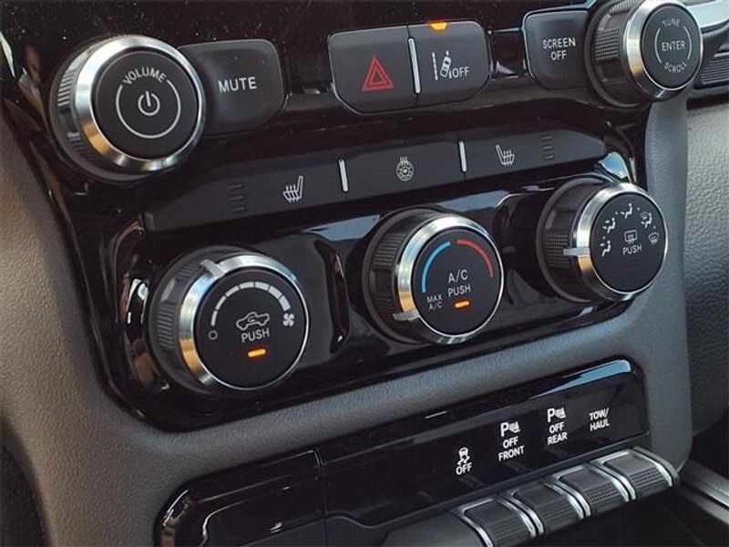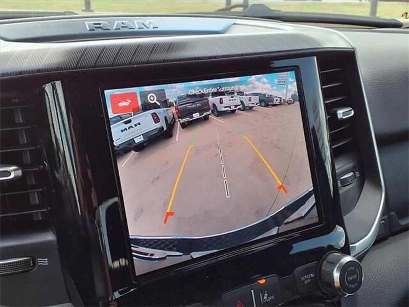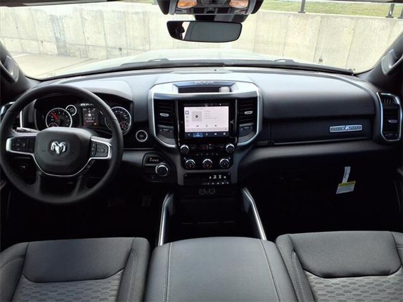 THIS VEHICLE COMES WITH THE FOLLOWING FEATURES AND OPTIONS : Big Horn Level 1 Equipment Group (115V Auxiliary Power Outlet, 2nd Row In Floor Storage Bins, 400W Inverter, Auto Power-Folding Mirrors, Auto-Dimming Exterior Driver Mirror, Auto-Dimming Rear-View Mirror, Black Exterior Mirrors, Black Premium Power Mirrors, Convex Wide-Angle Exterior Mirror Insert, Exterior Mirrors Courtesy Lamps, Exterior Mirrors w/Heating Element, Exterior Mirrors w/Supplemental Signals, Glove Box Lamp, Heated Front Seats, Heated Steering Wheel, Leather Wrapped Steering Wheel, Power 2-Way Driver Lumbar Adjust, Power Adjust 8-Way Driver Seat, Power Adjustable Pedals, Rear Power Sliding Window, Rear Window Defroster, Steering Wheel Mounted Audio Controls, Sun Visors w/Illuminated Vanity Mirrors, and Universal Garage Door Opener), Quick Order Package 23R Lone Star (Regional) (Lone Star Badge), 3 Rear Seat Head Restraints, 3.21 Rear Axle Ratio, 4 Way Front Headrests, 4-Wheel Disc Brakes, 4G LTE Wi-Fi Hot Spot, 6 Speakers, ABS brakes, Air Conditioning, Alloy wheels, AM/FM radio, Anti-Spin Differential Rear Axle, Apple CarPlay, Apple CarPlay/Android Auto, Auto High-beam Headlights, Brake assist, Bumpers: chrome, Cloth Bench Seat, Compass, Connectivity - US/Canada, Delay-off headlights, Driver door bin, Dual front impact airbags, Dual front side impact airbags, Electronic Stability Control, Exterior Parking Camera Rear, Front anti-roll bar, Front Center Armrest w/Storage, Front fog lights, Front License Plate Bracket, Front reading lights, Front Seat Back Map Pockets, Front wheel independent suspension, Fully automatic headlights, Google Android Auto, GPS Antenna Input, Heated door mirrors, Illuminated entry, Low tire pressure warning, Manual Adjust 4-Way Front Passenger Seat, Manual Folding Exterior Mirrors, Manufacturer's Statement of Origin, MOPAR Front & Rear Rubber Floor Mats, Occupant sensing airbag, Outside temperature display, Overhead airbag, Overhead console, Panic alarm, Passenger door bin, Passenger vanity mirror, Power door mirrors, Power steering, Power windows, Radio data system, Radio: Uconnect 5 W w/8.4'' Display, RAM Grille Badge - Chrome, Rear 60/40 Folding Seat, Rear anti-roll bar, Rear Center Armrest, Rear seat center armrest, Rear step bumper, Remote keyless entry, Speed control, Split folding rear seat, Supplier Part Tracking (J-1), Tachometer, Telescoping steering wheel, Tilt steering wheel, Traction control, Trip computer, USB Host Flip, Variably intermittent wipers, Voltmeter, and Wheels: 18'' x 8'' Cast-Aluminum Painted.