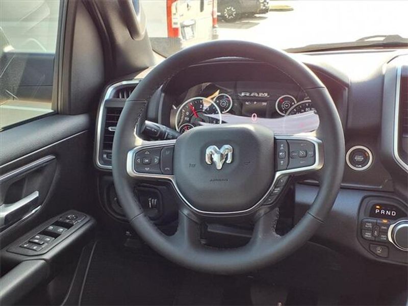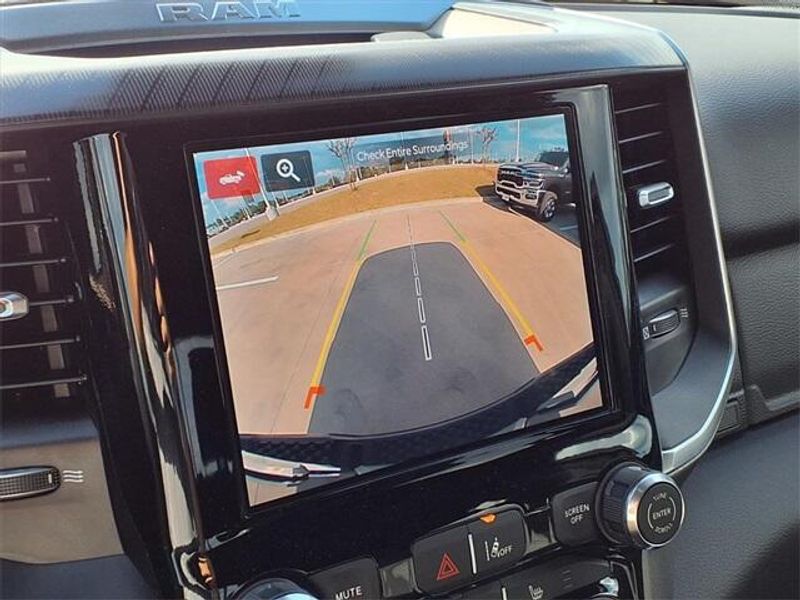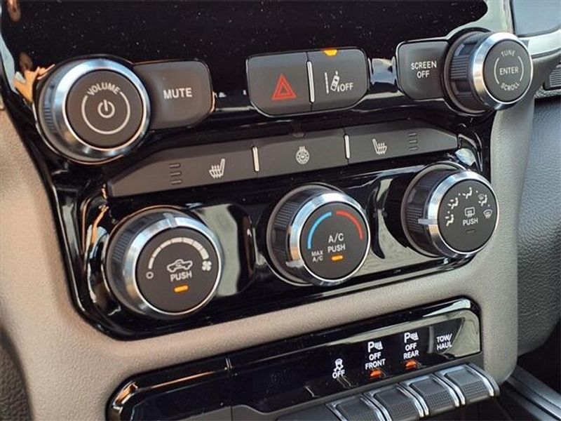 THIS VEHICLE COMES WITH THE FOLLOWING FEATURES AND OPTIONS : Big Horn Level 1 Equipment Group (115V Auxiliary Power Outlet, 2nd Row In Floor Storage Bins, 400W Inverter, Auto Power-Folding Mirrors, Auto-Dimming Exterior Driver Mirror, Auto-Dimming Rear-View Mirror, Black Exterior Mirrors, Black Premium Power Mirrors, Convex Wide-Angle Exterior Mirror Insert, Exterior Mirrors Courtesy Lamps, Exterior Mirrors w/Heating Element, Exterior Mirrors w/Supplemental Signals, Glove Box Lamp, Heated Front Seats, Heated Steering Wheel, Leather Wrapped Steering Wheel, Power 2-Way Driver Lumbar Adjust, Power Adjust 8-Way Driver Seat, Power Adjustable Pedals, Rear Power Sliding Window, Rear Window Defroster, Steering Wheel Mounted Audio Controls, Sun Visors w/Illuminated Vanity Mirrors, and Universal Garage Door Opener), Quick Order Package 23R Lone Star (Regional) (Lone Star Badge), Sport Appearance Package (3 Rear Seat Head Restraints, 4 Way Front Headrests, Black Interior Accents, Body Color Door Handles, Body Color Front Bumper, Body Color Rear Bumper w/Step Pads, Body Color Tailgate Handle, Bucket Seats, Deluxe Cloth Bucket Seats, Front Seat Back Map Pockets, Full Length Floor Console, Grille Surround 1 Body Color Texture 1 Black, Manual Adjust 4-Way Front Passenger Seat, RAM Grille Badge - Chrome, Rear 60/40 Folding Seat, and Rear Center Armrest), 4-Wheel Disc Brakes, 4G LTE Wi-Fi Hot Spot, 6 Speakers, ABS brakes, Air Conditioning, Alloy wheels, AM/FM radio, Anti-Spin Differential Rear Axle, Apple CarPlay/Android Auto, Auto High-beam Headlights, Brake assist, Bumpers: chrome, Cloth Bench Seat, Compass, Connectivity - US/Canada, Delay-off headlights, Driver door bin, Dual front impact airbags, Dual front side impact airbags, Electronic Stability Control, Front anti-roll bar, Front Center Armrest w/Storage, Front fog lights, Front License Plate Bracket, Front reading lights, Front wheel independent suspension, Fully automatic headlights, GPS Antenna Input, Heated door mirrors, Illuminated entry, Integrated Voice Command w/Bluetooth, Low tire pressure warning, Manual Folding Exterior Mirrors, Manufacturer's Statement of Origin, MOPAR Front & Rear Rubber Floor Mats, Occupant sensing airbag, Outside temperature display, Overhead airbag, Overhead console, Panic alarm, ParkView Rear Back-Up Camera, Passenger door bin, Passenger vanity mirror, Power door mirrors, Power steering, Power windows, Radio data system, Radio: Uconnect 5 W w/8.4'' Display, Rear anti-roll bar, Rear seat center armrest, Rear step bumper, Remote keyless entry, Speed control, Split folding rear seat, Supplier Part Tracking (J-1), Tachometer, Telescoping steering wheel, Tilt steering wheel, Traction control, Trip computer, USB Host Flip, Variably intermittent wipers, Voltmeter, and Wheels: 18'' x 8'' Cast-Aluminum Painted.