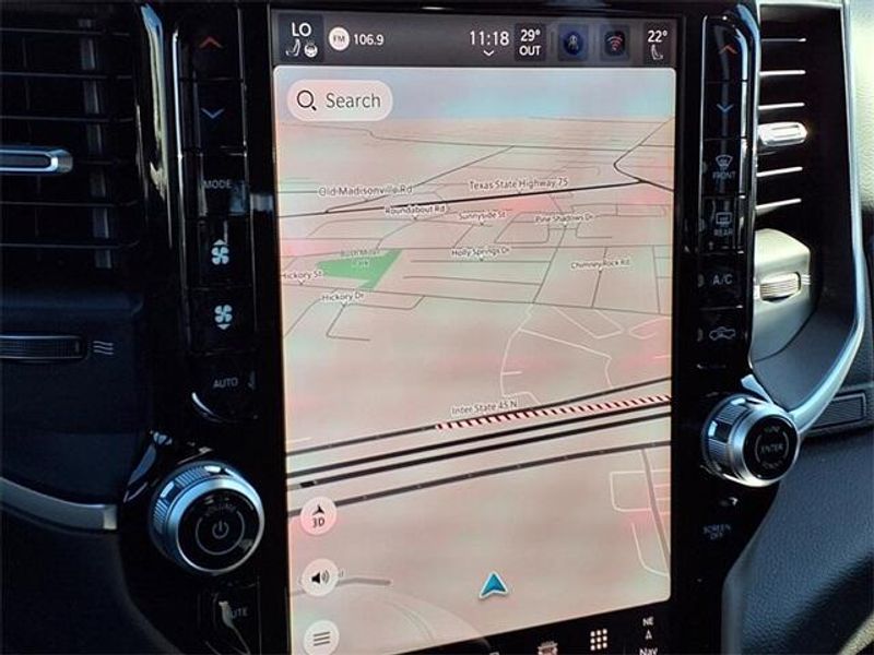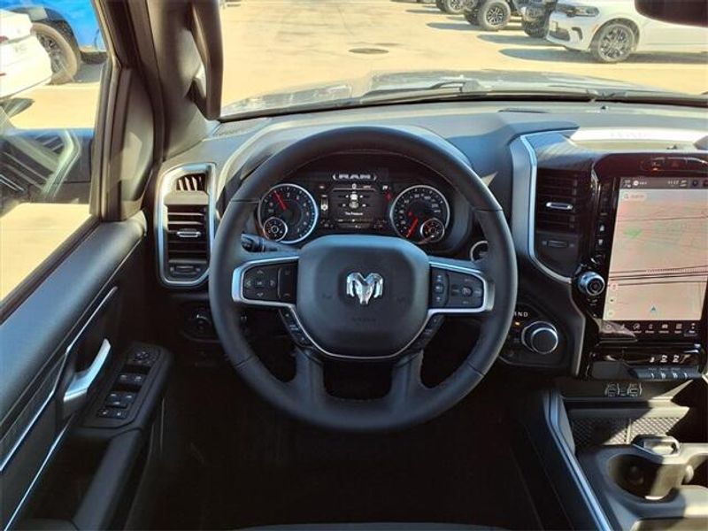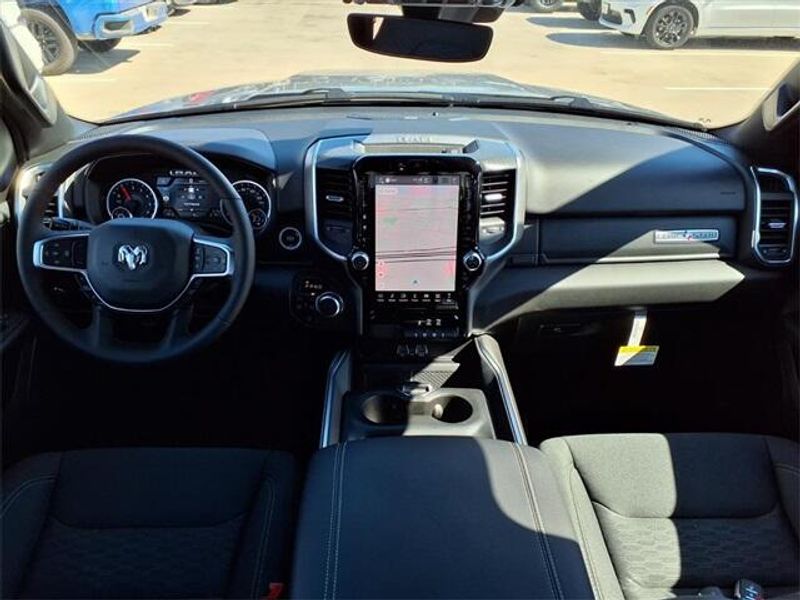 THIS VEHICLE COMES WITH THE FOLLOWING FEATURES AND OPTIONS : Big Horn Level 2 Equipment Group (115V Auxiliary Power Outlet, 115V Auxiliary Rear Power Outlet, 12'' Touchscreen Display, 2nd Row In Floor Storage Bins, 400W Inverter, 4G LTE Wi-Fi Hot Spot, 9 Amplified Speakers w/Subwoofer, Air Conditioning ATC w/Dual Zone Control, Apple CarPlay, Auto Power-Folding Mirrors, Auto-Dimming Exterior Driver Mirror, Auto-Dimming Rear-View Mirror, Black Exterior Mirrors, Black Premium Power Mirrors, Cluster 7.0'' TFT Color Display, Configurable Drive Mode, Connected Travel & Traffic Services, Connectivity - US/Canada, Convex Wide-Angle Exterior Mirror Insert, Exterior Mirrors Courtesy Lamps, Exterior Mirrors w/Heating Element, Exterior Mirrors w/Supplemental Signals, Glove Box Lamp, Google Android Auto, GPS Antenna Input, GPS Navigation, HD Radio, Heated Front Seats, Heated Steering Wheel, Integrated Voice Command w/Bluetooth, Leather Wrapped Steering Wheel, LED Dome Lamp w/On/Off Switch, LED Footwell Lighting, Media Hub w/2 Charge Only USBs, Overhead LED Lamps, Power 2-Way Driver Lumbar Adjust, Power Adjust 8-Way Driver Seat, Power Adjustable Pedals, Premium Overhead Console, Radio: Uconnect 5 Nav w/12.0'' Display, Rear Power Sliding Window, Rear Window Defroster, Remote Tailgate Release, Security Alarm, SiriusXM w/360L, Steering Wheel Mounted Audio Controls, Sun Visors w/Illuminated Vanity Mirrors, Universal Garage Door Opener, and USB Host Flip), Night Edition (3 Rear Seat Head Restraints, 4 Way Front Headrests, Accent Color Door Handles, Accent Color Premium Power Mirrors, Accent Color Tailgate Handle, Anti-Spin Differential Rear Axle, Black Exterior Truck Badging, Black Headlamp Bezels, Black Interior Accents, Black Painted Exterior Mirrors Caps, Black Tail Lamp Bezels, Body Color Front Bumper, Body Color Rear Bumper w/Step Pads, Bucket Seats, Deluxe Cloth Bucket Seats, Front Seat Back Map Pockets, Full Length Floor Console, Grille Black Surround Black Mesh, Manual Adjust 4-Way Front Passenger Seat, RAM Grille Badge - Black, Rear 60/40 Folding Seat, Rear Center Armrest, and Wheels: 20'' x 9.0'' Aluminum Painted Clad), Quick Order Package 23R Lone Star (Regional) (Lone Star Badge), 3.21 Rear Axle Ratio, 4-Wheel Disc Brakes, 6 Speakers, ABS brakes, Air Conditioning, Alloy wheels, AM/FM radio, Apple CarPlay/Android Auto, Auto High-beam Headlights, Brake assist, Bumpers: chrome, Cloth Bench Seat, Compass, Delay-off headlights, Driver door bin, Dual front impact airbags, Dual front side impact airbags, Electronic Stability Control, Front anti-roll bar, Front Center Armrest w/Storage, Front fog lights, Front License Plate Bracket, Front reading lights, Front wheel independent suspension, Fully automatic headlights, Heated door mirrors, Illuminated entry, Low tire pressure warning, Manual Folding Exterior Mirrors, Manufacturer's Statement of Origin, MOPAR Front & Rear Rubber Floor Mats, Occupant sensing airbag, Outside temperature display, Overhead airbag, Overhead console, Panic alarm, ParkView Rear Back-Up Camera, Passenger door bin, Passenger vanity mirror, Power door mirrors, Power steering, Power windows, Radio data system, Radio: Uconnect 5 W w/8.4'' Display, RAM Grille Badge - Chrome, Rear anti-roll bar, Rear seat center armrest, Rear step bumper, Remote keyless entry, Speed control, Split folding rear seat, Supplier Part Tracking (J-1), Tachometer, Telescoping steering wheel, Tilt steering wheel, Traction control, Trip computer, Variably intermittent wipers, Voltmeter, and Wheels: 18'' x 8'' Cast-Aluminum Painted. Price includes: 10% Msrp - 2025 National 10% Below MSRP . Exp. 12/01/2025