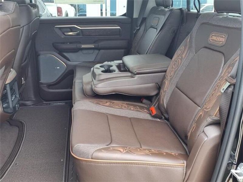 THIS VEHICLE COMES WITH THE FOLLOWING FEATURES AND OPTIONS : Limited Level An Equipment Group (12-Way/1-Way Trailer Connector, 14.4'' Touchscreen Display, 240 Amp Alternator, 4G LTE Wi-Fi Hot Spot, Apple CarPlay, Connected Travel & Traffic Services, Connectivity - US/Canada, Disassociated Touchscreen Display, Drowsy Driver Detection, Evasive Steer Assist, For Details, Visit DriveUconnect.com, Google Android Auto, GPS Antenna Input, GPS Navigation, Hands-Free Active Driving Assist System, HD Radio, Heads-Up Display, Integrated Voice Command w/Bluetooth, Intersection Collision Assist System, LED CHMSL Lamp, Radio: Uconnect 5 Nav w/14.4'' Display, SiriusXM w/360L, Smartphone As A Key Capable, Surround View Camera System, Traffic Sign Recognition, Tri-Fold Tonneau Cover, and USB Host Flip), Quick Order Package 22K Longhorn (Grille Surround 4 Chrome Texture 5 Chrome, Longhorn Badge, Longhorn Instrument Cluster Theme 3, Premium Door Trim Panel, Premium Filigree Leather Seats, and Warm Chrome Key Fob), 19 Speakers, 3.92 Rear Axle Ratio, 4-Wheel Disc Brakes, ABS brakes, Adjustable pedals, Air Conditioning, Alloy wheels, AM/FM radio: SiriusXM with 360L, Apple CarPlay/Android Auto, Audio memory, Auto High-beam Headlights, Auto Power-Folding Mirrors, Auto-dimming door mirrors, Auto-Dimming Exterior Driver Mirror, Auto-dimming Rear-View mirror, Auto-leveling suspension, Automatic temperature control, Bodyside moldings, Brake assist, Bumpers: chrome, Chrome Exterior Mirrors, Compass, Convex Wide-Angle Exterior Mirror Insert, Delay-off headlights, Dome Dual LED Reading Lamp, Driver door bin, Driver vanity mirror, Dual front impact airbags, Dual front side impact airbags, Dual-Pane Panoramic Sunroof, Electronic Stability Control, Exterior 115V AC Outlet, Exterior Mirrors Courtesy Lamps, Exterior Mirrors w/Heating Element, Exterior Mirrors w/Memory, Exterior Mirrors w/Supplemental Signals, Front anti-roll bar, Front Bucket Seats, Front Center Armrest w/Storage, Front dual zone A/C, Front fog lights, Front License Plate Bracket, Front reading lights, Front wheel independent suspension, Fully automatic headlights, Garage door transmitter, Genuine wood console insert, Genuine wood dashboard insert, Genuine wood door panel insert, harman/kardon Speakers, Heated door mirrors, Heated front seats, Heated rear seats, Heated steering wheel, Illuminated entry, Leather steering wheel, LED Dome/Reading Lamp, Low tire pressure warning, Memory seat, Navigation System, Occupant sensing airbag, Outside temperature display, Overhead airbag, Overhead console, Panic alarm, ParkView Rear Back-Up Camera, Passenger door bin, Passenger vanity mirror, Pedal memory, Pirelli Brand Tires, Power door mirrors, Power driver seat, Power passenger seat, Power steering, Power windows, Premium Quilted Leather Bucket Seats, Radio data system, Radio: Uconnect 5 Nav w/12.0'' Display, Rain sensing wipers, Rear anti-roll bar, Rear reading lights, Rear seat center armrest, Rear step bumper, Rear window defroster, Remote keyless entry, Security system, Speed control, Split folding rear seat, Steering wheel mounted audio controls, Tachometer, Telescoping steering wheel, Tilt steering wheel, Traction control, Trailer Brake Control, Trip computer, Turn signal indicator mirrors, Variably intermittent wipers, Ventilated front seats, Ventilated rear seats, Voltmeter, Wheels: 20'' x 9'' Premium Paint/Polished, and Wheels: 22'' x 9'' Premium Paint/PolisheD. Price includes: $5250 - 2025 National Retail Consumer Cash. Exp. 11/03/2025