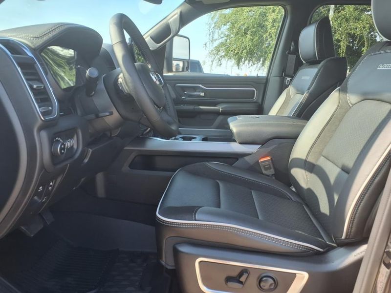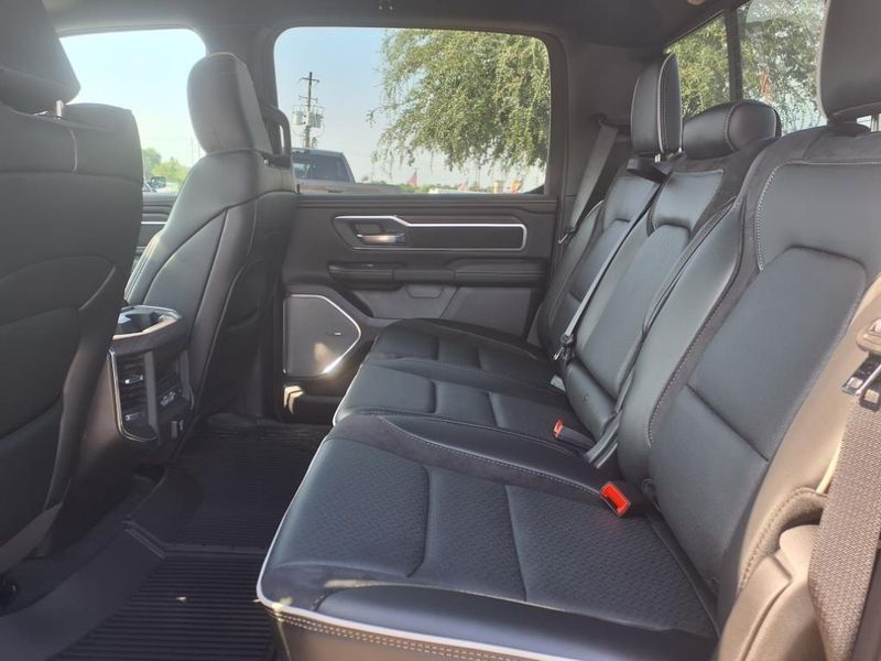 $16,524 off MSRP! This 1500 Laramie vehicle comes nicely equipped with Bed Utility Group (MOPAR 4 Adjustable Cargo Tie-Down Hooks and MOPAR Spray In Bedliner), Laramie Level 2 Equipment Group (14.4'' Touchscreen Display, 4G LTE Wi-Fi Hot Spot, Apple CarPlay, Cluster 12'' TFT Color Display, Connected Travel & Traffic Services, Connectivity - US/Canada, Google Android Auto, GPS Antenna Input, GPS Navigation, harman/kardon 19 Speaker Premium Sound, HD Radio, Integrated Voice Command w/Bluetooth, Power Tailgate, Radio: Uconnect 5 Nav w/14.4'' Display, Rain Sensitive Windshield Wipers, SiriusXM w/360L, and USB Host Flip), Night Edition (#1 Seat Foam Cushion, 3 Rear Seat Head Restraints, 4 Way Front Headrests, Accent Color Door Handles, Accent Color Premium Power Mirrors, Accent Color Tailgate Handle, Anti-Spin Differential Rear Axle, Auto Power-Folding Mirrors, Auto-Dimming Exterior Driver Mirror, Black Exterior Truck Badging, Black Headlamp Bezels, Black Interior Accents, Black Painted Exterior Mirrors Caps, Black Tail Lamp Bezels, Body Color Front Bumper, Body Color Rear Bumper w/Step Pads, Bucket Seats, Center Console Parts Module, Convex Wide-Angle Exterior Mirror Insert, Driver Seat Memory, Dual Exhaust w/Black Tips, Exterior Mirrors Approach Lamps, Exterior Mirrors Courtesy Lamps, Exterior Mirrors w/Heating Element, Exterior Mirrors w/Memory, Exterior Mirrors w/Supplemental Signals, Front Seat Back Map Pockets, Full Length Upgraded Floor Console, Grille Surround 3 Black Texture 2 Black, Heated Front Seats, Heated Second Row Seats, Heated Steering Wheel, Leather Trimmed Bucket Seats, Pirelli Brand Tires, Power 2-Way Driver Lumbar Adjust, Power 2-Way Passenger Lumbar Adjust, Power Adjust 8-Way Driver Seat, Power Adjust 8-Way Front Passenger Seat, Proximity Approach/Departure Lamps, RAM Grille Badge - Black, Rear 60/40 Folding Split Recline Seat, Sport Performance Hood, Ventilated Front Seats, and Wheels: 22'' x 9'' Forged Aluminum), Quick Order Package 21H Laramie, Trailer Tow Group (Auto-Dimming Exterior Passenger Mirror, Black Exterior Mirrors, Chrome Exterior Mirrors, Forward & Reverse Utility Lights, Mirror Clearance/Running Lights, Power Telescoping Mirrors, Power-Adjustable Convex Aux Mirrors, Trailer Brake Control, Trailer Light Check, Trailer Reverse Steering Control, Trailer Tire Pressure Monitoring System, and Trailer Tow Mirrors), 10 Speakers, 3.55 Rear Axle Ratio, 4-Wheel Disc Brakes, ABS brakes, Air Conditioning, Alloy wheels, AM/FM radio: SiriusXM with 360L, Apple CarPlay/Android Auto, Audio memory, Auto High-beam Headlights, Auto-dimming door mirrors, Auto-dimming Rear-View mirror, Automatic temperature control, Brake assist, Bumpers: chrome, Compass, Delay-off headlights, Driver door bin, Driver vanity mirror, Dual front impact airbags, Dual front side impact airbags, Electronic Stability Control, Front anti-roll bar, Front Center Armrest w/Storage, Front dual zone A/C, Front fog lights, Front reading lights, Front wheel independent suspension, Fully automatic headlights, Garage door transmitter, Heated door mirrors, Heated front seats, Heated rear seats, Heated steering wheel, Illuminated entry, Leather steering wheel, Leather Trim 40/20/40 Bench Seat, Low tire pressure warning, Memory seat, MOPAR Front & Rear Rubber Floor Mats, Navigation System, Occupant sensing airbag, Outside temperature display, Overhead airbag, Overhead console, Panic alarm, ParkView Rear Back-Up Camera, Passenger door bin, Passenger vanity mirror, Power Deployable Running Boards, Power door mirrors, Power driver seat, Power passenger seat, Power steering, Power windows, Radio data system, Radio: Uconnect 5 Nav w/12.0'' Display, RAM Grille Badge - Chrome, Rear anti-roll bar, Rear reading lights, Rear seat center armrest, Rear step bumper, Remote keyless entry, Security system, Speed control, Split folding rear seat, Steering wheel mounted audio controls, Tachometer, Te Price includes: 10% Msrp - 2025 National 10% Below MSRP . Exp. 11/03/2