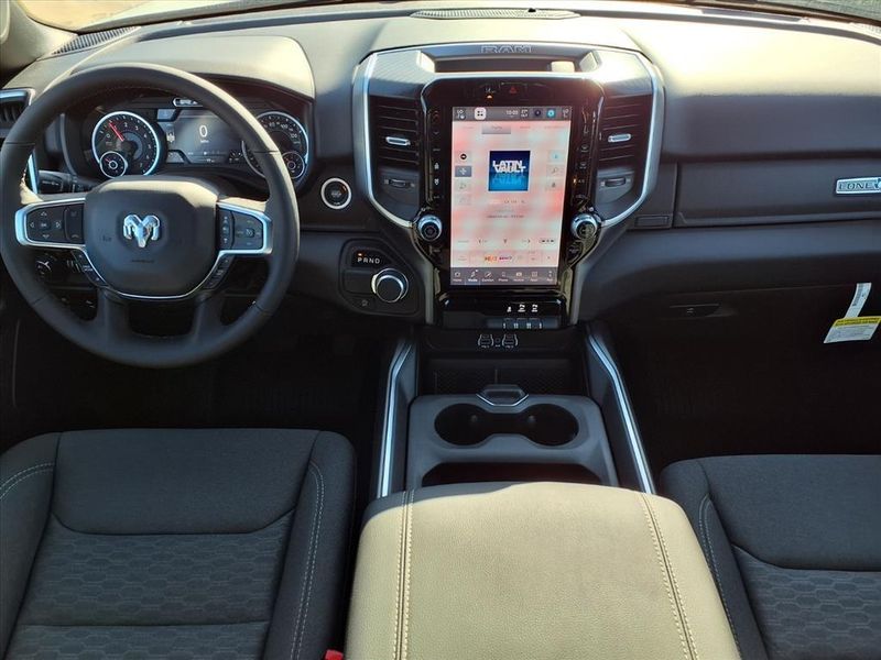 $11,633 off MSRP! This 1500 Big Horn/Lone Star vehicle comes nicely equipped with Big Horn Level 2 Equipment Group (115V Auxiliary Power Outlet, 115V Auxiliary Rear Power Outlet, 12'' Touchscreen Display, 2nd Row In Floor Storage Bins, 400W Inverter, 4G LTE Wi-Fi Hot Spot, 9 Amplified Speakers w/Subwoofer, Air Conditioning ATC w/Dual Zone Control, Apple CarPlay, Auto Power-Folding Mirrors, Auto-Dimming Exterior Driver Mirror, Auto-Dimming Rear-View Mirror, Black Exterior Mirrors, Black Premium Power Mirrors, Cluster 7.0'' TFT Color Display, Configurable Drive Mode, Connected Travel & Traffic Services, Connectivity - US/Canada, Convex Wide-Angle Exterior Mirror Insert, Exterior Mirrors Courtesy Lamps, Exterior Mirrors w/Heating Element, Exterior Mirrors w/Supplemental Signals, Glove Box Lamp, Google Android Auto, GPS Antenna Input, GPS Navigation, HD Radio, Heated Front Seats, Heated Steering Wheel, Integrated Voice Command w/Bluetooth, Leather Wrapped Steering Wheel, LED Dome Lamp w/On/Off Switch, LED Footwell Lighting, Media Hub w/2 Charge Only USBs, Overhead LED Lamps, Power 2-Way Driver Lumbar Adjust, Power Adjust 8-Way Driver Seat, Power Adjustable Pedals, Premium Overhead Console, Radio: Uconnect 5 Nav w/12.0'' Display, Rear Power Sliding Window, Rear Window Defroster, Remote Tailgate Release, Security Alarm, SiriusXM w/360L, Steering Wheel Mounted Audio Controls, Sun Visors w/Illuminated Vanity Mirrors, Universal Garage Door Opener, and USB Host Flip), Night Edition (3 Rear Seat Head Restraints, 4 Way Front Headrests, Accent Color Door Handles, Accent Color Premium Power Mirrors, Accent Color Tailgate Handle, Anti-Spin Differential Rear Axle, Black Exterior Truck Badging, Black Headlamp Bezels, Black Interior Accents, Black Painted Exterior Mirrors Caps, Black Tail Lamp Bezels, Body Color Front Bumper, Body Color Rear Bumper w/Step Pads, Bucket Seats, Deluxe Cloth Bucket Seats, Front Seat Back Map Pockets, Full Length Floor Console, Grille Black Surround Black Mesh, Manual Adjust 4-Way Front Passenger Seat, RAM Grille Badge - Black, Rear 60/40 Folding Seat, Rear Center Armrest, Rear Wheelhouse Liners, and Wheels: 20'' x 9.0'' Aluminum Painted Clad), Quick Order Package 23R Lone Star (Regional) (Lone Star Badge), 4-Wheel Disc Brakes, 6 Speakers, ABS brakes, Air Conditioning, Alloy wheels, AM/FM radio, Apple CarPlay/Android Auto, Auto High-beam Headlights, Brake assist, Bumpers: chrome, Cloth Bench Seat, Compass, Delay-off headlights, Driver door bin, Dual front impact airbags, Dual front side impact airbags, Electronic Stability Control, Exterior Parking Camera Rear, Front anti-roll bar, Front Center Armrest w/Storage, Front fog lights, Front License Plate Bracket, Front reading lights, Front wheel independent suspension, Fully automatic headlights, Heated door mirrors, Illuminated entry, Low tire pressure warning, Manual Folding Exterior Mirrors, MOPAR Front & Rear Rubber Floor Mats, Occupant sensing airbag, Outside temperature display, Overhead airbag, Overhead console, Panic alarm, Passenger door bin, Passenger vanity mirror, Power door mirrors, Power steering, Power windows, Radio data system, Radio: Uconnect 5 W w/8.4'' Display, RAM Grille Badge - Chrome, Rear anti-roll bar, Rear seat center armrest, Rear step bumper, Remote keyless entry, Speed control, Split folding rear seat, Supplier Part Tracking (J-1), Tachometer, Telescoping steering wheel, Tilt steering wheel, Traction control, Trip computer, Variably intermittent wipers, Voltmeter, and Wheels: 18'' x 8'' Cast-Aluminum Painted.