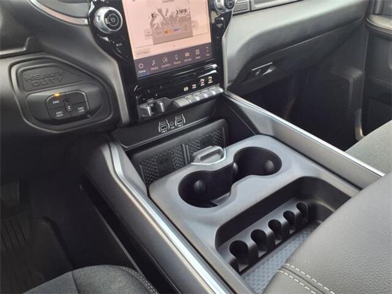 THIS VEHICLE COMES WITH THE FOLLOWING FEATURES AND OPTIONS : Big Horn Level 2 Plus Equipment Group (115V Auxiliary Front Power Outlet, 115V Auxiliary Rear Power Outlet, 12'' Touchscreen Display, 2 Way Rear Headrest Seat, 2nd Row In Floor Storage Bins, 4 Way Front Headrests, 400W Inverter, 4G LTE Wi-Fi Hot Spot, 9 Alpine Speakers w/Subwoofer, Active Lane Management System, Adaptive Steering System, Air Conditioning ATC w/Dual Zone Control, Alexa Built-In, Anti-Spin Differential Rear Axle, Apple CarPlay, Auto High Beam Headlamp Control, Auto Power-Folding Mirrors, Auto-Dimming Rear-View Mirror, Black Exterior Mirrors, Blind Spot & Cross Path Detection, Bucket Seats, Connected Travel & Traffic Services, Connectivity - US/Canada, CTR Stop Lamp w/Cargo View Camera, Dampened Tailgate, Disassociated Touchscreen Display, Drowsy Driver Detection, Dual Glove Boxes, Dual Wireless Charging Pad, Emergency Vehicle Alert System (EVAS), Exterior 115V AC Outlet, Exterior Mirrors Courtesy Lamps, Exterior Mirrors w/Heating Element, Exterior Mirrors w/Supplemental Signals, Foam Bottle Insert (Door Trim Panel), Folding Flat Load Floor Storage, Footwell Courtesy Lamp, Forward & Reverse Utility Lights, Front Seat Back Map Pockets, Full Length Upgraded Floor Console, Global Telematics Box Module (TBM), Glove Box Lamp, Google Android Auto, GPS Antenna Input, GPS Navigation, HD Radio, Heated Front Seats, Heated Steering Wheel, Integrated Voice Command w/Bluetooth, LED Bed Lighting, LED Tail Lamps, Locking Lower Glove Box, Luxury Steering Wheel, Manual Adjust 4-Way Front Passenger Seat, Media Hub w/2 Charge Only USBs, Mirror Running Lights, MOPAR Deployable Bed Step, MOPAR Spray In Bedliner, Off-Road Info Pages, Power 2-Way Driver Lumbar Adjust, Power Adjust 8-Way Driver Seat, Power Adjust Mirrors, Power Adjustable Convex Aux Mirrors, Power Adjustable Pedals, Power Heated Folding Telescopic Mirrors, Power Telescoping Mirrors, Premium Cloth Bucket Seats, Radio: Uconnect 5 Nav w/12.0'' Display, Rain Sensitive Windshield Wipers, Rear 60/40 Folding Seat, Rear Dome w/On/Off Switch Lamp, Rear Power Sliding Window, Red Tail Lamp Bezels, Remote Start System, Selectable Tire Fill Alert, SiriusXM Radio Service, SiriusXM w/360L, Steering Wheel Mounted Audio Controls, Sun Visors w/Illuminated Vanity Mirrors, Surround View Camera System, Traffic Sign Recognition, Trailer Reverse Guidance, Trailer Tire Pressure Monitoring System, Trailer Tow Pages, and Universal Garage Door Opener), Night Edition (Black Exterior Truck Badging, Black Interior Accents, Black Wheel Center Hub, Body Color Grille Surround, Gloss Black Nostrils/Mic Black Grille, Painted Front Bumper, Painted Rear Bumper, and Wheels: 20'' x 8.0'' Black Painted Aluminum), Quick Order Package 24Y Lone Star (Regional) (Lone Star Badge), 4-Wheel Disc Brakes, 40/20/40 Split Bench Seat, 5th Wheel/Gooseneck Towing Prep Group, 6 Speakers, ABS brakes, Air Conditioning, Alloy wheels, AM/FM radio: SiriusXM, Apple CarPlay/Android Auto, Brake assist, Bumpers: chrome, Clearance Lamps, Cloth 40/20/40 Bench Seat, Compass, Delay-off headlights, Driver door bin, Dual front impact airbags, Dual front side impact airbags, Electronic Stability Control, Front anti-roll bar, Front Armrest w/Cupholders, Front Center Armrest w/Storage, Front fog lights, Front License Plate Bracket, Front reading lights, Fully automatic headlights, Heated door mirrors, Illuminated entry, Low tire pressure warning, Manual Adjust 4-Way Driver Seat, Manufacturer's Statement of Origin, MOPAR Front & Rear Rubber Floor Mats, Occupant sensing airbag, Outside temperature display, Overhead airbag, Overhead console, Panic alarm, ParkView Rear Back-Up Camera, Passenger door bin, Passenger vanity mirror, Power door mirrors, Power steering, Power windows, Radio data system, Radio: Uconnect 5 w/8.4'' Display, Rear anti-roll b Price includes: $2000 - 2025 National Bonus Cash . Exp. 11