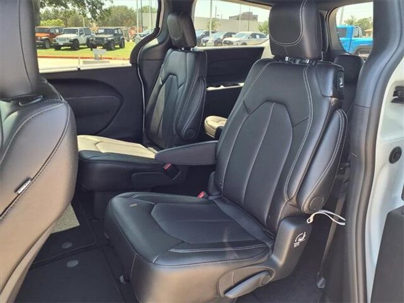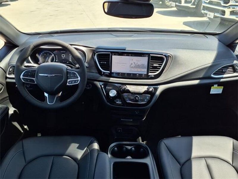 THIS VEHICLE COMES WITH THE FOLLOWING FEATURES AND OPTIONS : Quick Order Package 27L, 10.1'' Touchscreen Display, 17'' x 7.0'' Aluminum Wheels, 3.25 Axle Ratio, 3rd row seats: split-bench, 4-Wheel Disc Brakes, 4G LTE Wi-Fi Hot Spot, 6 Speakers, ABS brakes, Air Conditioning, Alloy wheels, AM/FM radio: SiriusXM, Apple CarPlay, Apple CarPlay/Android Auto, Auto-dimming Rear-View mirror, Automatic temperature control, Black Seats, Brake assist, Bumpers: body-color, Caprice Leatherette Bucket Seats, Compass, Connectivity - US/Canada, Delay-off headlights, Disassociated Touchscreen Display, Driver door bin, Driver vanity mirror, Driver's Seat Mounted Armrest, Dual front impact airbags, Dual front side impact airbags, Electronic Stability Control, Emergency communication system: Chrysler Connect, For Details, Visit DriveUconnect.com, Four wheel independent suspension, Front anti-roll bar, Front Bucket Seats, Front dual zone A/C, Front fog lights, Front reading lights, Fully automatic headlights, Garage door transmitter, Google Android Auto, GPS Antenna Input, Heated door mirrors, Heated front seats, Heated steering wheel, Illuminated entry, Integrated Active Noise Cancellation, Integrated Center Stack Radio, Knee airbag, Low tire pressure warning, Memory seat, Occupant sensing airbag, Outside temperature display, Overhead airbag, Overhead console, Panic alarm, ParkView Rear Back-Up Camera, Passenger door bin, Passenger seat mounted armrest, Passenger vanity mirror, Power door mirrors, Power driver seat, Power Liftgate, Power steering, Power windows, Radio data system, Radio: Uconnect 5 w/10.1'' Display, Rain sensing wipers, Rear air conditioning, Rear reading lights, Rear window defroster, Rear window wiper, Reclining 3rd row seat, Remote keyless entry, Security system, Speed control, Split folding rear seat, Spoiler, Steering wheel mounted audio controls, Tachometer, Telescoping steering wheel, Tilt steering wheel, Touring Suspension, Traction control, Trip computer, Turn signal indicator mirrors, USB Host Flip, Variably intermittent wipers, and VoltmeteR.