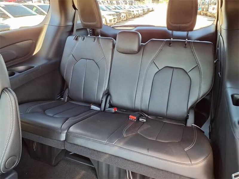 THIS VEHICLE COMES WITH THE FOLLOWING FEATURES AND OPTIONS : 100th Anniversary Buzz Model Package (100th Anniversary Buzz Model Graphic, Black Day Light Opening Moldings, Granite Crystal Exterior Accents, Granite Crystal Exterior Badging, Premium Fascia-Upper/Lower Grilles/Granite Crystal, Premium Rear Fascia Granite Crystal, and Wheels: 20'' x 7.5'' Luster Gray Aluminum), Quick Order Package 27L, Safety Sphere (360 Surround View Camera System and ParkSense Front/Rear Park Assist w/Stop), 10.1'' Touchscreen Display, 17'' x 7.0'' Aluminum Wheels, 3.25 Axle Ratio, 3rd row seats: split-bench, 4-Wheel Disc Brakes, 4G LTE Wi-Fi Hot Spot, 6 Speakers, ABS brakes, Air Conditioning, Alloy wheels, AM/FM radio: SiriusXM, Apple CarPlay, Apple CarPlay/Android Auto, Auto-dimming Rear-View mirror, Automatic temperature control, Black Seats, Brake assist, Bumpers: body-color, Caprice Leatherette Bucket Seats, Compass, Connectivity - US/Canada, Delay-off headlights, Disassociated Touchscreen Display, Driver door bin, Driver vanity mirror, Driver's Seat Mounted Armrest, Dual front impact airbags, Dual front side impact airbags, Electronic Stability Control, Emergency communication system: Chrysler Connect, For Details, Visit DriveUconnect.com, Four wheel independent suspension, Front anti-roll bar, Front Bucket Seats, Front dual zone A/C, Front fog lights, Front reading lights, Fully automatic headlights, Garage door transmitter, Google Android Auto, GPS Antenna Input, Heated door mirrors, Heated front seats, Heated steering wheel, Illuminated entry, Integrated Active Noise Cancellation, Integrated Center Stack Radio, Knee airbag, Low tire pressure warning, Memory seat, MyFlexCare Service Plan, Occupant sensing airbag, Outside temperature display, Overhead airbag, Overhead console, Panic alarm, ParkView Rear Back-Up Camera, Passenger door bin, Passenger seat mounted armrest, Passenger vanity mirror, Power door mirrors, Power driver seat, Power Liftgate, Power steering, Power windows, Radio data system, Radio: Uconnect 5 w/10.1'' Display, Rain sensing wipers, Rear air conditioning, Rear reading lights, Rear window defroster, Rear window wiper, Reclining 3rd row seat, Remote keyless entry, Security system, Speed control, Split folding rear seat, Spoiler, Steering wheel mounted audio controls, Tachometer, Telescoping steering wheel, Tilt steering wheel, Touring Suspension, Traction control, Trip computer, Turn signal indicator mirrors, USB Host Flip, Variably intermittent wipers, and VoltmeteR.