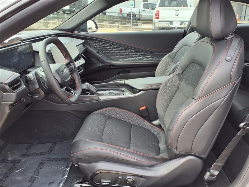 This Charger R/T Scat Pack vehicle comes nicely equipped with Blacktop Package (Dark Exterior Badging, Dual Rear Exhaust with Black Tips, and Wheels: 20'' x 10'' Dark Finish Aluminum), Quick Order Package 22P Scat Pack, AWD, Black Artificial Leather, 10 Speakers, 2-Way Manual Adjust Front Head Restraints, 2-Way Power Driver Lumbar Adjust, 4-Wheel Disc Brakes, 4G LTE Wi-Fi Hot Spot, 8-Way Power Driver Seat Adjust, ABS brakes, Active Noise Control System, Air Conditioning, Alloy wheels, AM/FM radio: SiriusXM w/360L, Apple CarPlay/Android Auto, Auto-dimming Rear-View mirror, Automatic temperature control, Black Seats, Brake assist, Bumpers: body-color, Compass, Connectivity - US/Canada, Delay-off headlights, Disassociated Touchscreen Display, Driver door bin, Driver vanity mirror, Dual front impact airbags, Dual front side impact airbags, Electronic Stability Control, Emergency communication system: Dodge Connect, Four wheel independent suspension, Front anti-roll bar, Front Bucket Seats, Front Center Armrest, Front dual zone A/C, Front License Plate Bracket, Front reading lights, Fully automatic headlights, Garage door transmitter, Heated door mirrors, Heated Exterior Mirrors, Heated Front Seats, Heated front seats, Heated steering wheel, Illuminated entry, Integrated Center Stack Radio, Knee airbag, Leather Shift Knob, Leatherette/Cloth Performance Seats, Low Back Bucket Seats, Low tire pressure warning, Occupant sensing airbag, Outside temperature display, Overhead airbag, Overhead console, Panic alarm, ParkView Rear Back-Up Camera, Passenger door bin, Passenger vanity mirror, Power Adjust Mirrors, Power door mirrors, Power driver seat, Power steering, Power windows, Radio data system, Radio: Uconnect 5 with 12.3'' Display, Rear anti-roll bar, Rear reading lights, Rear seat center armrest, Rear window defroster, Remote keyless entry, Security system, Speed control, Split folding rear seat, Spoiler, Sport steering wheel, Steering wheel mounted audio controls, Tachometer, Telescoping steering wheel, Tilt steering wheel, Traction control, Trip computer, Variably intermittent wipers, Wheels: 20'' x 10'' Aluminum, Wireless Apple CarPlay, and Wireless Google Android Auto.