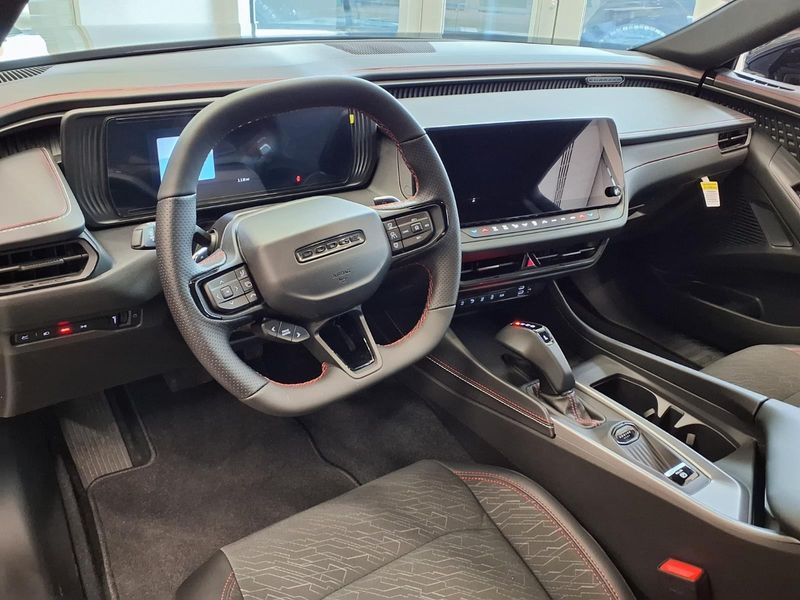 THIS VEHICLE COMES WITH THE FOLLOWING FEATURES AND OPTIONS : Blacktop Package (Dark Exterior Badging, Dual Rear Exhaust with Black Tips, and Wheels: 20'' x 10'' Dark Finish Aluminum), Quick Order Package 22P Scat Pack, 10 Speakers, 2-Way Manual Adjust Front Head Restraints, 2-Way Power Driver Lumbar Adjust, 4-Wheel Disc Brakes, 4G LTE Wi-Fi Hot Spot, 8-Way Power Driver Seat Adjust, ABS brakes, Active Noise Control System, Air Conditioning, Alloy wheels, AM/FM radio: SiriusXM w/360L, Apple CarPlay/Android Auto, Auto-dimming Rear-View mirror, Automatic temperature control, Black Seats, Brake assist, Bumpers: body-color, Compass, Connectivity - US/Canada, Delay-off headlights, Disassociated Touchscreen Display, Driver door bin, Driver vanity mirror, Dual front impact airbags, Dual front side impact airbags, Electronic Stability Control, Emergency communication system: Dodge Connect, Four wheel independent suspension, Front anti-roll bar, Front Bucket Seats, Front Center Armrest, Front dual zone A/C, Front License Plate Bracket, Front reading lights, Fully automatic headlights, Garage door transmitter, Heated door mirrors, Heated Exterior Mirrors, Heated Front Seats, Heated front seats, Heated steering wheel, Illuminated entry, Integrated Center Stack Radio, Knee airbag, Leather Shift Knob, Leatherette/Cloth Performance Seats, Low Back Bucket Seats, Low tire pressure warning, Occupant sensing airbag, Outside temperature display, Overhead airbag, Overhead console, Panic alarm, ParkView Rear Back-Up Camera, Passenger door bin, Passenger vanity mirror, Power Adjust Mirrors, Power door mirrors, Power driver seat, Power steering, Power windows, Radio data system, Radio: Uconnect 5 with 12.3'' Display, Rear anti-roll bar, Rear reading lights, Rear seat center armrest, Rear window defroster, Remote keyless entry, Security system, Speed control, Split folding rear seat, Spoiler, Sport steering wheel, Steering wheel mounted audio controls, Tachometer, Telescoping steering wheel, Tilt steering wheel, Traction control, Trip computer, Variably intermittent wipers, Wheels: 20'' x 10'' Aluminum, Wireless Apple CarPlay, and Wireless Google Android Auto.