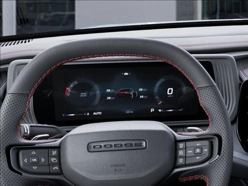 THIS VEHICLE COMES WITH THE FOLLOWING FEATURES AND OPTIONS : Quick Order Package 22P Scat Pack, Two Tone Paint Group, 10 Speakers, 2-Way Manual Adjust Front Head Restraints, 2-Way Power Driver Lumbar Adjust, 4-Wheel Disc Brakes, 4G LTE Wi-Fi Hot Spot, 8-Way Power Driver Seat Adjust, ABS brakes, Active Noise Control System, Air Conditioning, Alloy wheels, AM/FM radio: SiriusXM w/360L, Apple CarPlay/Android Auto, Auto-dimming Rear-View mirror, Automatic temperature control, Black Seats, Brake assist, Bumpers: body-color, Compass, Connectivity - US/Canada, Delay-off headlights, Disassociated Touchscreen Display, Driver door bin, Driver vanity mirror, Dual front impact airbags, Dual front side impact airbags, Electronic Stability Control, Emergency communication system: Dodge Connect, Four wheel independent suspension, Front anti-roll bar, Front Bucket Seats, Front Center Armrest, Front dual zone A/C, Front License Plate Bracket, Front reading lights, Fully automatic headlights, Garage door transmitter, Heated door mirrors, Heated Exterior Mirrors, Heated Front Seats, Heated front seats, Heated steering wheel, Illuminated entry, Integrated Center Stack Radio, Knee airbag, Leather Shift Knob, Leatherette/Cloth Performance Seats, Low Back Bucket Seats, Low tire pressure warning, Manufacturer's Statement of Origin, MyFlexCare Service Plan, Occupant sensing airbag, Outside temperature display, Overhead airbag, Overhead console, Panic alarm, ParkView Rear Back-Up Camera, Passenger door bin, Passenger vanity mirror, Power Adjust Mirrors, Power door mirrors, Power driver seat, Power steering, Power windows, Radio data system, Radio: Uconnect 5 with 12.3'' Display, Rear anti-roll bar, Rear reading lights, Rear seat center armrest, Rear window defroster, Remote keyless entry, Security system, Speed control, Split folding rear seat, Spoiler, Sport steering wheel, Steering wheel mounted audio controls, Tachometer, Telescoping steering wheel, Tilt steering wheel, Traction control, Trip computer, Variably intermittent wipers, Wheels: 20'' x 10'' Aluminum, Wireless Apple CarPlay, and Wireless Google Android Auto.