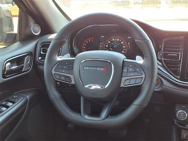 THIS VEHICLE COMES WITH THE FOLLOWING FEATURES AND OPTIONS : Blacktop Package (Black Roof Rails, Gloss Black Badges, Gloss Black Exterior Mirrors, GT Gloss Black Badging, Integrated Roof Rail Crossbars, Satin Black Dodge Tail Lamp Badge, and Wheels: 20'' x 8'' Black Noise Aluminum), Quick Order Package 2BD GT, 18'' x 8'' Painted Aluminum Wheels, 3.27 Rear Axle Ratio, 3rd row seats: split-bench, 4-Wheel Disc Brakes, 6 Speakers, ABS brakes, Air Conditioning, Alloy wheels, AM/FM radio: SiriusXM w/360L, Apple CarPlay/Android Auto, Auto-dimming Rear-View mirror, Auto-leveling suspension, Automatic temperature control, Brake assist, Bumpers: body-color, Cloth Bucket Seats w/Shift Insert, Compass, Delay-off headlights, Driver door bin, Driver vanity mirror, Dual front impact airbags, Dual front side impact airbags, Electronic Stability Control, Emergency communication system: Dodge Connect, Four wheel independent suspension, Front anti-roll bar, Front Bucket Seats, Front Center Armrest w/Storage, Front dual zone A/C, Front License Plate Bracket, Front reading lights, Fully automatic headlights, Garage door transmitter, Heated door mirrors, Heated front seats, Heated steering wheel, Illuminated entry, Knee airbag, Leather steering wheel, Low tire pressure warning, MyFlexCare Service Plan, Navigation System, Occupant sensing airbag, Outside temperature display, Overhead airbag, Overhead console, Panic alarm, ParkView Rear Back-Up Camera, Passenger door bin, Passenger vanity mirror, Power door mirrors, Power driver seat, Power Liftgate, Power steering, Power windows, Radio data system, Radio: Uconnect 5 Nav w/10.1'' Display, Rear air conditioning, Rear anti-roll bar, Rear Load Leveling Suspension, Rear reading lights, Rear seat center armrest, Rear window defroster, Rear window wiper, Remote keyless entry, Speed control, Speed-sensing steering, Speed-Sensitive Wipers, Split folding rear seat, Spoiler, Sport steering wheel, Steering wheel mounted audio controls, Tachometer, Telescoping steering wheel, Tilt steering wheel, Traction control, Trip computer, Variably intermittent wipers, and Voltmeter.