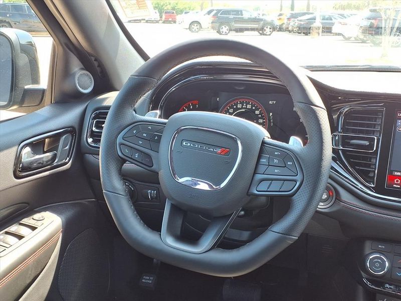 $7,198 off MSRP! This Durango GT vehicle comes nicely equipped with Blacktop Package (Black Roof Rails, Gloss Black Badges, Gloss Black Exterior Mirrors, GT Gloss Black Badging, Integrated Roof Rail Crossbars, Satin Black Dodge Tail Lamp Badge, and Wheels: 20'' x 8'' Black Noise Aluminum), Quick Order Package 2BD GT, 18'' x 8'' Painted Aluminum Wheels, 3.27 Rear Axle Ratio, 3rd row seats: split-bench, 4-Wheel Disc Brakes, 6 Speakers, ABS brakes, Air Conditioning, Alloy wheels, AM/FM radio: SiriusXM w/360L, Apple CarPlay/Android Auto, Auto-dimming Rear-View mirror, Auto-leveling suspension, Automatic temperature control, Brake assist, Bumpers: body-color, Cloth Bucket Seats w/Shift Insert, Compass, Delay-off headlights, Driver door bin, Driver vanity mirror, Dual front impact airbags, Dual front side impact airbags, Electronic Stability Control, Emergency communication system: Dodge Connect, Four wheel independent suspension, Front anti-roll bar, Front Bucket Seats, Front Center Armrest w/Storage, Front dual zone A/C, Front License Plate Bracket, Front reading lights, Fully automatic headlights, Garage door transmitter, Heated door mirrors, Heated front seats, Heated steering wheel, Illuminated entry, Knee airbag, Leather steering wheel, Low tire pressure warning, Navigation System, Occupant sensing airbag, Outside temperature display, Overhead airbag, Overhead console, Panic alarm, ParkView Rear Back-Up Camera, Passenger door bin, Passenger vanity mirror, Power door mirrors, Power driver seat, Power Liftgate, Power steering, Power windows, Radio data system, Radio: Uconnect 5 Nav w/10.1'' Display, Rear air conditioning, Rear anti-roll bar, Rear Load Leveling Suspension, Rear reading lights, Rear seat center armrest, Rear window defroster, Rear window wiper, Remote keyless entry, Speed control, Speed-sensing steering, Speed-Sensitive Wipers, Split folding rear seat, Spoiler, Sport steering wheel, Steering wheel mounted audio controls, Tachometer, Telescoping steering wheel, Tilt steering wheel, Traction control, Trip computer, Variably intermittent wipers, and Voltmeter.