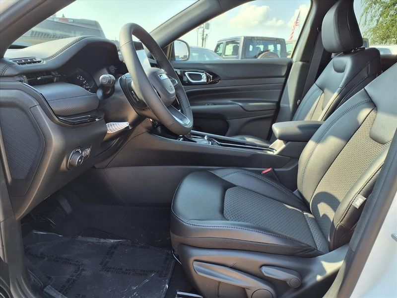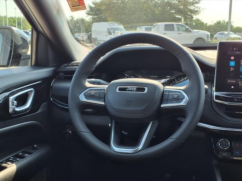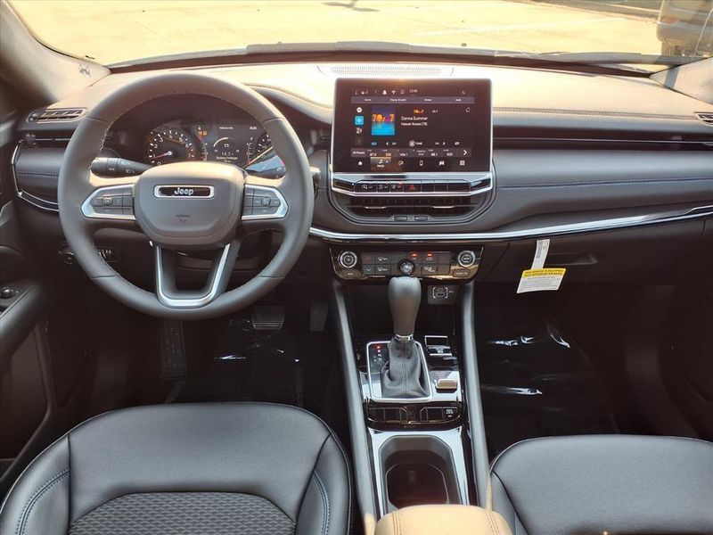 This Compass Latitude vehicle comes nicely equipped with 4WD, 17'' x 7'' Aluminum Wheels, 3.73 Final Drive Ratio, 4-Wheel Disc Brakes, 6 Speakers, ABS brakes, Air Conditioning, Alloy wheels, AM/FM radio: SiriusXM with 360L, Anti-whiplash front head restraints, Apple CarPlay/Android Auto, Auto High-beam Headlights, Automatic temperature control, Brake assist, Bumpers: body-colour, Compass, Delay-off headlights, Driver door bin, Driver vanity mirror, Dual front impact airbags, Dual front side impact airbags, Electronic Stability Control, Emergency communication system: SiriusXM Guardian, Four wheel independent suspension, Front anti-roll bar, Front Bucket Seats, Front fog lights, Front reading lights, Fully automatic headlights, Heated door mirrors, Heated front seats, Heated steering wheel, Illuminated entry, Knee airbag, Leather Shift Knob, Leather steering wheel, Low tire pressure warning, Occupant sensing airbag, Outside temperature display, Overhead airbag, Overhead console, Panic alarm, ParkView Rear Back-Up Camera, Passenger door bin, Passenger vanity mirror, Power door mirrors, Power steering, Power windows, Premium audio system: UConnect 5, Premium Cloth/Vinyl Bucket Seats, Radio: Uconnect 5 w/8.4'' Display, Rear anti-roll bar, Rear window defroster, Rear window wiper, Remote keyless entry, Security system, Speed control, Split folding rear seat, Spoiler, Steering wheel mounted audio controls, Tachometer, Telescoping steering wheel, Tilt steering wheel, Traction control, Variably intermittent wipers, and Wheels: 18'' x 7'' Gloss Black Painted Aluminum.