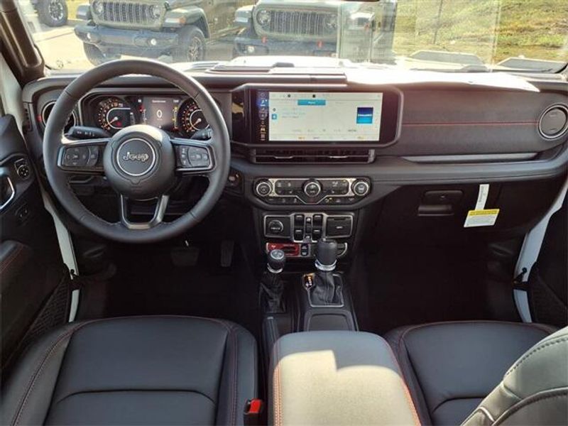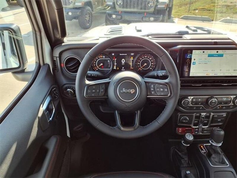 THIS VEHICLE COMES WITH THE FOLLOWING FEATURES AND OPTIONS : Quick Order Package 24Y Rubicon X (Alpine Premium Audio System, Auto High Beam Headlamp Control, Auto-Dimming Rear-View Mirror, Blind Spot and Cross Path Detection, Bluetooth Wireless Speaker, Body Color 3-Piece Hard Top, Body Color Rubicon Highline Flare, Freedom Panel Storage Bag, Full Length Floor Console Premium Armrest, Heated Front Seats, Heated Steering Wheel, Integrated Off-Road Camera, Integrated Voice Command with Bluetooth, Leather Wrapped Park Brake Handle, Leather Wrapped Shift Knob, MOPAR Hardtop Headliner, ParkSense Rear Park Assist System, Power 4-Way Driver Lumbar Adjust, Power 4-Way Passenger Lumbar Adjust, Power Adjust 8-Way Driver Seat, Power Adjust 8-Way Front Passenger Seat, Power Adjust Nappa Leather Seats, Premium Door Trim Panel, Radio: Uconnect 5 Navigation with 12.3'' Display, Rear Armrest with Cupholder Seat, Rear Sliding Window, Rear Window Defroster, Rubicon Hood Top Decal, Steel Front Bumper, Universal Garage Door Opener, and USB Host Flip), 110 Mph Vehicle Max Speed Calibration, 12.3'' Touchscreen Display, 4-Wheel Disc Brakes, 4.10 Rear Axle Ratio, 4G LTE Wi-Fi Hot Spot, 8 Speakers, ABS brakes, Air Conditioning, Alexa Built-in, Alloy wheels, AM/FM radio: SiriusXM with 360L, Apple CarPlay, Apple CarPlay/Android Auto, Automatic temperature control, Brake assist, Cloth Low-Back Bucket Seats, Compass, Connectivity - US/Canada, Delay-off headlights, Driver door bin, Driver vanity mirror, Dual front impact airbags, Dual front side impact airbags, Electronic Stability Control, Emergency communication system: Jeep Connect, Front anti-roll bar, Front Bucket Seats, Front Center Armrest w/Storage, Front dual zone A/C, Front fog lights, Front License Plate Bracket, Front reading lights, Fully automatic headlights, Google Android Auto, Heated door mirrors, Illuminated entry, Integrated roll-over protection, Low tire pressure warning, Manufacturer's Statement of Origin, MOPAR All-Weather Slush Mats, MOPAR Spray in Bedliner, MyFlexCare Service Plan, Occupant sensing airbag, Outside temperature display, Overhead airbag, Panic alarm, Passenger door bin, Passenger vanity mirror, Performance Suspension, Power door mirrors, Power steering, Power windows, Radio data system, Radio: Uconnect 5 with 12.3'' Display, Rear anti-roll bar, Rear reading lights, Remote keyless entry, Security system, Speed control, Split folding rear seat, Steering wheel mounted audio controls, Tachometer, Telescoping steering wheel, Tilt steering wheel, Traction control, Trip computer, Variably intermittent wipers, Voltmeter, Wheels: 17'' x 7.5'' Machined with Black Pockets, and Wheels: 17'' x 7.5'' Machined/Painted Black.