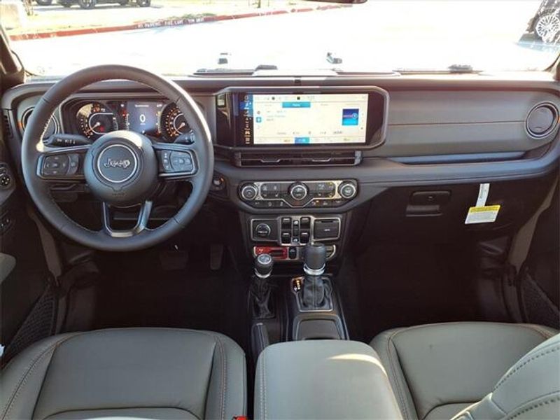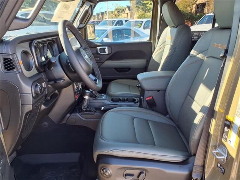 THIS VEHICLE COMES WITH THE FOLLOWING FEATURES AND OPTIONS : Quick Order Package 24A Mojave X (Alpine Premium Audio System, Auto High Beam Headlamp Control, Auto-Dimming Rear-View Mirror, Blind Spot and Cross Path Detection, Bluetooth Wireless Speaker, Body Color 3-Piece Hard Top, Body Color Rubicon Highline Flare, Freedom Panel Storage Bag, Full Length Floor Console Premium Armrest, Heated Front Seats, Heated Steering Wheel, Integrated Off-Road Camera, Integrated Voice Command with Bluetooth, Leather Trimmed Bucket Seats, Leather Wrapped Park Brake Handle, Leather Wrapped Shift Knob, Mojave Top Hood Decal, MOPAR Hardtop Headliner, ParkSense Rear Park Assist System, Power 4-Way Driver Lumbar Adjust, Power 4-Way Passenger Lumbar Adjust, Power Adjust 8-Way Driver Seat, Power Adjust 8-Way Front Passenger Seat, Premium Door Trim Panel, Radio: Uconnect 5 Navigation with 12.3'' Display, Rear Armrest with Cupholder Seat, Rear Sliding Window, Rear Window Defroster, Steel Front Bumper, Steel Rear Bumper, Universal Garage Door Opener, and USB Host Flip), 110 Mph Vehicle Max Speed Calibration, 12.3'' Touchscreen Display, 4-Wheel Disc Brakes, 4.10 Rear Axle Ratio, 4G LTE Wi-Fi Hot Spot, 8 Speakers, ABS brakes, Air Conditioning, Alexa Built-in, Alloy wheels, AM/FM radio: SiriusXM with 360L, Apple CarPlay, Apple CarPlay/Android Auto, Automatic temperature control, Brake assist, Compass, Connectivity - US/Canada, Delay-off headlights, Driver door bin, Driver vanity mirror, Dual front impact airbags, Dual front side impact airbags, Electronic Stability Control, Emergency communication system: Jeep Connect, Front anti-roll bar, Front Bucket Seats, Front Center Armrest w/Storage, Front dual zone A/C, Front fog lights, Front License Plate Bracket, Front reading lights, Fully automatic headlights, Google Android Auto, Heated door mirrors, Heavy Duty Suspension with Gas Shocks, Illuminated entry, Integrated roll-over protection, Low tire pressure warning, Manufacturer's Statement of Origin, MOPAR All-Weather Slush Mats, MyFlexCare Service Plan, Occupant sensing airbag, Outside temperature display, Overhead airbag, Panic alarm, Passenger door bin, Passenger vanity mirror, Power door mirrors, Power steering, Power windows, Premium Cloth Seats with Sport Bolsters, Radio data system, Radio: Uconnect 5 with 12.3'' Display, Rear anti-roll bar, Rear reading lights, Remote keyless entry, Security system, Speed control, Split folding rear seat, Steering wheel mounted audio controls, Tachometer, Telescoping steering wheel, Tilt steering wheel, Traction control, Trip computer, Variably intermittent wipers, Voltmeter, and Wheels: 17'' x 7.5'' Dark Gray Painted.