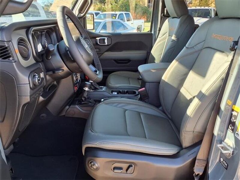 THIS VEHICLE COMES WITH THE FOLLOWING FEATURES AND OPTIONS : Quick Order Package 24A Mojave X (Alpine Premium Audio System, Auto High Beam Headlamp Control, Auto-Dimming Rear-View Mirror, Blind Spot and Cross Path Detection, Bluetooth Wireless Speaker, Body Color 3-Piece Hard Top, Body Color Rubicon Highline Flare, Freedom Panel Storage Bag, Full Length Floor Console Premium Armrest, Heated Front Seats, Heated Steering Wheel, Integrated Off-Road Camera, Integrated Voice Command with Bluetooth, Leather Trimmed Bucket Seats, Leather Wrapped Park Brake Handle, Leather Wrapped Shift Knob, Mojave Top Hood Decal, MOPAR Hardtop Headliner, ParkSense Rear Park Assist System, Power 4-Way Driver Lumbar Adjust, Power 4-Way Passenger Lumbar Adjust, Power Adjust 8-Way Driver Seat, Power Adjust 8-Way Front Passenger Seat, Premium Door Trim Panel, Radio: Uconnect 5 Navigation with 12.3'' Display, Rear Armrest with Cupholder Seat, Rear Sliding Window, Rear Window Defroster, Steel Front Bumper, Steel Rear Bumper, Universal Garage Door Opener, and USB Host Flip), 110 Mph Vehicle Max Speed Calibration, 12.3'' Touchscreen Display, 4-Wheel Disc Brakes, 4.10 Rear Axle Ratio, 4G LTE Wi-Fi Hot Spot, 8 Speakers, ABS brakes, Air Conditioning, Alexa Built-in, Alloy wheels, AM/FM radio: SiriusXM with 360L, Apple CarPlay, Apple CarPlay/Android Auto, Automatic temperature control, Brake assist, Compass, Connectivity - US/Canada, Delay-off headlights, Driver door bin, Driver vanity mirror, Dual front impact airbags, Dual front side impact airbags, Electronic Stability Control, Emergency communication system: Jeep Connect, Front anti-roll bar, Front Bucket Seats, Front Center Armrest w/Storage, Front dual zone A/C, Front fog lights, Front License Plate Bracket, Front reading lights, Fully automatic headlights, Google Android Auto, Heated door mirrors, Heavy Duty Suspension with Gas Shocks, Illuminated entry, Integrated roll-over protection, Low tire pressure warning, Manufacturer's Statement of Origin, MyFlexCare Service Plan, Occupant sensing airbag, Outside temperature display, Overhead airbag, Panic alarm, Passenger door bin, Passenger vanity mirror, Power door mirrors, Power steering, Power windows, Premium Cloth Seats with Sport Bolsters, Radio data system, Radio: Uconnect 5 with 12.3'' Display, Rear anti-roll bar, Rear reading lights, Remote keyless entry, Security system, Speed control, Split folding rear seat, Steering wheel mounted audio controls, Tachometer, Telescoping steering wheel, Tilt steering wheel, Traction control, Trip computer, Variably intermittent wipers, Voltmeter, and Wheels: 17'' x 7.5'' Dark Gray Painted.