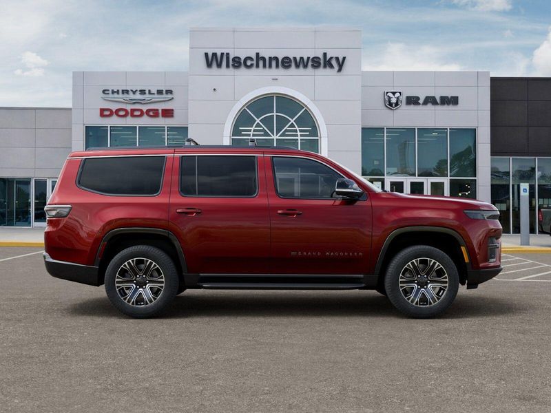 $6,753 off MSRP! This Grand Wagoneer Base vehicle comes nicely equipped with Premium Group I (3 Panel Sunroof, 3rd Row 60/40 Power Recline Seat, Auto Adjust in Reverse Exterior Mirrors, Auto Power Folding Exterior Mirrors, Auto Power Folding Mirrors, Auto-Dimming Exterior Driver Mirror, Cargo Cover, Exterior Mirrors Approach Lamps, Exterior Mirrors with Memory, Exterior Mirrors with Supplemental Signals, Heated Exterior Mirrors, Interior Rear Facing Camera, Luxury Front and Rear Floor Mats, P and P Park and Unpark Assist with Stop System, Reversible Carpet/Vinyl Cargo Mat, Side Distance Warning, and Surround View Camera System), Quick Order Package 29E Grand Wagoneer, 118 Mph Maximum Speed Calibration, 3.55 Rear Axle Ratio, 3rd row seats: bench, 4-Wheel Disc Brakes, 9 Speakers, ABS brakes, Air Conditioning, Alloy wheels, AM/FM radio: SiriusXM with 360L, Anti-whiplash front head restraints, Apple CarPlay/Android Auto, Audio memory, Auto High-beam Headlights, Auto-dimming door mirrors, Auto-dimming Rear-View mirror, Auto-leveling suspension, Automatic temperature control, Black Exterior Accents, Brake assist, Bumpers: body-color, Compass, Delay-off headlights, Driver door bin, Driver vanity mirror, Driver's Seat Mounted Armrest, Dual front impact airbags, Dual front side impact airbags, Electronic Stability Control, Emergency communication system: Jeep Connect, Exterior Parking Camera Rear, Four wheel independent suspension, Front anti-roll bar, Front Bucket Seats, Front Center Armrest w/Storage, Front dual zone A/C, Front fog lights, Front reading lights, Fully automatic headlights, Garage door transmitter, Heated door mirrors, Heated front seats, Heated steering wheel, Illuminated entry, Knee airbag, Low tire pressure warning, Memory seat, Navigation System, Normal Duty Suspension, Occupant sensing airbag, Outside temperature display, Overhead airbag, Overhead console, Panic alarm, Passenger door bin, Passenger seat mounted armrest, Passenger vanity mirror, Power door mirrors, Power driver seat, Power Liftgate, Power passenger seat, Power steering, Power windows, Radio data system, Radio: Uconnect 5 Nav with 12.0'' Display, Rain sensing wipers, Rear air conditioning, Rear anti-roll bar, Rear reading lights, Rear seat center armrest, Rear window defroster, Rear window wiper, Reclining 3rd row seat, Remote keyless entry, Security system, Speed control, Speed-sensing steering, Speed-Sensitive Wipers, Split folding rear seat, Steering wheel memory, Steering wheel mounted audio controls, Tachometer, Telescoping steering wheel, Tilt steering wheel, Traction control, Trip computer, Turn signal indicator mirrors, Variably intermittent wipers, Ventilated front seats, Voltmeter, and Wheels: 20'' x 9'' Machine Face Painted Aluminum.