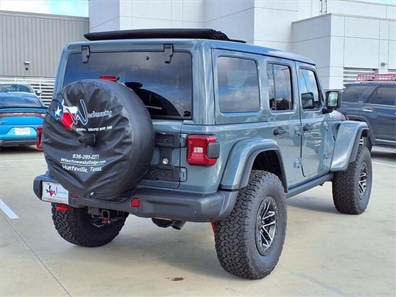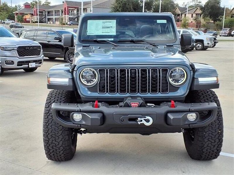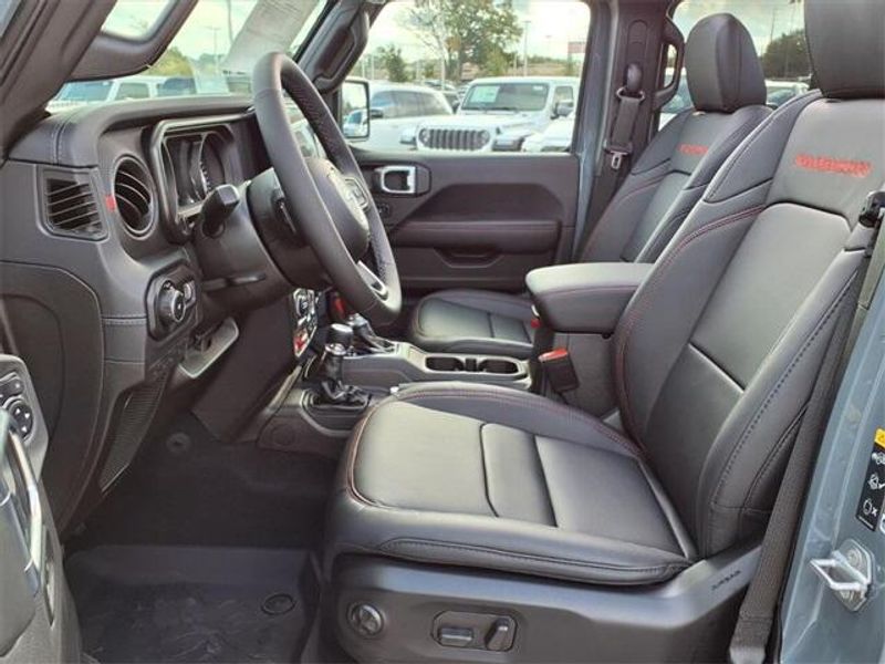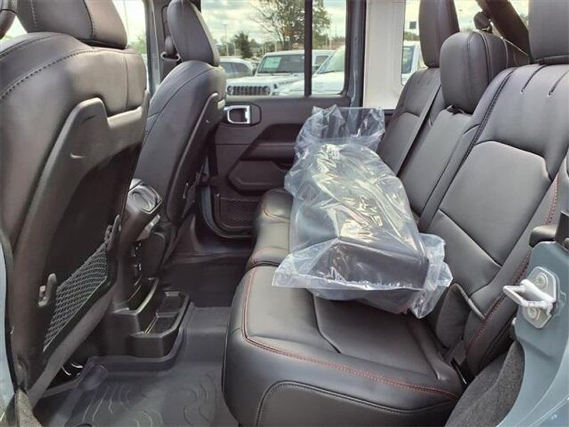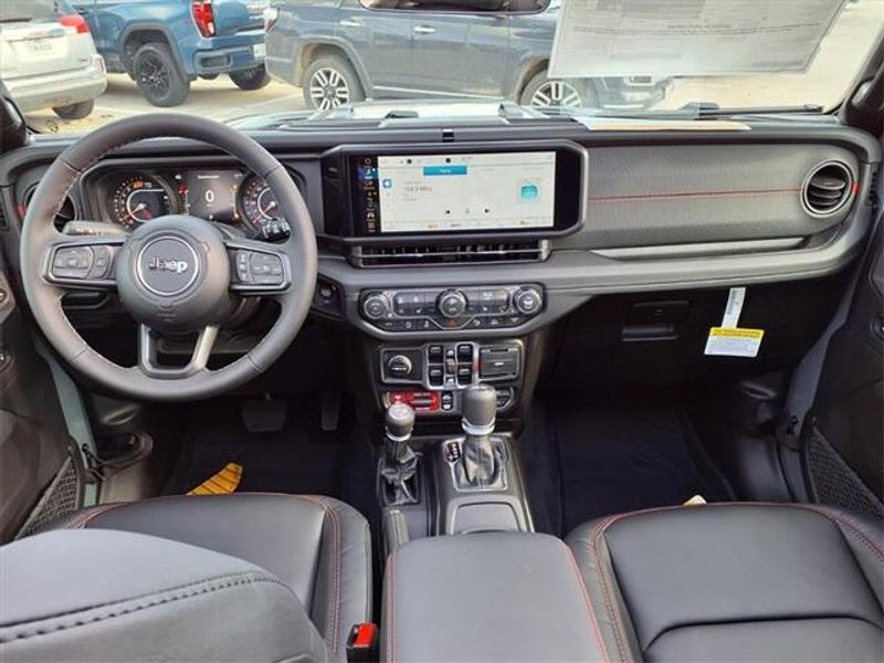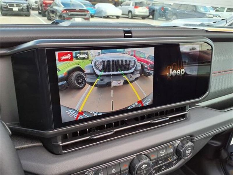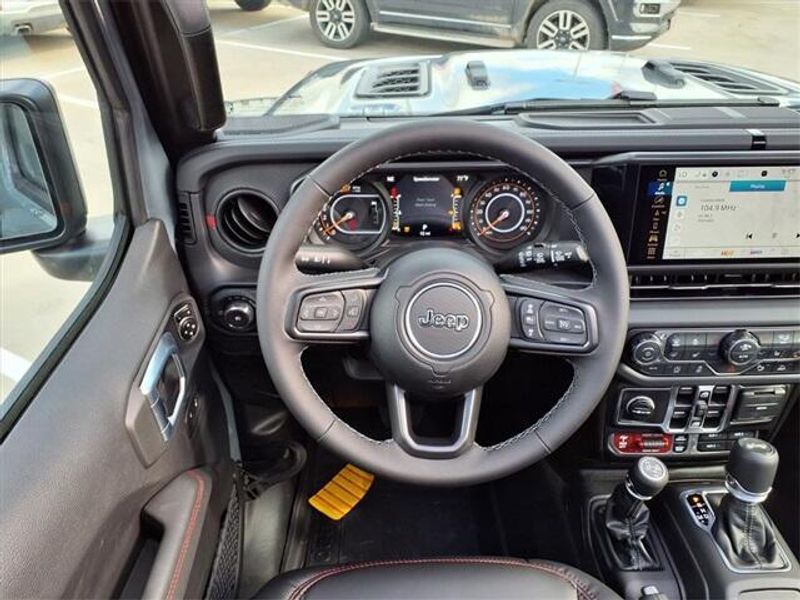 THIS VEHICLE COMES WITH THE FOLLOWING FEATURES AND OPTIONS : Quick Order Package 24Y Rubicon X (12.3'' Touchscreen Display, 4G LTE Wi-Fi Hot Spot, Acoustic Front Seat Area Carpet, Acoustic Laminated Front Door Glass, Alpine Premium Audio System, Apple CarPlay, Auto High Beam Headlamp Control, Auto-Dimming Rear-View Mirror, Blind Spot and Cross Path Detection, Body Color 3-Piece Hard Top, Body Color Rubicon Highline Flare, Connected Travel and Traffic Services, Connectivity - US/Canada, Freedom Panel Storage Bag, Google Android Auto, HD Radio, Heated Front Seats, Heated Steering Wheel, Integrated Off-Road Camera, Integrated Voice Command with Bluetooth, Leather Wrapped Park Brake Handle, Leather Wrapped Shift Knob, MOPAR Hardtop Headliner, Nappa Leather Seats, ParkSense Rear Park Assist System, Power 4-Way Driver Lumbar Adjust, Power 4-Way Passenger Lumbar Adjust, Power Adjust 8-Way Driver Seat, Power Adjust 8-Way Front Passenger Seat, Premium Door Trim Panel, Radio: Uconnect 5 Navigation with 12.3'' Display, Rear Window Defroster, Rear Window Wiper/Washer, SiriusXM with 360L, Steel Front Bumper, Steel Rear Bumper, and Universal Garage Door Opener), Trailer Tow and Auxiliary Switch Group (Auxiliary Switches and Class II Receiver Hitch), Trailer Tow Prep Package, 35'' Tire Suspension, 4-Wheel Disc Brakes, 8 Speakers, ABS brakes, Air Conditioning, Alloy wheels, AM/FM radio: SiriusXM with 360L, Apple CarPlay/Android Auto, Automatic temperature control, Aux Battery, Brake assist, Cloth Low-Back Bucket Seats, Compass, Delay-off headlights, Driver door bin, Driver vanity mirror, Dual front impact airbags, Dual front side impact airbags, Electronic Stability Control, Emergency communication system: Jeep Connect, For More Info, Call 800-643-2112, Front anti-roll bar, Front Bucket Seats, Front Center Armrest w/Storage, Front dual zone A/C, Front fog lights, Front License Plate Bracket, Front reading lights, Fully automatic headlights, Heated door mirrors, Illuminated entry, Integrated Center Stack Radio, Integrated roll-over protection, Low tire pressure warning, MOPAR All-Weather Floor Mats, MOPAR Hinge-Gate Reinforcement, Myflexcare Service Plan, Non-Lock Fuel Cap Without Discriminator, Occupant sensing airbag, Outside temperature display, Overhead airbag, Panic alarm, ParkView Rear Back-Up Camera, Passenger door bin, Passenger vanity mirror, Performance Suspension, Power door mirrors, Power steering, Power Top Quarter Window Storage Bag, Power windows, Radio data system, Radio: Uconnect 5 with 12.3'' Display, Rear anti-roll bar, Rear reading lights, Remote keyless entry, Removable Rear Quarter Windows, Security system, SiriusXM Radio Service, Sky 1-Touch Power Top, Speed control, Split folding rear seat, Steering wheel mounted audio controls, Stop-Start Dual Battery System, Tachometer, Telescoping steering wheel, Tilt steering wheel, Traction control, Trip computer, Variably intermittent wipers, Voltmeter, Warn Winch, Wheels: 17'' x 7.5'' Machined/Painted Black, and Wheels: 17'' x 8'' Machined with Black Pockets.