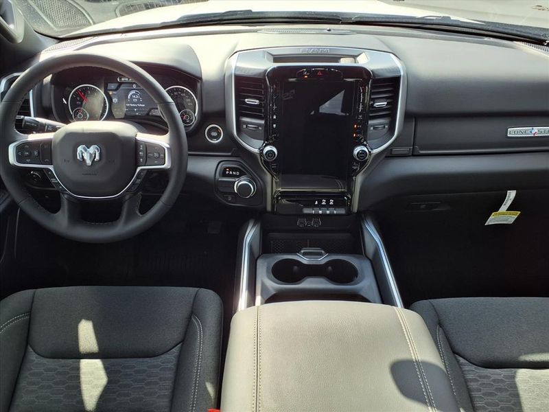 $9,198 off MSRP! This 1500 Big Horn/Lone Star vehicle comes nicely equipped with Big Horn Level 2 Equipment Group (115V Auxiliary Power Outlet, 115V Auxiliary Rear Power Outlet, 12'' Touchscreen Display, 2nd Row In Floor Storage Bins, 3 Rear Seat Head Restraints, 4 Way Front Headrests, 400W Inverter, 4G LTE Wi-Fi Hot Spot, 9 Amplified Speakers w/Subwoofer, Air Conditioning ATC w/Dual Zone Control, Apple CarPlay, Auto Power-Folding Mirrors, Auto-Dimming Exterior Driver Mirror, Auto-Dimming Rear-View Mirror, Black Exterior Mirrors, Black Premium Power Mirrors, Body Color Fender Flares, Bucket Seats, Center Console Parts Module, Cluster 7.0'' TFT Color Display, Configurable Drive Mode, Connected Travel & Traffic Services, Connectivity - US/Canada, Convex Wide-Angle Exterior Mirror Insert, Deluxe Cloth Bucket Seats, Disassociated Touchscreen Display, Exterior Mirrors Courtesy Lamps, Exterior Mirrors w/Heating Element, Exterior Mirrors w/Supplemental Signals, Front Seat Back Map Pockets, Full Length Floor Console, Global Telematics Box Module (TBM), Glove Box Lamp, Google Android Auto, GPS Antenna Input, GPS Navigation, HD Radio, Heated Front Seats, Heated Steering Wheel, Integrated Center Stack Radio, Integrated Voice Command w/Bluetooth, Leather Wrapped Steering Wheel, LED Dome Lamp w/On/Off Switch, LED Footwell Lighting, Manual Adjust 4-Way Front Passenger Seat, Media Hub w/2 Charge Only USBs, Overhead LED Lamps, Power 2-Way Driver Lumbar Adjust, Power Adjust 8-Way Driver Seat, Power Adjustable Pedals, Premium Overhead Console, Radio: Uconnect 5 Nav w/12.0'' Display, Rear 60/40 Folding Seat, Rear Center Armrest, Rear Power Sliding Window, Rear Window Defroster, Remote Tailgate Release, Secondary Active Grille Shutters, Security Alarm, SiriusXM Radio Service, SiriusXM w/360L, Steering Wheel Mounted Audio Controls, Sun Visors w/Illuminated Vanity Mirrors, Universal Garage Door Opener, USB Host Flip, Wheels: 20'' x 9'' Aluminum Chrome Clad (WRK), and Wireless Charging Pad), Night Edition (Accent Color Door Handles, Accent Color Premium Power Mirrors, Accent Color Tailgate Handle, Anti-Spin Differential Rear Axle, Black Exterior Truck Badging, Black Headlamp Bezels, Black Interior Accents, Black Painted Exterior Mirrors Caps, Black Tail Lamp Bezels, Body Color Front Bumper, Body Color Rear Bumper w/Step Pads, Dual Exhaust w/Black Tips, Grille Black Surround Black Mesh, RAM Grille Badge - Black, Rear Wheelhouse Liners, and Wheels: 20'' x 9.0'' Aluminum Painted Clad), Quick Order Package 21R Lone Star (Regional) (Lone Star Badge), 3.21 Rear Axle Ratio, 4-Wheel Disc Brakes, 48V Belt Starter Generator, 6 Speakers, ABS brakes, Air Conditioning, Alloy wheels, AM/FM radio, Apple CarPlay/Android Auto, Auto High-beam Headlights, Brake assist, Bumpers: chrome, Cloth Bucket Seats, Compass, Delay-off headlights, Driver door bin, Dual front impact airbags, Dual front side impact airbags, Electronic Stability Control, Exterior Parking Camera Rear, Front anti-roll bar, Front Bucket Seats, Front Center Armrest w/Storage, Front fog lights, Front License Plate Bracket, Front reading lights, Front wheel independent suspension, Fully automatic headlights, Heated door mirrors, Illuminated entry, Low tire pressure warning, Manual Adjust 4-Way Driver Seat, Manual Folding Exterior Mirrors, MOPAR Front & Rear Rubber Floor Mats, Occupant sensing airbag, Outside temperature display, Overhead airbag, Overhead console, Panic alarm, Passenger door bin, Passenger vanity mirror, Power door mirrors, Power steering, Power windows, Radio data system, Radio: Uconnect 5 W w/8.4'' Display, RAM Grille Badge - Chrome, Rear anti-roll bar, Rear step bumper, Remote keyless entry, Speed control, Supplier Part Tracking (J-1), Tachometer, Telescoping steering wheel, Tilt steering wheel, Traction control, Trip computer, Variably intermittent wipers, Voltmeter, and Wheels: 18'' x 8'' Cast-Aluminum Painted.