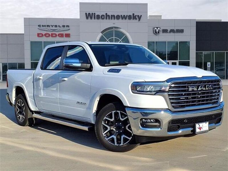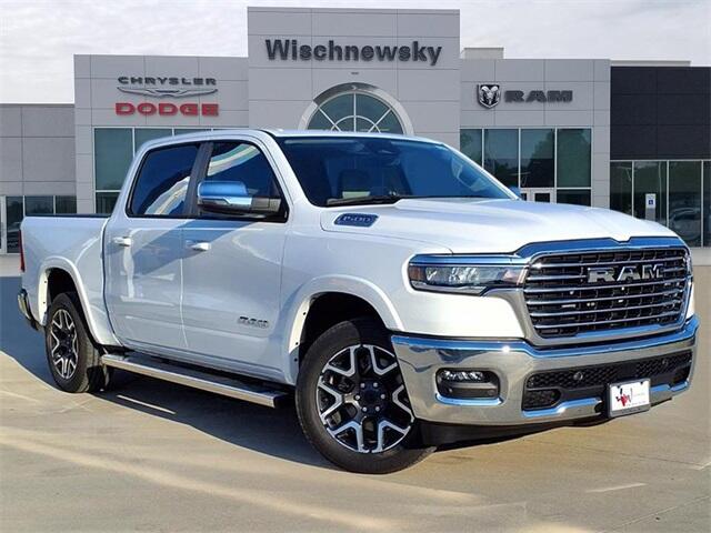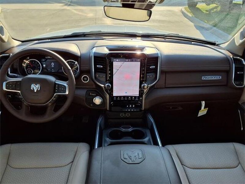 THIS VEHICLE COMES WITH THE FOLLOWING FEATURES AND OPTIONS : Laramie Level 1 Equipment Group (Rain Sensitive Windshield Wipers, Remote Tailgate Release, Secondary Active Grille Shutters, and Wireless Charging Pad), Quick Order Package 21H Laramie, 10 Speakers, 3.21 Rear Axle Ratio, 4-Wheel Disc Brakes, 4G LTE Wi-Fi Hot Spot, ABS brakes, Air Conditioning, Alloy wheels, AM/FM radio: SiriusXM with 360L, Apple CarPlay, Apple CarPlay/Android Auto, Audio memory, Auto High-beam Headlights, Auto Power-Folding Mirrors, Auto-dimming door mirrors, Auto-Dimming Exterior Driver Mirror, Auto-dimming Rear-View mirror, Automatic temperature control, Brake assist, Bumpers: chrome, Chrome Exterior Mirrors, Compass, Connected Travel & Traffic Services, Connectivity - US/Canada, Convex Wide-Angle Exterior Mirror Insert, Delay-off headlights, Disassociated Touchscreen Display, Driver door bin, Driver vanity mirror, Dual front impact airbags, Dual front side impact airbags, Electronic Stability Control, Exterior Mirrors Courtesy Lamps, Exterior Mirrors w/Heating Element, Exterior Mirrors w/Memory, Exterior Mirrors w/Supplemental Signals, Exterior Parking Camera Rear, Front anti-roll bar, Front Bucket Seats, Front Center Armrest w/Storage, Front dual zone A/C, Front fog lights, Front License Plate Bracket, Front reading lights, Front wheel independent suspension, Fully automatic headlights, Garage door transmitter, Global Telematics Box Module (TBM), Google Android Auto, GPS Antenna Input, GPS Navigation, HD Radio, Heated door mirrors, Heated front seats, Heated rear seats, Heated steering wheel, Illuminated entry, Integrated Center Stack Radio, Integrated Voice Command w/Bluetooth, Leather steering wheel, Leather Trimmed Bucket Seats, Low tire pressure warning, Memory seat, MOPAR Front & Rear Rubber Floor Mats, Navigation System, Occupant sensing airbag, Outside temperature display, Overhead airbag, Overhead console, Panic alarm, Passenger door bin, Passenger vanity mirror, Power door mirrors, Power driver seat, Power passenger seat, Power steering, Power windows, Radio data system, Radio: Uconnect 5 Nav w/12.0'' Display, RAM Grille Badge - Chrome, Rear anti-roll bar, Rear reading lights, Rear seat center armrest, Rear step bumper, Remote keyless entry, Security system, SiriusXM Radio Service, SiriusXM w/360L, Speed control, Split folding rear seat, Steering wheel mounted audio controls, Tachometer, Telescoping steering wheel, Tilt steering wheel, Traction control, Trip computer, Turn signal indicator mirrors, USB Host Flip, Variably intermittent wipers, Ventilated front seats, Voltmeter, and Wheels: 20'' x 9'' Premium Paint/Polish. Price includes: $3500 - 2026 National Retail Consumer Cash . Exp. 11/03/2025