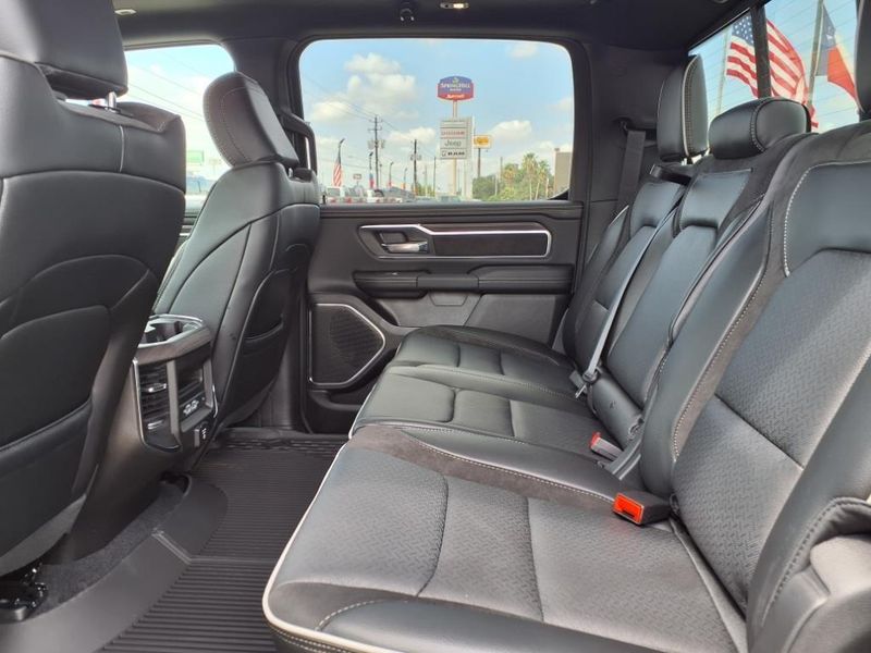 $11,298 off MSRP! This 1500 Laramie vehicle comes nicely equipped with Laramie Level 1 Equipment Group (Rain Sensitive Windshield Wipers, Remote Tailgate Release, Secondary Active Grille Shutters, and Wireless Charging Pad), Laramie Southwest Edition (Accent Color Premium Power Mirrors, Auto Power-Folding Mirrors, Auto-Dimming Exterior Driver Mirror, Black Painted Exterior Mirrors Caps, Body Color Front Bumper, Body Color Rear Bumper w/Step Pads, Convex Wide-Angle Exterior Mirror Insert, Dome Dual LED Reading Lamp, Dual-Pane Panoramic Sunroof, Exterior Mirrors Courtesy Lamps, Exterior Mirrors w/Heating Element, Exterior Mirrors w/Memory, Exterior Mirrors w/Supplemental Signals, Grille Surround 3 Body Color Tex 4 Chrome, LED Dome/Reading Lamp, MOPAR Lockable Console Storage, Power Deployable Running Boards, RAM Grille Badge - Chrome, Tow Hooks, and Trailer Brake Control), Quick Order Package 21H Laramie, 10 Speakers, 3.21 Rear Axle Ratio, 4-Wheel Disc Brakes, 4G LTE Wi-Fi Hot Spot, ABS brakes, Air Conditioning, Alloy wheels, AM/FM radio: SiriusXM with 360L, Anti-Spin Differential Rear Axle, Apple CarPlay, Apple CarPlay/Android Auto, Audio memory, Auto High-beam Headlights, Auto-dimming door mirrors, Auto-dimming Rear-View mirror, Automatic temperature control, Brake assist, Bumpers: chrome, Chrome Exterior Mirrors, Compass, Connected Travel & Traffic Services, Connectivity - US/Canada, Delay-off headlights, Disassociated Touchscreen Display, Driver door bin, Driver vanity mirror, Dual front impact airbags, Dual front side impact airbags, Electronic Stability Control, Exterior Parking Camera Rear, Front anti-roll bar, Front Bucket Seats, Front Center Armrest w/Storage, Front dual zone A/C, Front fog lights, Front License Plate Bracket, Front reading lights, Front wheel independent suspension, Fully automatic headlights, Garage door transmitter, Global Telematics Box Module (TBM), Google Android Auto, GPS Antenna Input, GPS Navigation, HD Radio, Heated door mirrors, Heated front seats, Heated rear seats, Heated steering wheel, Illuminated entry, Integrated Center Stack Radio, Integrated Voice Command w/Bluetooth, Leather steering wheel, Leather Trimmed Bucket Seats, Low tire pressure warning, Memory seat, MOPAR Front & Rear Rubber Floor Mats, Navigation System, Occupant sensing airbag, Outside temperature display, Overhead airbag, Overhead console, Panic alarm, Passenger door bin, Passenger vanity mirror, Power door mirrors, Power driver seat, Power passenger seat, Power steering, Power windows, Radio data system, Radio: Uconnect 5 Nav w/12.0'' Display, Rear anti-roll bar, Rear reading lights, Rear seat center armrest, Rear step bumper, Remote keyless entry, Security system, SiriusXM Radio Service, SiriusXM w/360L, Speed control, Split folding rear seat, Steering wheel mounted audio controls, Tachometer, Telescoping steering wheel, Tilt steering wheel, Traction control, Trip computer, Turn signal indicator mirrors, USB Host Flip, Variably intermittent wipers, Ventilated front seats, Voltmeter, and Wheels: 20'' x 9'' Premium Paint/Polish.