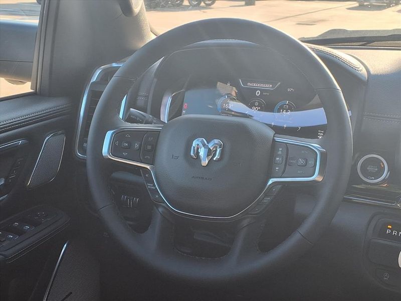 $11,298 off MSRP! This 1500 Laramie vehicle comes nicely equipped with Laramie Level 2 Equipment Group (14.4'' Touchscreen Display, 4G LTE Wi-Fi Hot Spot, Apple CarPlay, Cluster 12'' TFT Color Display, Connected Travel & Traffic Services, Connectivity - US/Canada, Disassociated Touchscreen Display, Dual Wireless Charging Pad, Front Passenger Interactive Display, Global Telematics Box Module (TBM), Google Android Auto, GPS Antenna Input, GPS Navigation, harman/kardon 19 Speaker Premium Sound, HD Radio, Integrated Center Stack Radio, Integrated Voice Command w/Bluetooth, Power Tailgate, Radio: Uconnect 5 Nav w/14.4'' Display, Rain Sensitive Windshield Wipers, Secondary Active Grille Shutters, SiriusXM Radio Service, SiriusXM w/360L, Smartphone As A Key Capable, and USB Host Flip), Night Edition (Accent Color Door Handles, Accent Color Premium Power Mirrors, Accent Color Tailgate Handle, Anti-Spin Differential Rear Axle, Auto Power-Folding Mirrors, Auto-Dimming Exterior Driver Mirror, Black Exterior Truck Badging, Black Headlamp Bezels, Black Interior Accents, Black Painted Exterior Mirrors Caps, Black Tail Lamp Bezels, Body Color Front Bumper, Body Color Rear Bumper w/Step Pads, Convex Wide-Angle Exterior Mirror Insert, Dual Exhaust w/Black Tips, Exterior Mirrors Approach Lamps, Exterior Mirrors Courtesy Lamps, Exterior Mirrors w/Heating Element, Exterior Mirrors w/Memory, Exterior Mirrors w/Supplemental Signals, Grille Surround 3 Black Texture 2 Black, Pirelli Brand Tires, Proximity Approach/Departure Lamps, RAM Grille Badge - Black, Sport Performance Hood, and Wheels: 22'' x 9'' Forged Aluminum), Quick Order Package 21H Laramie, 10 Speakers, 4-Wheel Disc Brakes, ABS brakes, Air Conditioning, Alloy wheels, AM/FM radio: SiriusXM with 360L, Apple CarPlay/Android Auto, Audio memory, Auto High-beam Headlights, Auto-dimming door mirrors, Auto-dimming Rear-View mirror, Automatic temperature control, Brake assist, Bumpers: chrome, Chrome Exterior Mirrors, Compass, Delay-off headlights, Dome Dual LED Reading Lamp, Driver door bin, Driver vanity mirror, Dual front impact airbags, Dual front side impact airbags, Dual-Pane Panoramic Sunroof, Electronic Stability Control, Exterior Parking Camera Rear, Front anti-roll bar, Front Bucket Seats, Front Center Armrest w/Storage, Front dual zone A/C, Front fog lights, Front License Plate Bracket, Front reading lights, Front wheel independent suspension, Fully automatic headlights, Garage door transmitter, Heated door mirrors, Heated front seats, Heated rear seats, Heated steering wheel, Illuminated entry, Leather steering wheel, Leather Trimmed Bucket Seats, LED Dome/Reading Lamp, Low tire pressure warning, Memory seat, MOPAR Front & Rear Rubber Floor Mats, Navigation System, Occupant sensing airbag, Outside temperature display, Overhead airbag, Overhead console, Panic alarm, Passenger door bin, Passenger vanity mirror, Power door mirrors, Power driver seat, Power passenger seat, Power steering, Power windows, Radio data system, Radio: Uconnect 5 Nav w/12.0'' Display, RAM Grille Badge - Chrome, Rear anti-roll bar, Rear reading lights, Rear seat center armrest, Rear step bumper, Remote keyless entry, Security system, Speed control, Split folding rear seat, Steering wheel mounted audio controls, Tachometer, Telescoping steering wheel, Tilt steering wheel, Traction control, Trip computer, Turn signal indicator mirrors, Variably intermittent wipers, Ventilated front seats, Voltmeter, and Wheels: 20'' x 9'' Premium Paint/Polish.