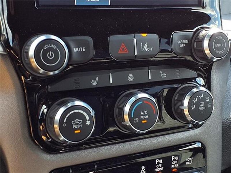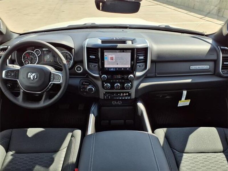 THIS VEHICLE COMES WITH THE FOLLOWING FEATURES AND OPTIONS : Big Horn Level 1 Equipment Group (115V Auxiliary Power Outlet, 2nd Row In Floor Storage Bins, 3 Rear Seat Head Restraints, 4 Way Front Headrests, 400W Inverter, Auto Power-Folding Mirrors, Auto-Dimming Exterior Driver Mirror, Auto-Dimming Rear-View Mirror, Black Exterior Mirrors, Black Premium Power Mirrors, Body Color Fender Flares, Bucket Seats, Center Console Parts Module, Convex Wide-Angle Exterior Mirror Insert, Deluxe Cloth Bucket Seats, Exterior Mirrors Courtesy Lamps, Exterior Mirrors w/Heating Element, Exterior Mirrors w/Supplemental Signals, Front Seat Back Map Pockets, Full Length Floor Console, Glove Box Lamp, Heated Front Seats, Heated Steering Wheel, Leather Wrapped Steering Wheel, Manual Adjust 4-Way Front Passenger Seat, Power 2-Way Driver Lumbar Adjust, Power Adjust 8-Way Driver Seat, Power Adjustable Pedals, Rear 60/40 Folding Seat, Rear Center Armrest, Rear Dome w/On/Off Switch Lamp, Rear Power Sliding Window, Rear Window Defroster, Secondary Active Grille Shutters, SiriusXM Radio Service, SiriusXM Satellite Radio, Steering Wheel Mounted Audio Controls, Sun Visors w/Illuminated Vanity Mirrors, and Universal Garage Door Opener), Quick Order Package 21Z Big Horn, 4-Wheel Disc Brakes, 48V Belt Starter Generator, 4G LTE Wi-Fi Hot Spot, 6 Speakers, ABS brakes, Air Conditioning, Alloy wheels, AM/FM radio, Anti-Spin Differential Rear Axle, Apple CarPlay, Apple CarPlay/Android Auto, Auto High-beam Headlights, Brake assist, Bumpers: chrome, Cloth Bucket Seats, Compass, Connectivity - US/Canada, Delay-off headlights, Driver door bin, Dual front impact airbags, Dual front side impact airbags, Electronic Stability Control, Front anti-roll bar, Front Bucket Seats, Front Center Armrest w/Storage, Front fog lights, Front License Plate Bracket, Front reading lights, Front wheel independent suspension, Fully automatic headlights, Global Telematics Box Module (TBM), Google Android Auto, GPS Antenna Input, Heated door mirrors, Illuminated entry, Integrated Center Stack Radio, Integrated Voice Command w/Bluetooth, Low tire pressure warning, Manual Adjust 4-Way Driver Seat, Manual Folding Exterior Mirrors, Manufacturer's Statement of Origin, MOPAR Front & Rear Rubber Floor Mats, Occupant sensing airbag, Outside temperature display, Overhead airbag, Overhead console, Panic alarm, ParkView Rear Back-Up Camera, Passenger door bin, Passenger vanity mirror, Power door mirrors, Power steering, Power windows, Radio data system, Radio: Uconnect 5 W w/8.4'' Display, RAM Grille Badge - Chrome, Rear anti-roll bar, Rear step bumper, Rear Underseat Compartment Storage, Rear Wheelhouse Liners, Remote keyless entry, Speed control, Supplier Part Tracking (J-1), Tachometer, Telescoping steering wheel, Tilt steering wheel, Traction control, Trailer Brake Control, Trip computer, USB Host Flip, Variably intermittent wipers, Voltmeter, Wheels: 18'' x 8'' Cast-Aluminum Painted, and Wheels: 20'' x 9'' Aluminum Chrome Clad (WRD)