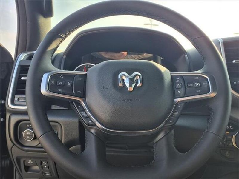 THIS VEHICLE COMES WITH THE FOLLOWING FEATURES AND OPTIONS : Bed Utility Group (Exterior 115V AC Outlet, MOPAR 4 Adjustable Cargo Tie-Down Hooks, MOPAR Spray in Bedliner, and Pick-Up Box Lighting), Big Horn Level 2 Equipment Group (115V Auxiliary Power Outlet, 115V Auxiliary Rear Power Outlet, 12'' Touchscreen Display, 2nd Row in Floor Storage Bins, 3 Rear Seat Head Restraints, 4 Way Front Headrests, 400W Inverter, 4G LTE Wi-Fi Hot Spot, 9 Amplified Speakers with Subwoofer, Air Conditioning ATC with Dual Zone Control, Apple CarPlay, Auto Power-Folding Mirrors, Auto-Dimming Exterior Driver Mirror, Auto-Dimming Rear-View Mirror, Black Exterior Mirrors, Black Premium Power Mirrors, Body Color Fender Flares, Bucket Seats, Center Console Parts Module, Cluster 7.0'' TFT Color Display, Configurable Drive Mode, Connected Travel and Traffic Services, Connectivity - US/Canada, Convex Wide-Angle Exterior Mirror Insert, Deluxe Cloth Bucket Seats, Disassociated Touchscreen Display, Exterior Mirrors Courtesy Lamps, Exterior Mirrors with Heating Element, Exterior Mirrors with Supplemental Signals, Front Seat Back Map Pockets, Full Length Floor Console, Global Telematics Box Module, Glove Box Lamp, Google Android Auto, GPS Antenna Input, GPS Navigation, HD Radio, Heated Front Seats, Heated Steering Wheel, Integrated Center Stack Radio, Integrated Voice Command with Bluetooth, Leather Wrapped Steering Wheel, LED Dome Lamp with on/Off Switch, LED Footwell Lighting, Manual Adjust 4-Way Front Passenger Seat, Media Hub with 2 Charge Only USBs, Overhead LED Lamps, Power 2-Way Driver Lumbar Adjust, Power Adjust 8-Way Driver Seat, Power Adjustable Pedals, Premium Overhead Console, Radio: Uconnect 5 Navigation with 12.0'' Display, Rear 60/40 Folding Seat, Rear Center Armrest, Rear Power Sliding Window, Rear Window Defroster, Remote Tailgate Release, Security Alarm, SiriusXM Radio Service, SiriusXM with 360L, Steering Wheel Mounted Audio Controls, Sun Visors with Illuminated Vanity Mirrors, Universal Garage Door Opener, and USB Host Flip), Night Edition (Accent Color Door Handles, Accent Color Premium Power Mirrors, Accent Color Tailgate Handle, Anti-Spin Differential Rear Axle, Black Exterior Truck Badging, Black Headlamp Bezels, Black Interior Accents, Black Painted Exterior Mirrors Caps, Black Tail Lamp Bezels, Body Color Front Bumper, Body Color Rear Bumper with Step Pads, Dual Exhaust with Black Tips, Grille Black Surround Black Mesh, RAM Grille Badge - Black, and Wheels: 20'' x 9.0'' Aluminum Painted Clad), Protection Group (Tow Hooks), Quick Order Package 27R Lone Star (Lone Star Badge), 33 Gallon Fuel Tank, 4-Wheel Disc Brakes, 48V Belt Starter Generator, 6 Speakers, ABS brakes, Air Conditioning, Alloy wheels, AM/FM radio, Apple CarPlay/Android Auto, Auto High-beam Headlights, Brake assist, Bumpers: chrome, Cloth Bucket Seats, Compass, Delay-off headlights, Driver door bin, Dual front impact airbags, Dual front side impact airbags, Electronic Stability Control, Front anti-roll bar, Front Bucket Seats, Front Center Armrest w/Storage, Front fog lights, Front License Plate Bracket, Front reading lights, Front wheel independent suspension, Fully automatic headlights, Heated door mirrors, Illuminated entry, Low tire pressure warning, Manual Adjust 4-Way Driver Seat, Manual Folding Exterior Mirrors, MOPAR Front and Rear Rubber Floor Mats, MyFlexCare Service Plan, Occupant sensing airbag, Outside temperature display, Overhead airbag, Overhead console, Panic alarm, ParkView Rear Back-Up Camera, Passenger door bin, Passenger vanity mirror, Power door mirrors, Power steering, Power windows, Radio data system, Radio: Uconnect 5 W with 8.4'' Display, RAM Grille Badge - Chrome, Rear anti-roll bar, Rear step bumper, Rear Wheelhouse Liners, Remote keyless e Price includes: $3500 - 2026 National Retail Consumer Cash . Exp. 1