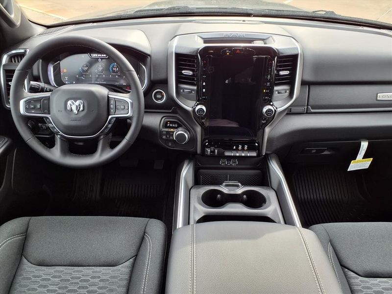 $9,813 off MSRP! This 1500 Big Horn/Lone Star vehicle comes nicely equipped with Bed Utility Group (Exterior 115V AC Outlet, MOPAR 4 Adjustable Cargo Tie-Down Hooks, MOPAR Spray in Bedliner, and Pick-Up Box Lighting), Big Horn Level 2 Equipment Group (115V Auxiliary Power Outlet, 115V Auxiliary Rear Power Outlet, 12'' Touchscreen Display, 2nd Row in Floor Storage Bins, 3 Rear Seat Head Restraints, 4 Way Front Headrests, 400W Inverter, 4G LTE Wi-Fi Hot Spot, 9 Amplified Speakers with Subwoofer, Air Conditioning ATC with Dual Zone Control, Apple CarPlay, Auto Power-Folding Mirrors, Auto-Dimming Exterior Driver Mirror, Auto-Dimming Rear-View Mirror, Black Exterior Mirrors, Black Premium Power Mirrors, Body Color Fender Flares, Bucket Seats, Center Console Parts Module, Cluster 7.0'' TFT Color Display, Configurable Drive Mode, Connected Travel and Traffic Services, Connectivity - US/Canada, Convex Wide-Angle Exterior Mirror Insert, Deluxe Cloth Bucket Seats, Disassociated Touchscreen Display, Exterior Mirrors Courtesy Lamps, Exterior Mirrors with Heating Element, Exterior Mirrors with Supplemental Signals, Front Seat Back Map Pockets, Full Length Floor Console, Global Telematics Box Module, Glove Box Lamp, Google Android Auto, GPS Antenna Input, GPS Navigation, HD Radio, Heated Front Seats, Heated Steering Wheel, Integrated Center Stack Radio, Integrated Voice Command with Bluetooth, Leather Wrapped Steering Wheel, LED Dome Lamp with on/Off Switch, LED Footwell Lighting, Manual Adjust 4-Way Front Passenger Seat, Media Hub with 2 Charge Only USBs, Overhead LED Lamps, Power 2-Way Driver Lumbar Adjust, Power Adjust 8-Way Driver Seat, Power Adjustable Pedals, Premium Overhead Console, Radio: Uconnect 5 Navigation with 12.0'' Display, Rear 60/40 Folding Seat, Rear Center Armrest, Rear Power Sliding Window, Rear Window Defroster, Remote Tailgate Release, Security Alarm, SiriusXM Radio Service, SiriusXM with 360L, Steering Wheel Mounted Audio Controls, Sun Visors with Illuminated Vanity Mirrors, Universal Garage Door Opener, and USB Host Flip), Night Edition (Accent Color Door Handles, Accent Color Premium Power Mirrors, Accent Color Tailgate Handle, Anti-Spin Differential Rear Axle, Black Exterior Truck Badging, Black Headlamp Bezels, Black Interior Accents, Black Painted Exterior Mirrors Caps, Black Tail Lamp Bezels, Body Color Front Bumper, Body Color Rear Bumper with Step Pads, Dual Exhaust with Black Tips, Grille Black Surround Black Mesh, RAM Grille Badge - Black, and Wheels: 20'' x 9.0'' Aluminum Painted Clad), Protection Group (Tow Hooks), Quick Order Package 27R Lone Star (Lone Star Badge), 33 Gallon Fuel Tank, 4-Wheel Disc Brakes, 48V Belt Starter Generator, 6 Speakers, ABS brakes, Air Conditioning, Alloy wheels, AM/FM radio, Apple CarPlay/Android Auto, Auto High-beam Headlights, Brake assist, Bumpers: chrome, Cloth Bucket Seats, Cluster 12'' TFT Color Display, Compass, Delay-off headlights, Driver door bin, Dual front impact airbags, Dual front side impact airbags, Electronic Stability Control, Front anti-roll bar, Front Bucket Seats, Front Center Armrest w/Storage, Front fog lights, Front License Plate Bracket, Front reading lights, Front wheel independent suspension, Fully automatic headlights, Heated door mirrors, Illuminated entry, Low tire pressure warning, Manual Adjust 4-Way Driver Seat, Manual Folding Exterior Mirrors, Mopar Black Tubular Side Steps, MOPAR Front and Rear Rubber Floor Mats, Occupant sensing airbag, Outside temperature display, Overhead airbag, Overhead console, Panic alarm, ParkView Rear Back-Up Camera, Passenger door bin, Passenger vanity mirror, Power door mirrors, Power steering, Power windows, Radio data system, Radio: Uconnect 5 W with 8.4'' Display, RAM Grille Badge - Chrome, Rear anti-roll bar, Rear step bumper, Rear Underseat Compartment Storage, Remote keyless entry, Speed control, Supplier Part Tracking (J-1), Tachometer, Price includes: $3500 - 2026 National Retail Consumer Cash . Exp. 12/01/