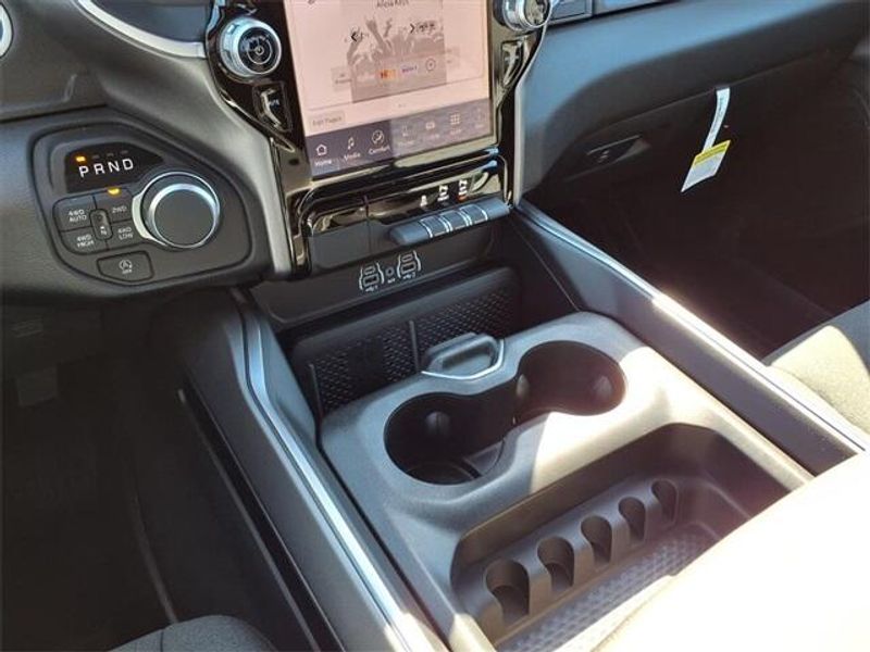 THIS VEHICLE COMES WITH THE FOLLOWING FEATURES AND OPTIONS : Bed Utility Group (Exterior 115V AC Outlet, MOPAR 4 Adjustable Cargo Tie-Down Hooks, MOPAR Spray in Bedliner, and Pick-Up Box Lighting), Big Horn Level 2 Equipment Group (115V Auxiliary Power Outlet, 115V Auxiliary Rear Power Outlet, 12'' Touchscreen Display, 2nd Row in Floor Storage Bins, 3 Rear Seat Head Restraints, 4 Way Front Headrests, 400W Inverter, 4G LTE Wi-Fi Hot Spot, 9 Amplified Speakers with Subwoofer, Air Conditioning ATC with Dual Zone Control, Apple CarPlay, Auto Power-Folding Mirrors, Auto-Dimming Exterior Driver Mirror, Auto-Dimming Rear-View Mirror, Black Exterior Mirrors, Black Premium Power Mirrors, Body Color Fender Flares, Bucket Seats, Center Console Parts Module, Cluster 7.0'' TFT Color Display, Configurable Drive Mode, Connected Travel and Traffic Services, Connectivity - US/Canada, Convex Wide-Angle Exterior Mirror Insert, Deluxe Cloth Bucket Seats, Disassociated Touchscreen Display, Exterior Mirrors Courtesy Lamps, Exterior Mirrors with Heating Element, Exterior Mirrors with Supplemental Signals, Front Seat Back Map Pockets, Full Length Floor Console, Global Telematics Box Module, Glove Box Lamp, Google Android Auto, GPS Antenna Input, GPS Navigation, HD Radio, Heated Front Seats, Heated Steering Wheel, Integrated Center Stack Radio, Integrated Voice Command with Bluetooth, Leather Wrapped Steering Wheel, LED Dome Lamp with on/Off Switch, LED Footwell Lighting, Manual Adjust 4-Way Front Passenger Seat, Media Hub with 2 Charge Only USBs, Overhead LED Lamps, Power 2-Way Driver Lumbar Adjust, Power Adjust 8-Way Driver Seat, Power Adjustable Pedals, Premium Overhead Console, Radio: Uconnect 5 Navigation with 12.0'' Display, Rear 60/40 Folding Seat, Rear Center Armrest, Rear Power Sliding Window, Rear Window Defroster, Remote Tailgate Release, Security Alarm, SiriusXM Radio Service, SiriusXM with 360L, Steering Wheel Mounted Audio Controls, Sun Visors with Illuminated Vanity Mirrors, Universal Garage Door Opener, and USB Host Flip), Night Edition (Accent Color Door Handles, Accent Color Premium Power Mirrors, Accent Color Tailgate Handle, Anti-Spin Differential Rear Axle, Black Exterior Truck Badging, Black Headlamp Bezels, Black Interior Accents, Black Painted Exterior Mirrors Caps, Black Tail Lamp Bezels, Body Color Front Bumper, Body Color Rear Bumper with Step Pads, Dual Exhaust with Black Tips, Grille Black Surround Black Mesh, RAM Grille Badge - Black, and Wheels: 20'' x 9.0'' Aluminum Painted Clad), Protection Group (Tow Hooks), Quick Order Package 27R Lone Star (Lone Star Badge), 33 Gallon Fuel Tank, 4-Wheel Disc Brakes, 48V Belt Starter Generator, 6 Speakers, ABS brakes, Air Conditioning, Alloy wheels, AM/FM radio, Apple CarPlay/Android Auto, Auto High-beam Headlights, Brake assist, Bumpers: chrome, Cloth Bucket Seats, Compass, Delay-off headlights, Driver door bin, Dual front impact airbags, Dual front side impact airbags, Electronic Stability Control, Front anti-roll bar, Front Bucket Seats, Front Center Armrest w/Storage, Front fog lights, Front License Plate Bracket, Front reading lights, Front wheel independent suspension, Fully automatic headlights, Heated door mirrors, Illuminated entry, Low tire pressure warning, Manual Adjust 4-Way Driver Seat, Manual Folding Exterior Mirrors, Manufacturer's Statement of Origin, MOPAR Front and Rear Rubber Floor Mats, MyFlexCare Service Plan, Occupant sensing airbag, Outside temperature display, Overhead airbag, Overhead console, Panic alarm, ParkView Rear Back-Up Camera, Passenger door bin, Passenger vanity mirror, Power door mirrors, Power steering, Power windows, Radio data system, Radio: Uconnect 5 W with 8.4'' Display, RAM Grille Badge - Chrome, Rear anti-roll bar, Rear step bumper, Remo Price includes: $3500 - 2026 National Retail Consumer Cash . Exp. 1