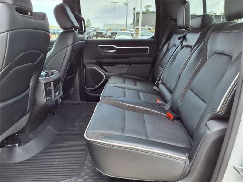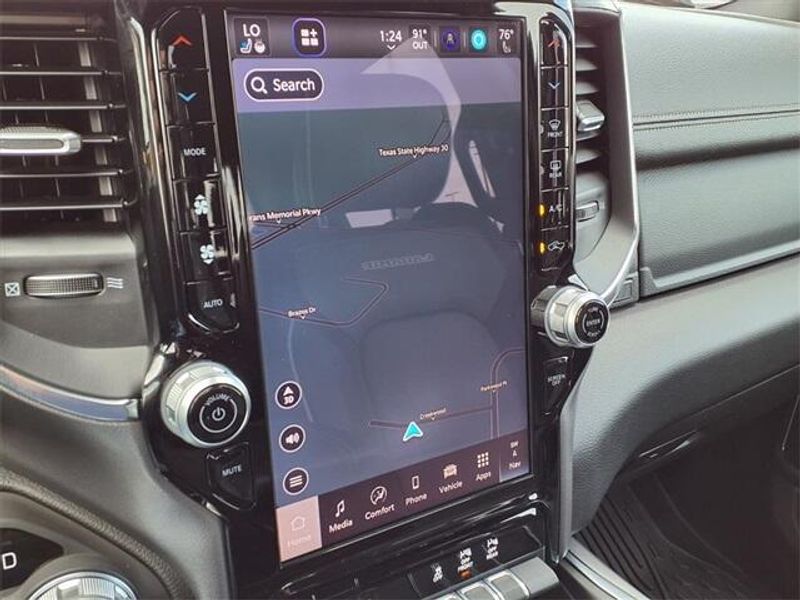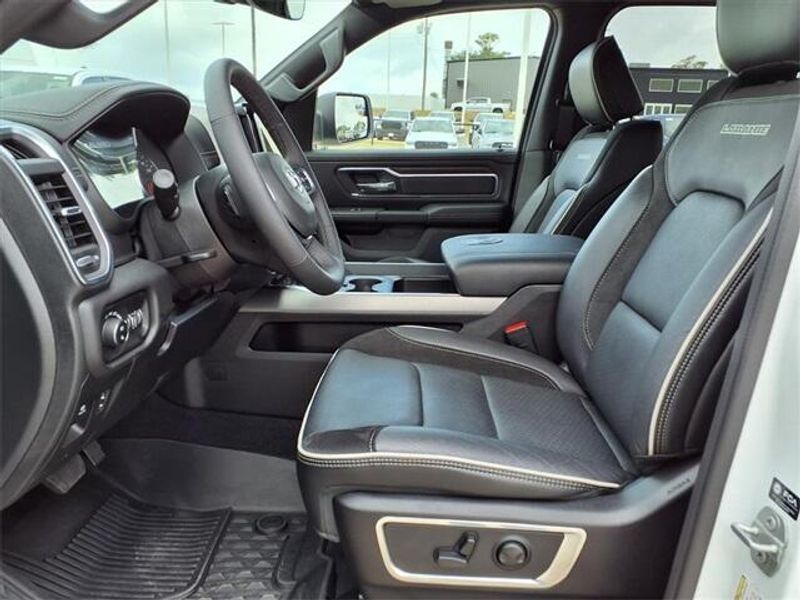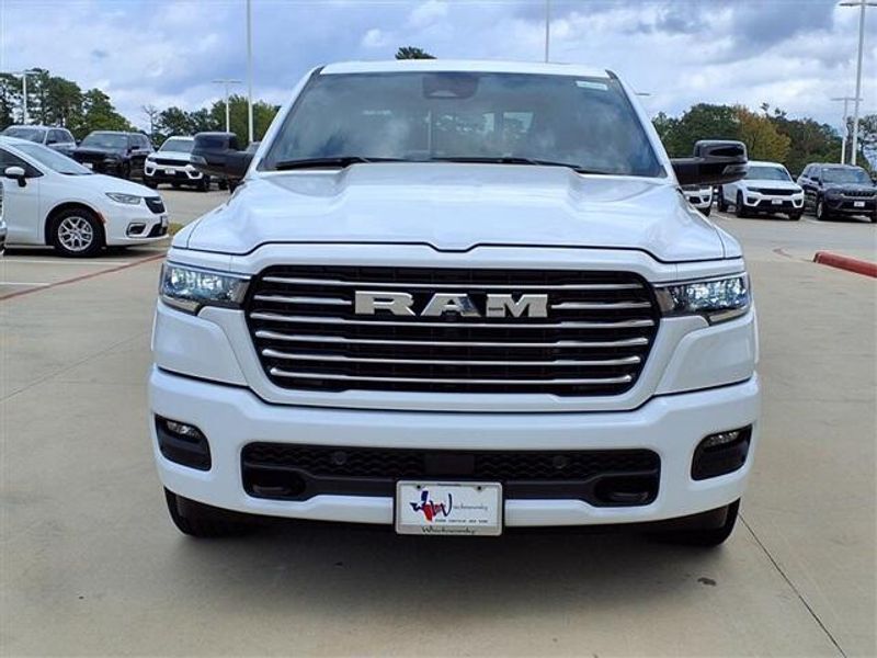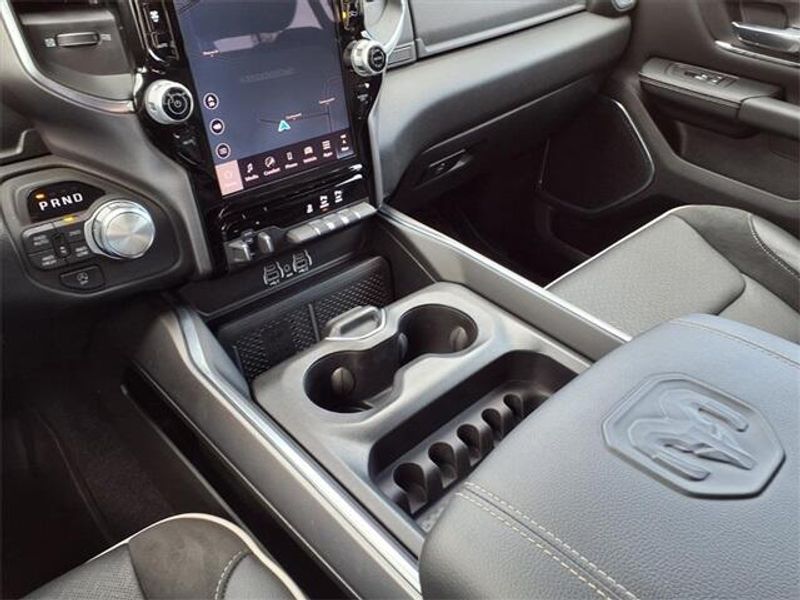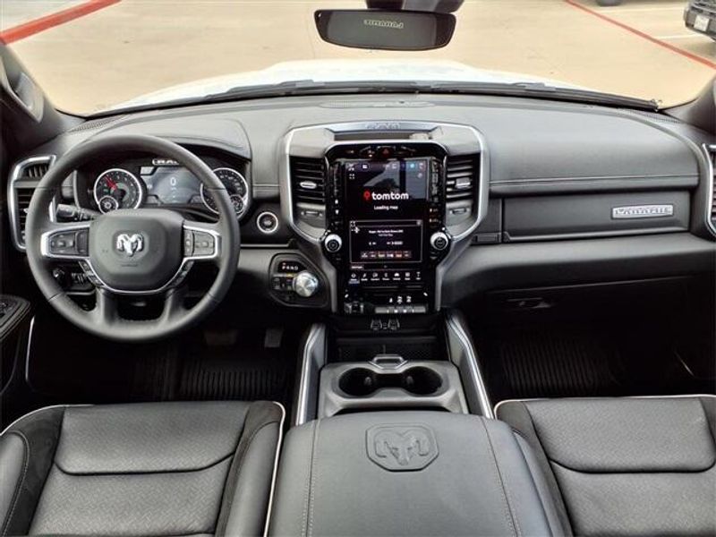 THIS VEHICLE COMES WITH THE FOLLOWING FEATURES AND OPTIONS : Laramie Level 1 Equipment Group (Rain Sensitive Windshield Wipers and Remote Tailgate Release), Laramie Southwest Edition (Accent Color Premium Power Mirrors, Auto Power-Folding Mirrors, Auto-Dimming Exterior Driver Mirror, Black Painted Exterior Mirrors Caps, Body Color Front Bumper, Body Color Rear Bumper with Step Pads, Convex Wide-Angle Exterior Mirror Insert, Dome Dual LED Reading Lamp, Dual-Pane Panoramic Sunroof, Exterior Mirrors Courtesy Lamps, Exterior Mirrors with Heating Element, Exterior Mirrors with Memory, Exterior Mirrors with Supplemental Signals, Grille Surround 3 Body Color Tex 4 Chrome, LED Dome/Reading Lamp, MOPAR Lockable Console Storage, Power Deployable Running Boards, RAM Grille Badge - Chrome, Tow Hooks, and Trailer Brake Control), Quick Order Package 21H Laramie, 10 Speakers, 3.55 Rear Axle Ratio, 4-Wheel Disc Brakes, 4G LTE Wi-Fi Hot Spot, ABS brakes, Active Noise Control System, Air Conditioning, Alloy wheels, AM/FM radio: SiriusXM with 360L, Anti-Spin Differential Rear Axle, Apple CarPlay/Android Auto, Audio memory, Auto High-beam Headlights, Auto-dimming door mirrors, Auto-dimming Rear-View mirror, Automatic temperature control, Brake assist, Bumpers: chrome, Chrome Exterior Mirrors, Compass, Connected Travel and Traffic Services, Connectivity - US/Canada, Delay-off headlights, Driver door bin, Driver vanity mirror, Dual front impact airbags, Dual front side impact airbags, Electronic Stability Control, Front anti-roll bar, Front Bucket Seats, Front Center Armrest w/Storage, Front dual zone A/C, Front fog lights, Front License Plate Bracket, Front reading lights, Front wheel independent suspension, Fully automatic headlights, Garage door transmitter, GPS Navigation, Heated door mirrors, Heated front seats, Heated rear seats, Heated steering wheel, Illuminated entry, Integrated Center Stack Radio, Integrated Voice Command with Bluetooth, Leather steering wheel, Leather Trimmed Bucket Seats, Low tire pressure warning, Memory seat, MOPAR Front and Rear Rubber Floor Mats, Navigation System, Occupant sensing airbag, Off-Road Information Pages, Outside temperature display, Overhead airbag, Overhead console, Panic alarm, ParkView Rear Back-Up Camera, Passenger door bin, Passenger vanity mirror, Power door mirrors, Power driver seat, Power passenger seat, Power steering, Power windows, Radio data system, Radio: Uconnect 5 Navigation with 12.0'' Display, Rear anti-roll bar, Rear reading lights, Rear seat center armrest, Rear step bumper, Remote keyless entry, Security system, SiriusXM Radio Service, SiriusXM with 360L, Speed control, Split folding rear seat, Steering wheel mounted audio controls, Tachometer, Telescoping steering wheel, Tilt steering wheel, Traction control, Trip computer, Turn signal indicator mirrors, USB Host Flip, Variably intermittent wipers, Ventilated front seats, Voltmeter, and Wheels: 20'' x 9'' Premium Paint/Polish. Price includes: $3500 - 2026 National Retail Consumer Cash . Exp. 12/01/2025