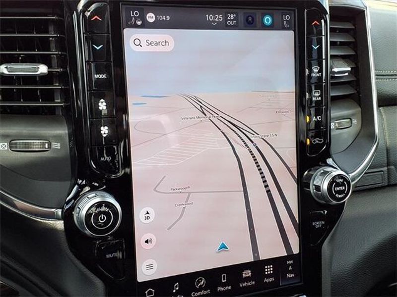 THIS VEHICLE COMES WITH THE FOLLOWING FEATURES AND OPTIONS : Laramie Level 1 Equipment Group (Rain Sensitive Windshield Wipers and Remote Tailgate Release), Laramie Southwest Edition (Accent Color Premium Power Mirrors, Auto Power-Folding Mirrors, Auto-Dimming Exterior Driver Mirror, Black Painted Exterior Mirrors Caps, Body Color Front Bumper, Body Color Rear Bumper with Step Pads, Convex Wide-Angle Exterior Mirror Insert, Dome Dual LED Reading Lamp, Dual-Pane Panoramic Sunroof, Exterior Mirrors Courtesy Lamps, Exterior Mirrors with Heating Element, Exterior Mirrors with Memory, Exterior Mirrors with Supplemental Signals, Grille Surround 3 Body Color Tex 4 Chrome, LED Dome/Reading Lamp, MOPAR Lockable Console Storage, Power Deployable Running Boards, RAM Grille Badge - Chrome, Tow Hooks, and Trailer Brake Control), Quick Order Package 27H Laramie, 10 Speakers, 4-Wheel Disc Brakes, 4G LTE Wi-Fi Hot Spot, ABS brakes, Active Noise Control System, Air Conditioning, Alloy wheels, AM/FM radio: SiriusXM with 360L, Anti-Spin Differential Rear Axle, Apple CarPlay/Android Auto, Audio memory, Auto High-beam Headlights, Auto-dimming door mirrors, Auto-dimming Rear-View mirror, Automatic temperature control, Brake assist, Bumpers: chrome, Chrome Exterior Mirrors, Compass, Connected Travel and Traffic Services, Connectivity - US/Canada, Delay-off headlights, Driver door bin, Driver vanity mirror, Dual front impact airbags, Dual front side impact airbags, Electronic Stability Control, Front anti-roll bar, Front Bucket Seats, Front Center Armrest w/Storage, Front dual zone A/C, Front fog lights, Front License Plate Bracket, Front reading lights, Front wheel independent suspension, Fully automatic headlights, Garage door transmitter, GPS Navigation, Heated door mirrors, Heated front seats, Heated rear seats, Heated steering wheel, Illuminated entry, Integrated Center Stack Radio, Integrated Voice Command with Bluetooth, Leather steering wheel, Leather Trimmed Bucket Seats, Low tire pressure warning, Manufacturer's Statement of Origin, Memory seat, MOPAR Front and Rear Rubber Floor Mats, MyFlexCare Service Plan, Navigation System, Occupant sensing airbag, Off-Road Information Pages, Outside temperature display, Overhead airbag, Overhead console, Panic alarm, ParkView Rear Back-Up Camera, Passenger door bin, Passenger vanity mirror, Power door mirrors, Power driver seat, Power passenger seat, Power steering, Power windows, Radio data system, Radio: Uconnect 5 Navigation with 12.0'' Display, Rear anti-roll bar, Rear reading lights, Rear seat center armrest, Rear step bumper, Remote keyless entry, Security system, SiriusXM Radio Service, SiriusXM with 360L, Speed control, Split folding rear seat, Steering wheel mounted audio controls, Tachometer, Telescoping steering wheel, Tilt steering wheel, Traction control, Trip computer, Turn signal indicator mirrors, USB Host Flip, Variably intermittent wipers, Ventilated front seats, Voltmeter, and Wheels: 20'' x 9'' Premium Paint/Polish. Price includes: $3500 - 2026 National Retail Consumer Cash . Exp. 12/01/2025