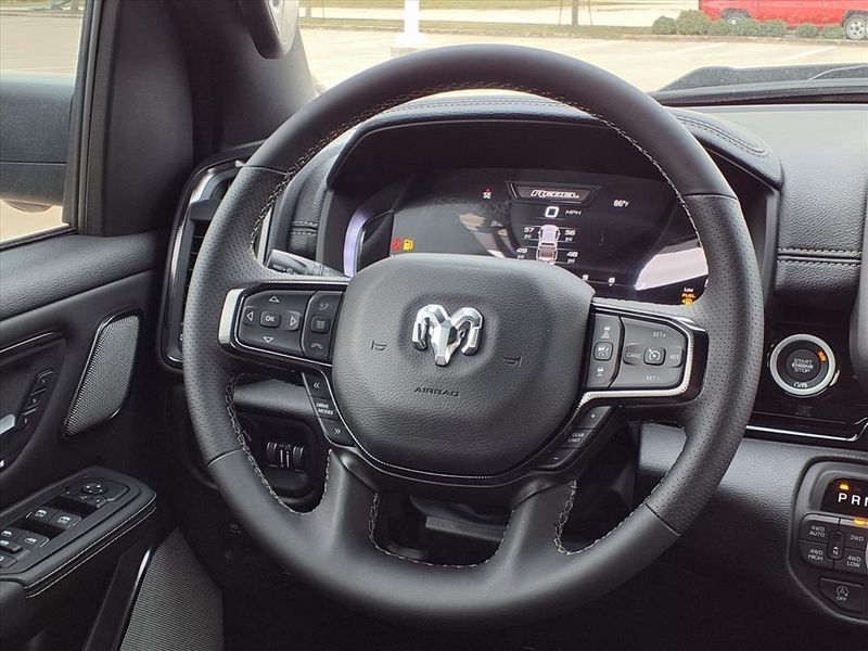 $8,798 off MSRP! This 1500 Rebel vehicle comes nicely equipped with Bed Utility Group (Exterior 115V AC Outlet, MOPAR 4 Adjustable Cargo Tie-Down Hooks, and MOPAR Spray in Bedliner), Quick Order Package 21W Rebel, Rebel Level 2 Equipment Group (115V Auxiliary Rear Power Outlet, 14.4'' Touchscreen Display, 2-Door Passive Entry, Front Door Locks, 4G LTE Wi-Fi Hot Spot, Accent Color Door Handles, Accent Color Premium Power Mirrors, Accent Color Tailgate Handle, Apple CarPlay, Auto Power-Folding Mirrors, Auto-Dimming Exterior Driver Mirror, Black Painted Exterior Mirrors Caps, Connected Travel and Traffic Services, Connectivity - US/Canada, Convex Wide-Angle Exterior Mirror Insert, Disassociated Touchscreen Display, Driver Seat Memory, Dual Wireless Charging Pad, Exterior Mirrors Approach Lamps, Exterior Mirrors Courtesy Lamps, Exterior Mirrors with Heating Element, Exterior Mirrors with Memory, Exterior Mirrors with Supplemental Signals, Front Passenger Interactive Display, Global Telematics Box Module, Google Android Auto, GPS Antenna Input, GPS Navigation, Harman/Kardon 19 Speaker Premium Sound, HD Radio, Heated Second Row Seats, Integrated Center Stack Radio, Integrated Voice Command with Bluetooth, Media Hub with 2 Charge Only USBs, Off-Road Information Pages, Power 2-Way Passenger Lumbar Adjust, Power Adjust 8-Way Front Passenger Seat, Power Adjustable Pedals with Memory, Power Tailgate, Proximity Approach/Departure Lamps, Radio: Uconnect 5 Nav with 14.4'' Display, Radio/Driver Seat/Mirrors/Pedals Memory, Rain Sensitive Windshield Wipers, Rear Window Defroster, Security Alarm, SiriusXM Radio Service, SiriusXM with 360L, Smartphone as a Key Capable, and USB Host Flip), 10 Speakers, 3.92 Rear Axle Ratio, 33 Gallon Fuel Tank, 4 Way Front Headrests, 4-Wheel Disc Brakes, ABS brakes, Active Noise Control System, Air Conditioning, Alloy wheels, AM/FM radio: SiriusXM with 360L, Apple CarPlay/Android Auto, Auto High-beam Headlights, Auto-dimming Rear-View mirror, Automatic temperature control, Black Exterior Mirrors, Brake assist, Bucket Seats, Cloth/Vinyl Bucket Seats, Compass, Delay-off headlights, Dome Dual LED Reading Lamp, Driver door bin, Driver vanity mirror, Dual front impact airbags, Dual front side impact airbags, Dual-Pane Panoramic Sunroof, Electronic Stability Control, Front anti-roll bar, Front Bucket Seats, Front Center Armrest w/Storage, Front dual zone A/C, Front fog lights, Front License Plate Bracket, Front reading lights, Front Seat Back Map Pockets, Front wheel independent suspension, Full Length Upgraded Floor Console, Fully automatic headlights, Garage door transmitter, Heated door mirrors, Heated Front Seats, Heated front seats, Heated Steering Wheel, Heated steering wheel, Illuminated entry, Leather steering wheel, Low tire pressure warning, Manual Folding Exterior Mirrors, Navigation System, Occupant sensing airbag, Outside temperature display, Overhead airbag, Overhead console, Panic alarm, ParkView Rear Back-Up Camera, Passenger door bin, Passenger vanity mirror, Power 2-Way Driver Lumbar Adjust, Power Adjust 8-Way Driver Seat, Power door mirrors, Power driver seat, Power steering, Power windows, Radio data system, Radio: Uconnect 5 Navigation with 12.0'' Display, Rear 60/40 Folding Seat, Rear anti-roll bar, Rear seat center armrest, Rear step bumper, Remote keyless entry, Speed control, Split folding rear seat, Steering wheel mounted audio controls, Tachometer, Telescoping steering wheel, Tilt steering wheel, Traction control, Trailer Brake Control, Trip computer, Variably intermittent wipers, Voltmeter, and Wheels: 18'' x 8.0'' Painted Mid-Gloss Black.